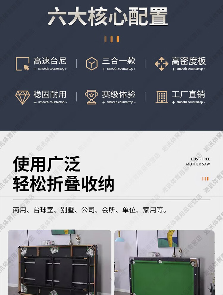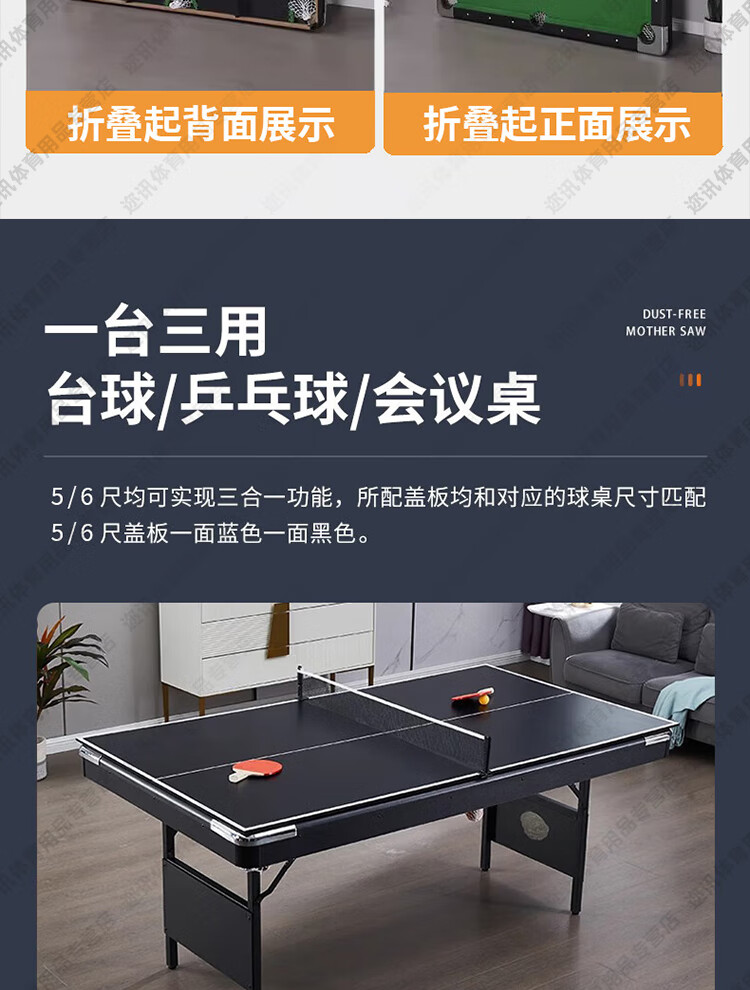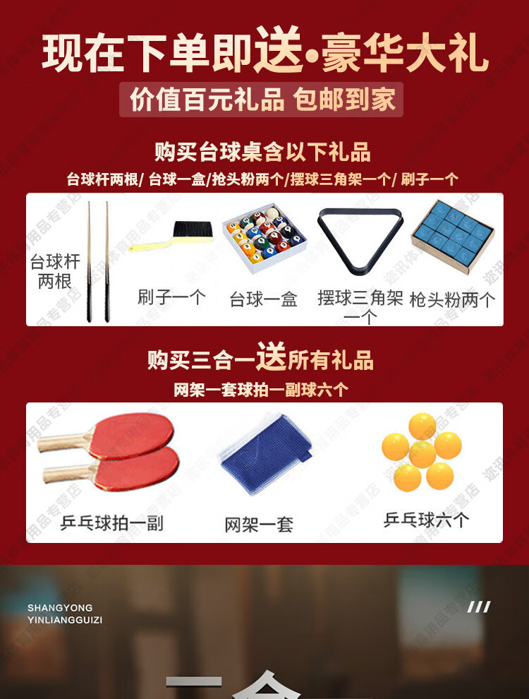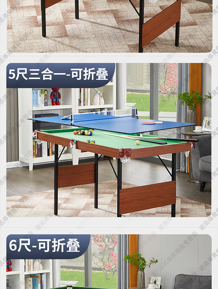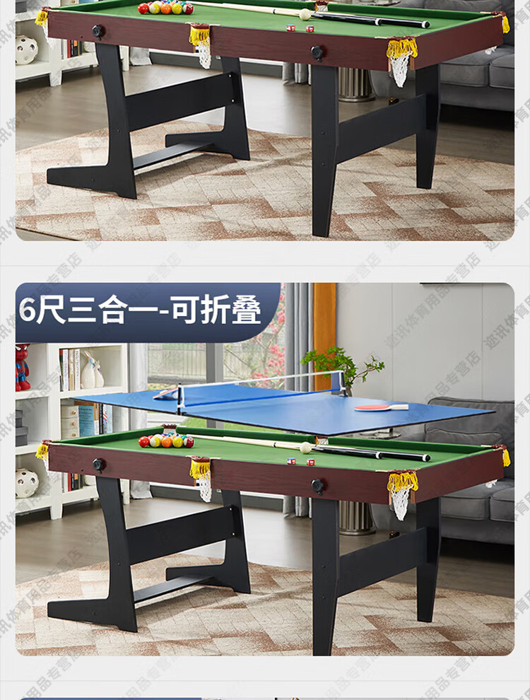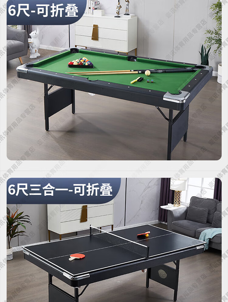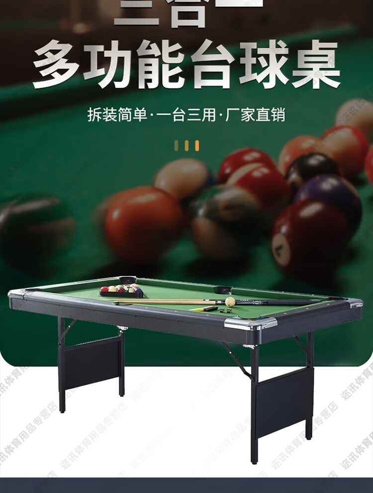 Lightning guest billiard table children's home foldable multi-functional three-in-one billiard table leisure and entertainment standard table tennis table 6 feet 1.93 meters three-in-one folding billiard table home multi-functional billiard table standard black eight billiard table