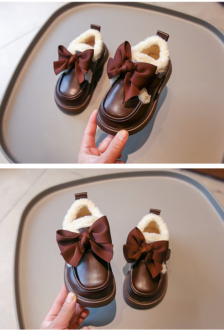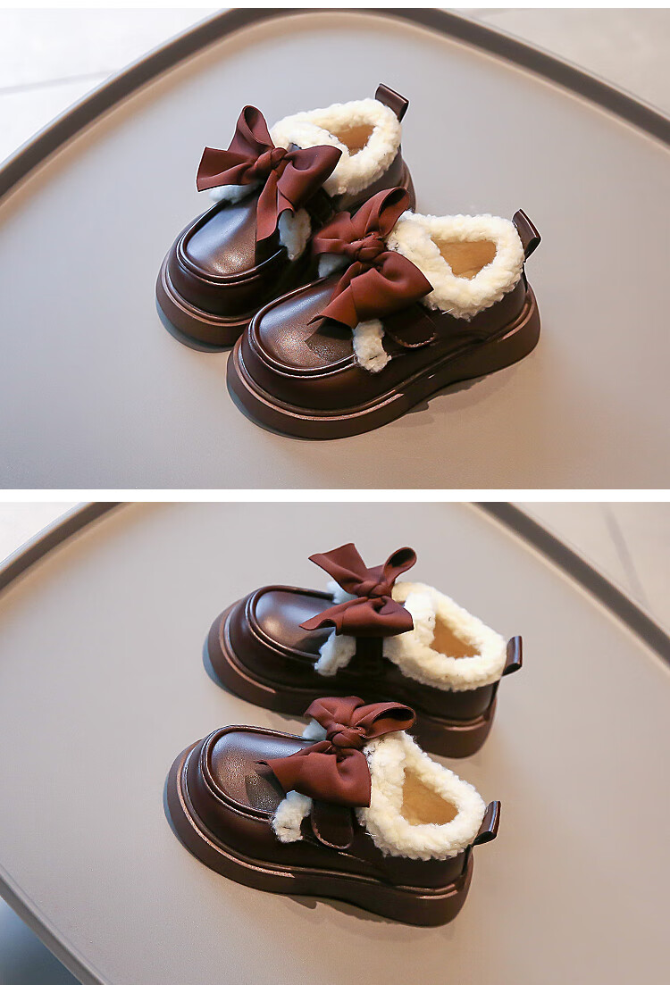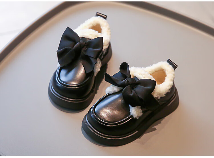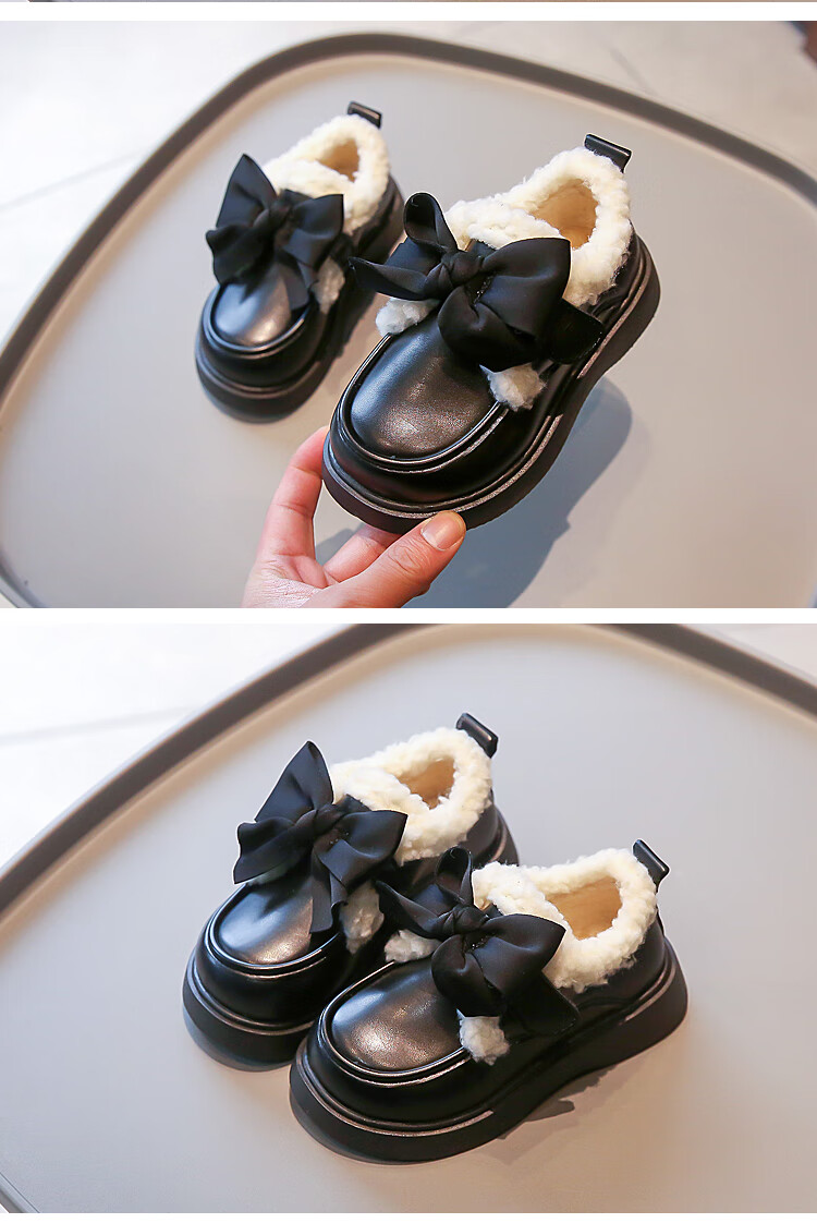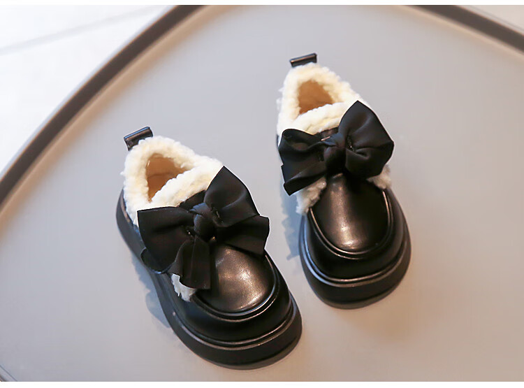 G.duck Girls' Small Leather Shoes Winter Shoes Cotton Leather Shoes 2024 Winter New Children's Beanie Shoes Girls Princess Large Cotton Shoes Black. Velcro Size 37 Inner Length 23.2cm