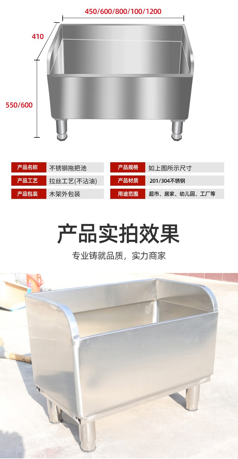Stainless steel mop pool rectangular wash mop pool mop pool sink outdoor home hospital outdoor commercial new style 304/1200*410*60020 high legs