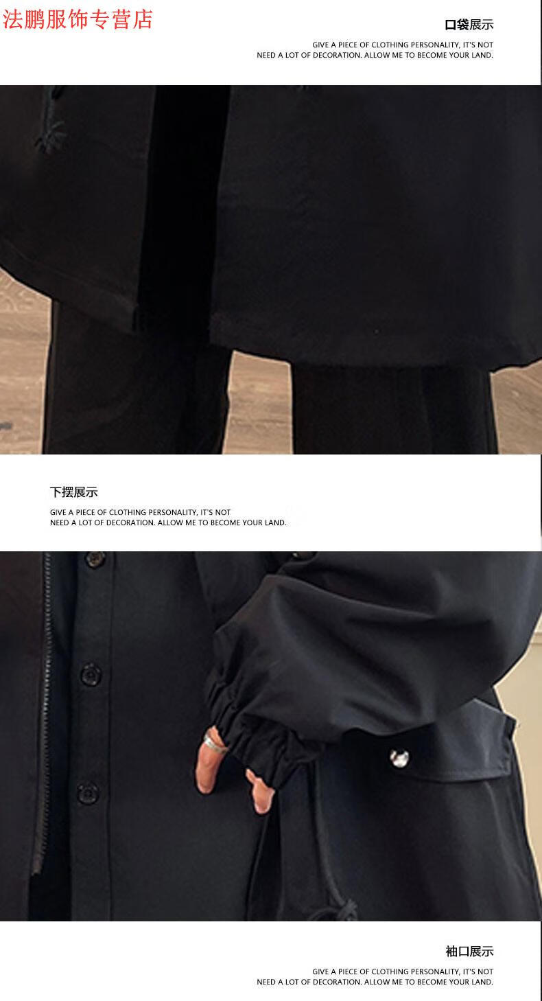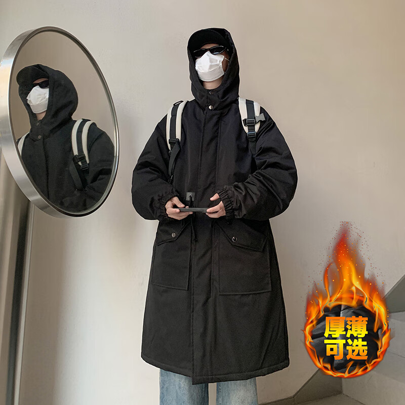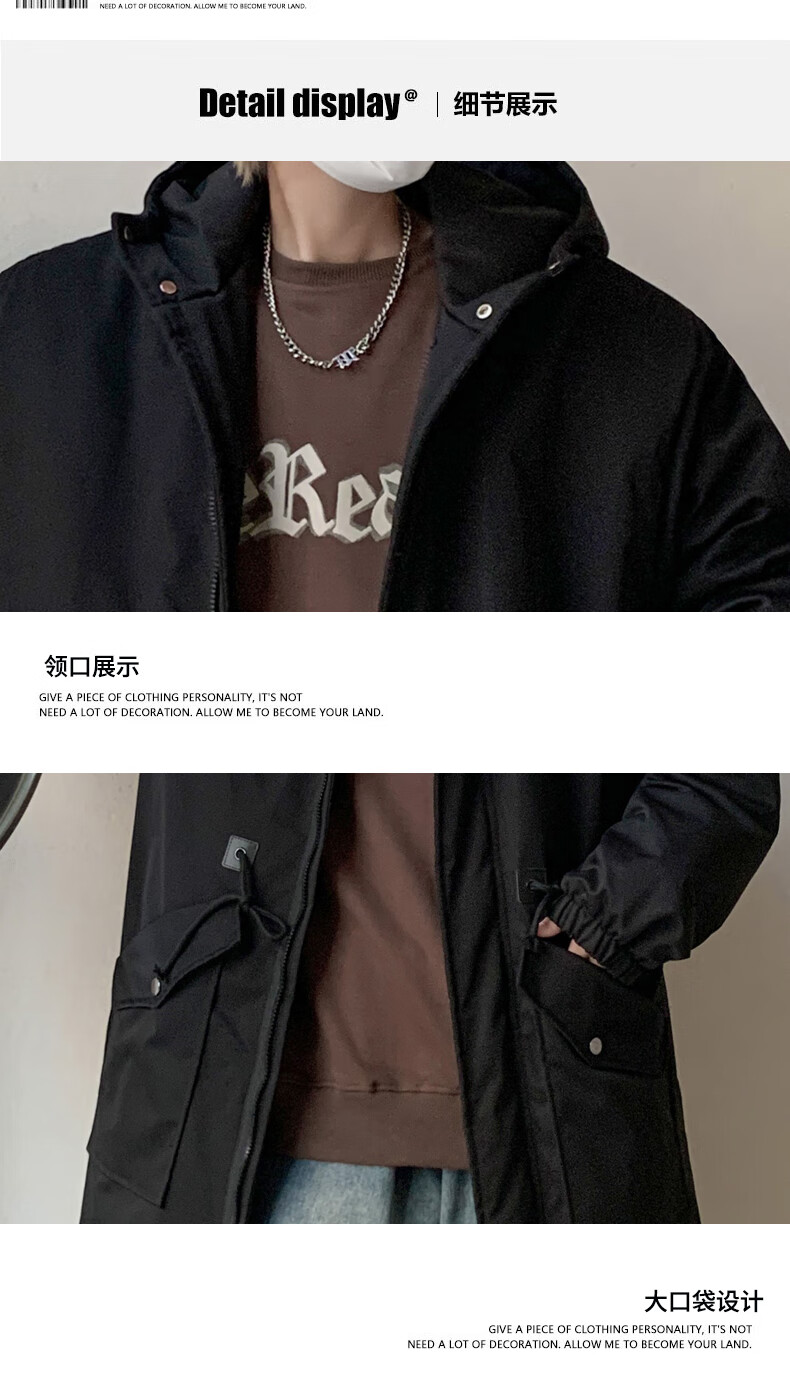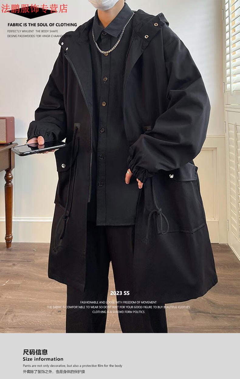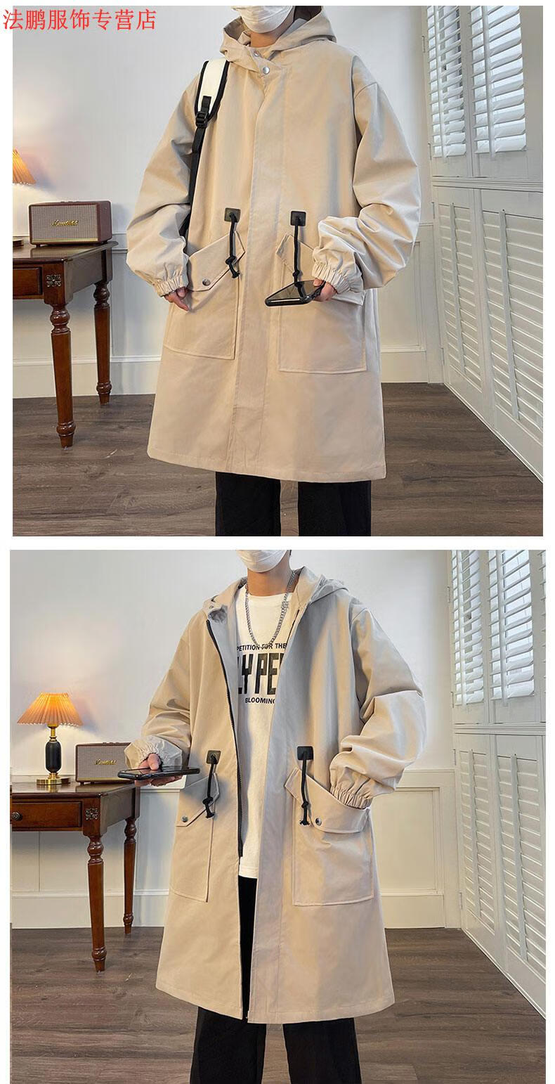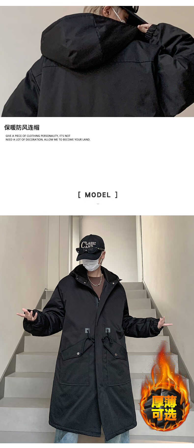 卡鲁微300斤特大码中长款风衣男士胖子连帽加棉外套男2025新款工装大衣 黑色加棉 厚款 5XL 建议200-220斤