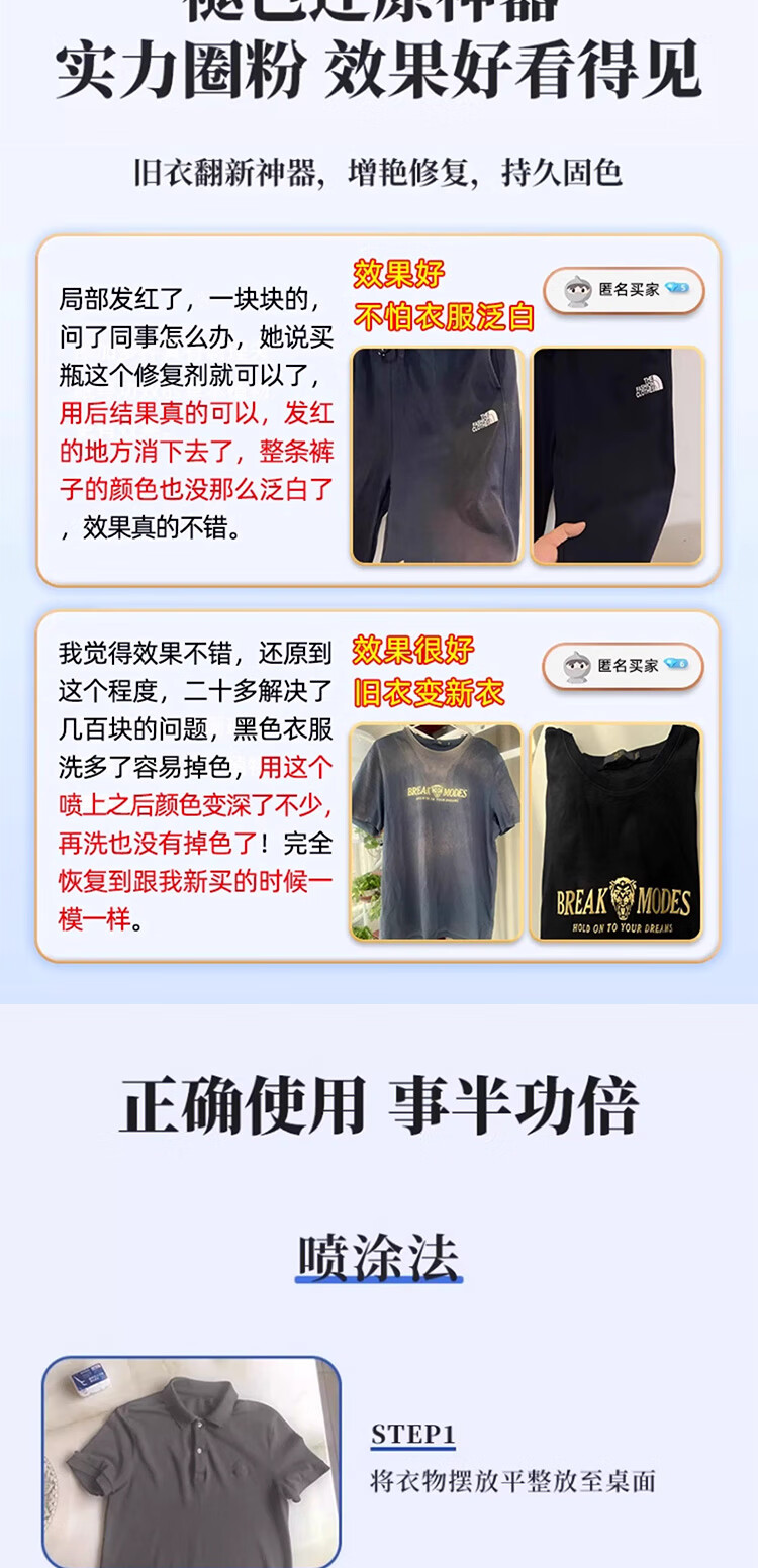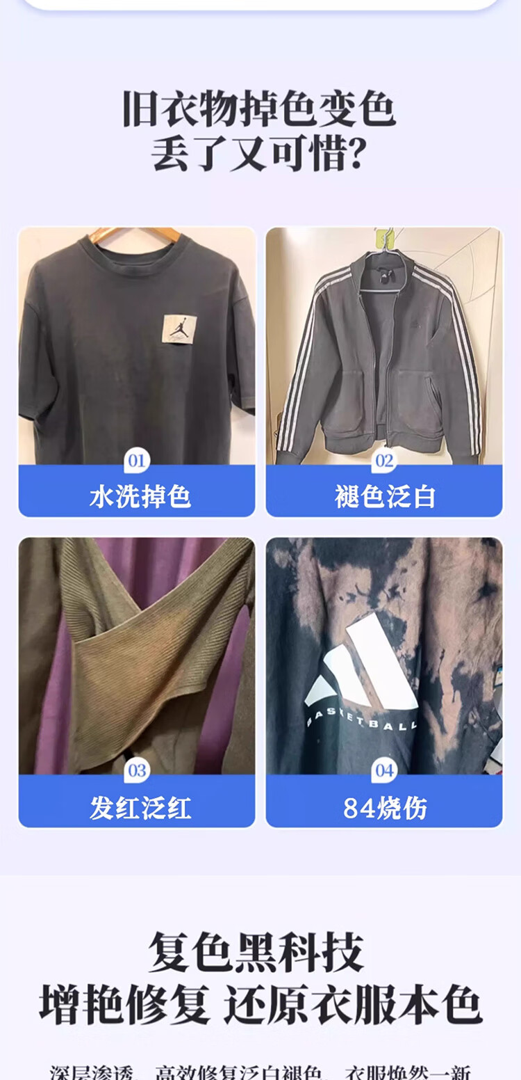 Color fixing and brightening agent to repair faded black clothes, faded clothes dyeing reducing agent to restore color and redness, black clothes fading reducing agent*1 bottle