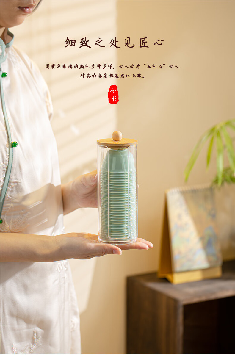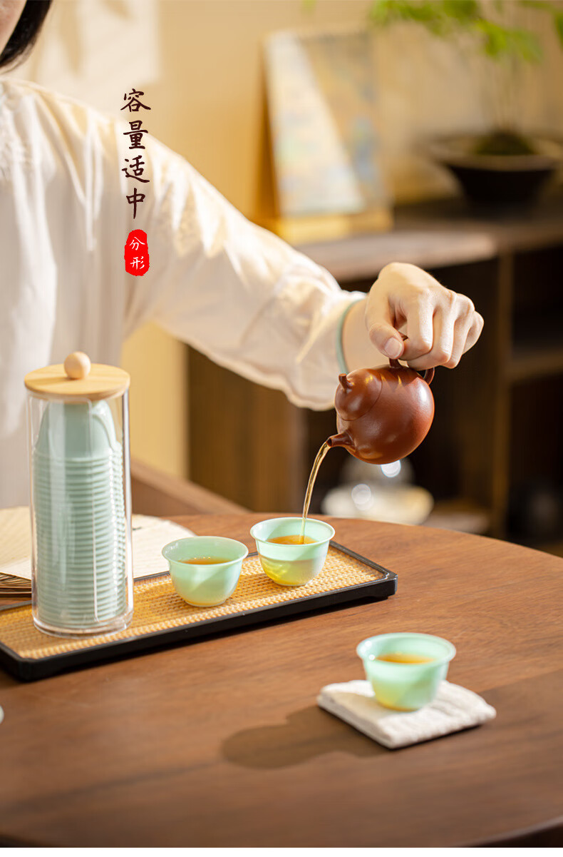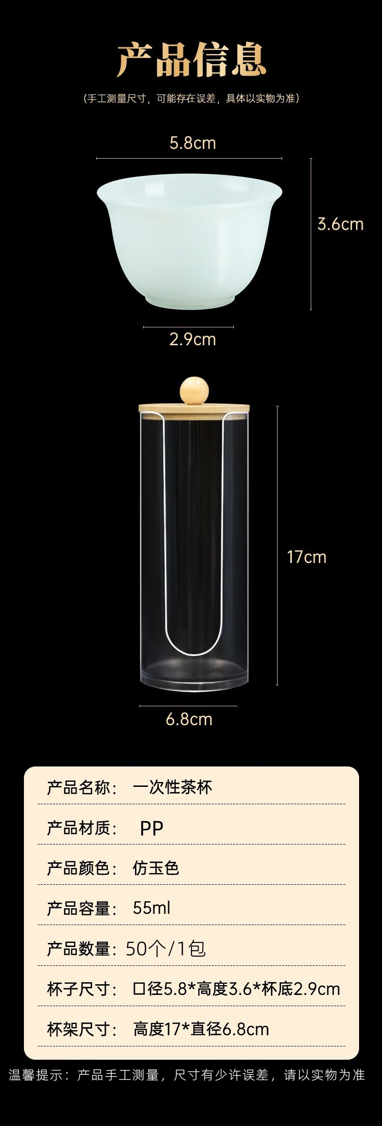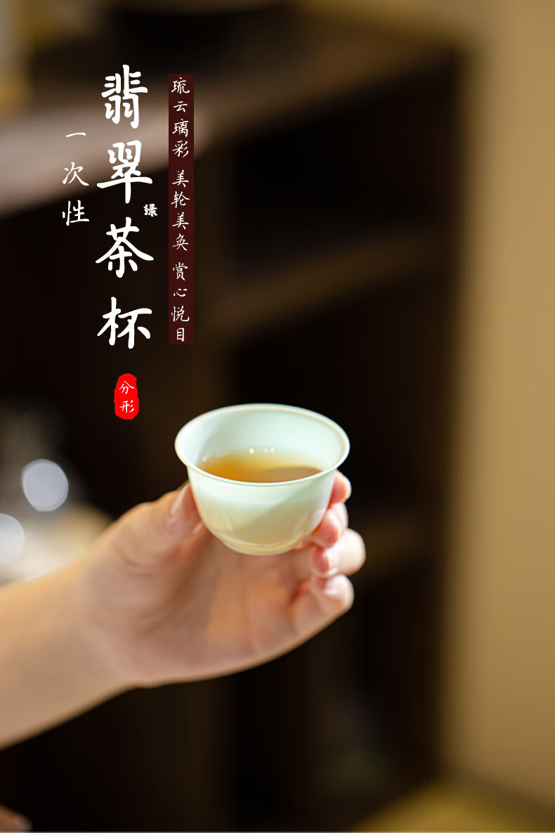 Miaoyouyou high-end imitation jade disposable kung fu tea cup for home and office to entertain guests, thickened and high temperature resistant tea cup, customized (tea) imitation jade 100 pieces + 1 cup holder 60ml