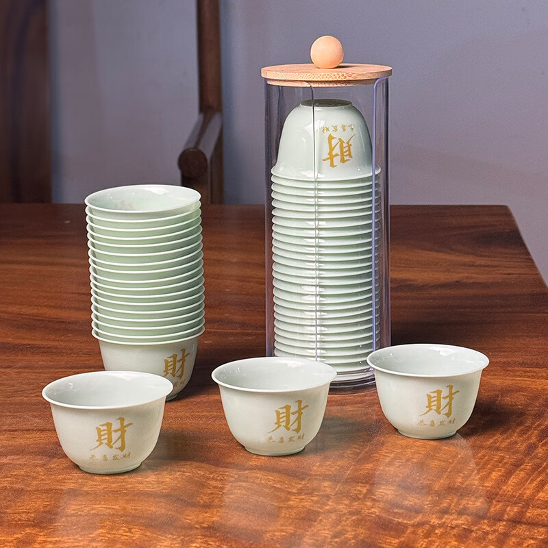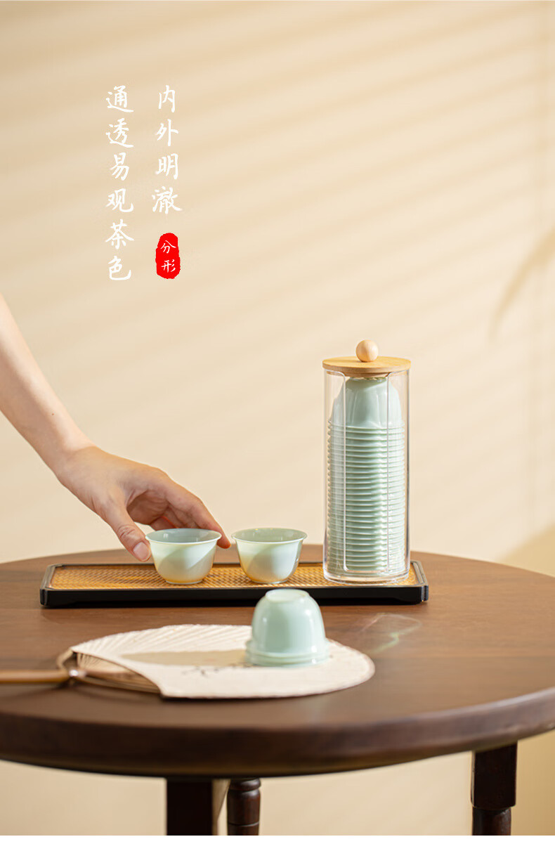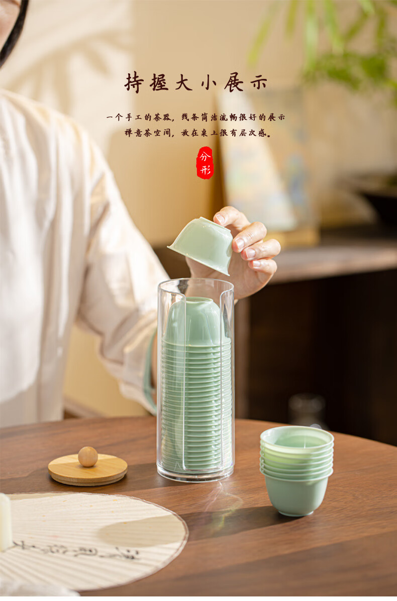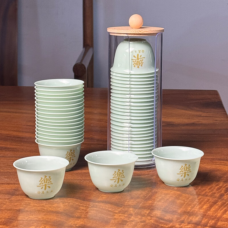 Miaoyouyou high-end imitation jade disposable kung fu tea cup for home and office to entertain guests, thickened and high temperature resistant tea cup, customized (tea) imitation jade 100 pieces + 1 cup holder 60ml