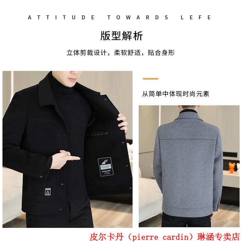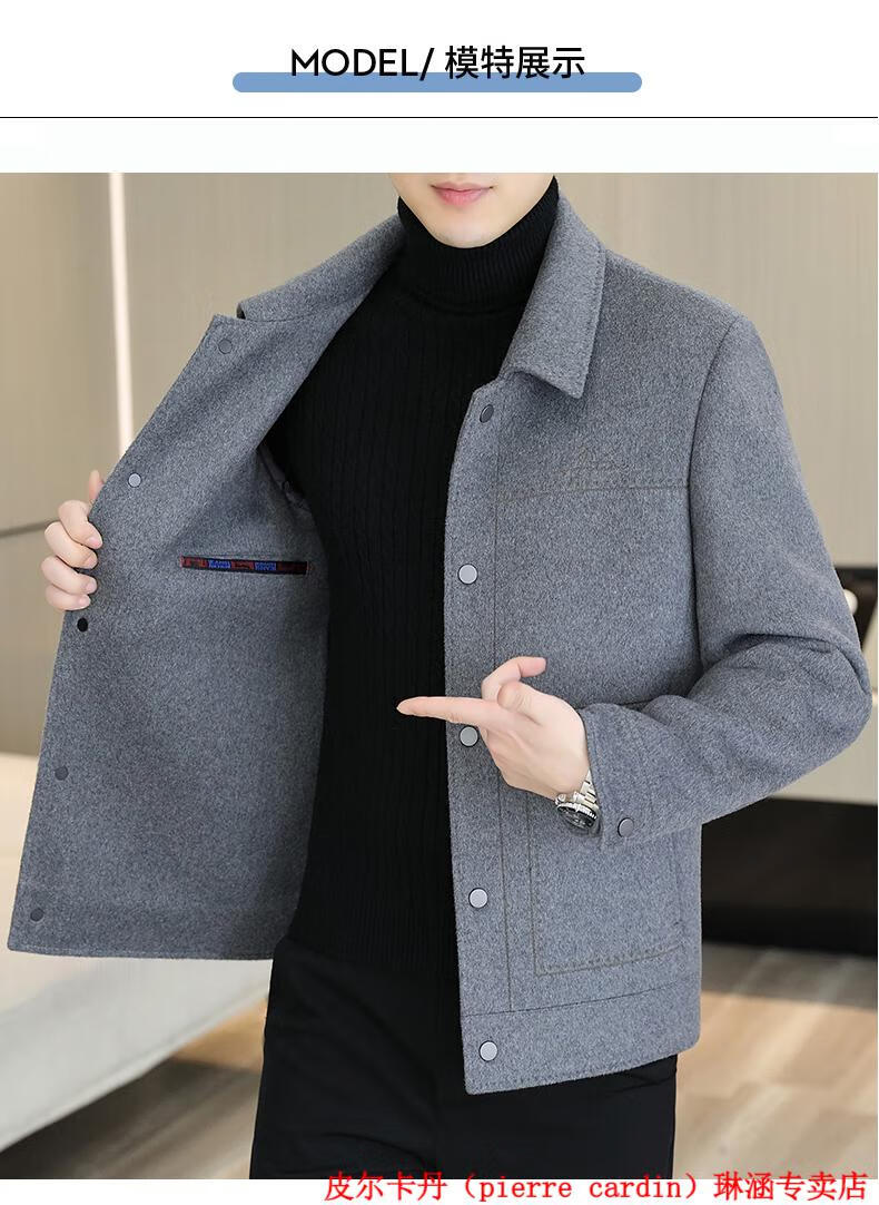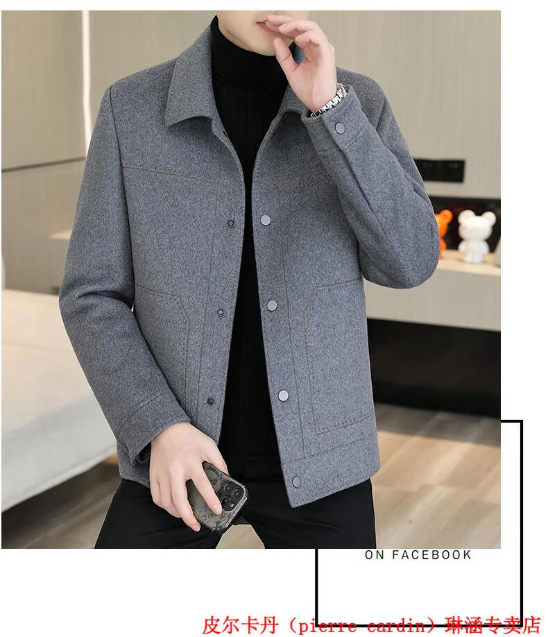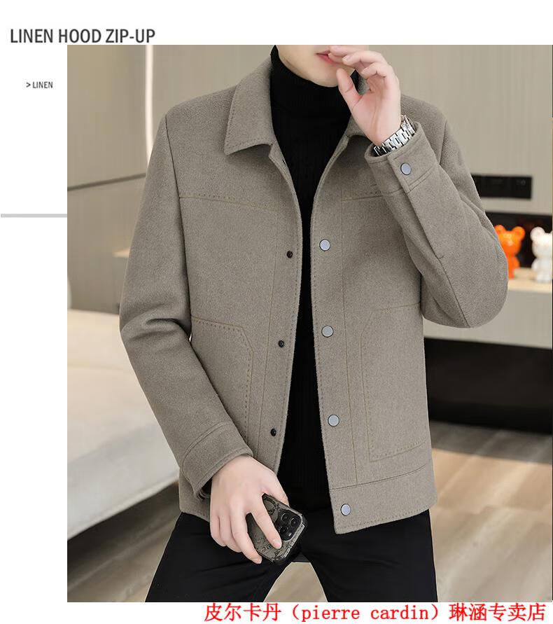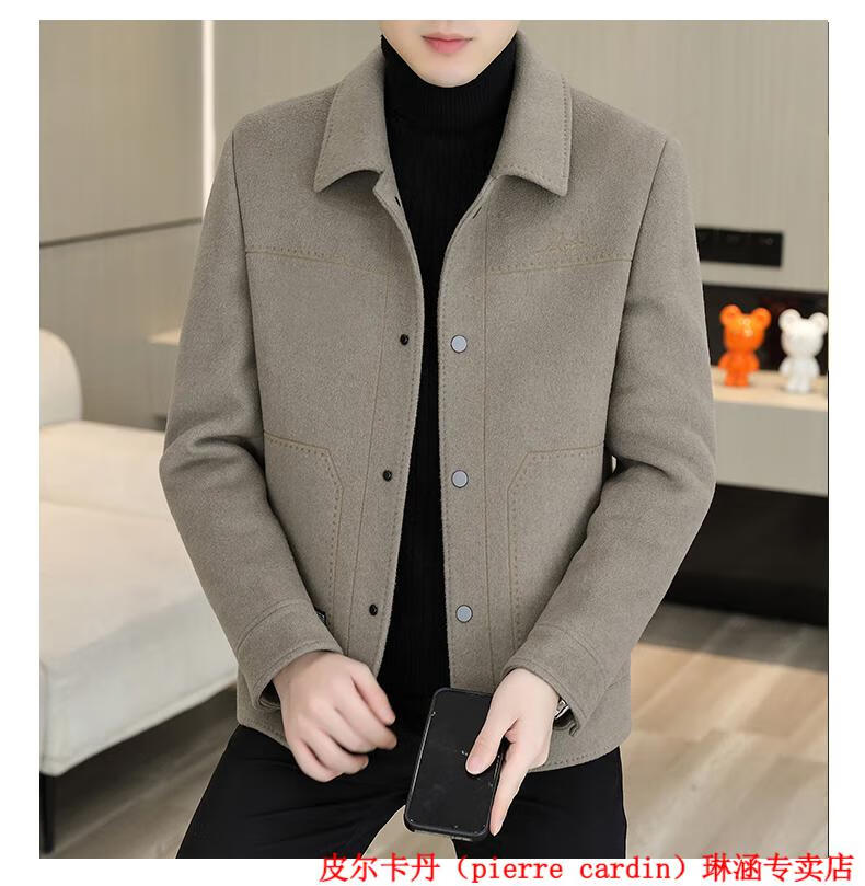 Pierre Cardin Wool Wool Jacket Men's Short Double-sided Nylon Coat 2025 Autumn and Winter New Men's Thickened Cashmere Wool Jacket 20936-2308 Khaki Cashmere Nylon 2XL