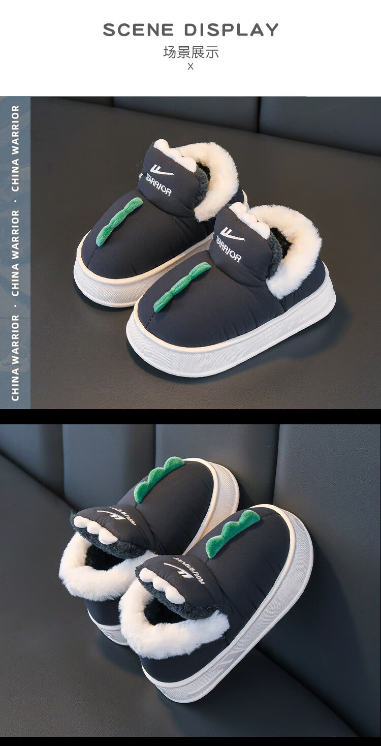 Pull back children's shoes children's cotton slippers 2025 winter new style girls' baby plus velvet slippers indoor home boys' cotton slippers trendy WST-0330 dark gray 28 -29 inner length 18.0cm