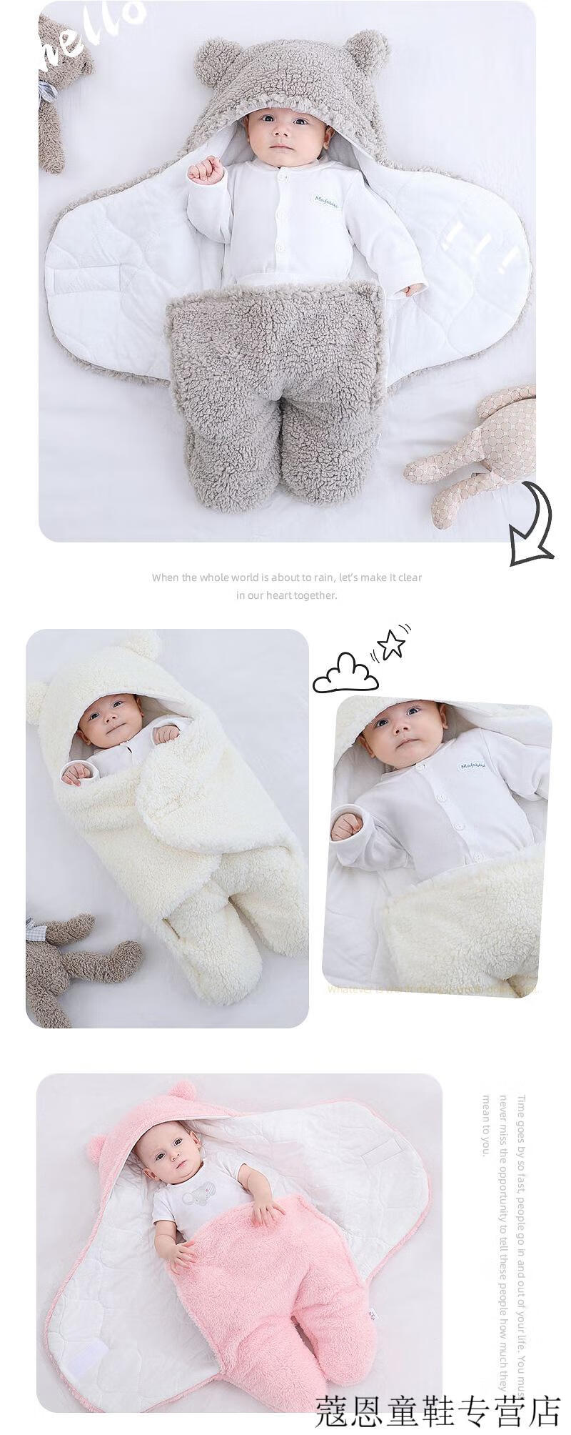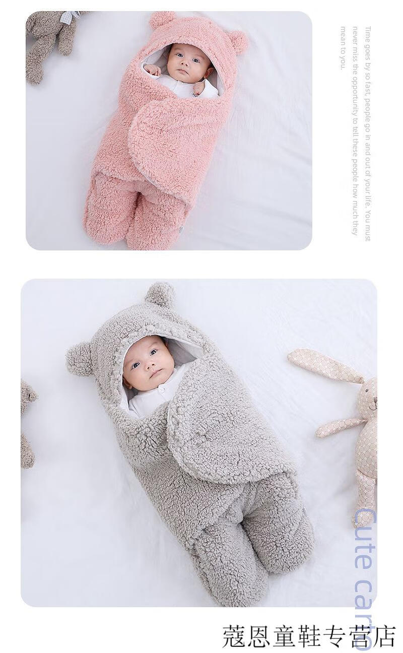 Disney (Disney) blanket for newborns in autumn and winter, thickened newborn blanket, baby sleeping bag, anti-jump swaddle, baby products, blanket, lambswool, pink, 3M, total length about 62cm