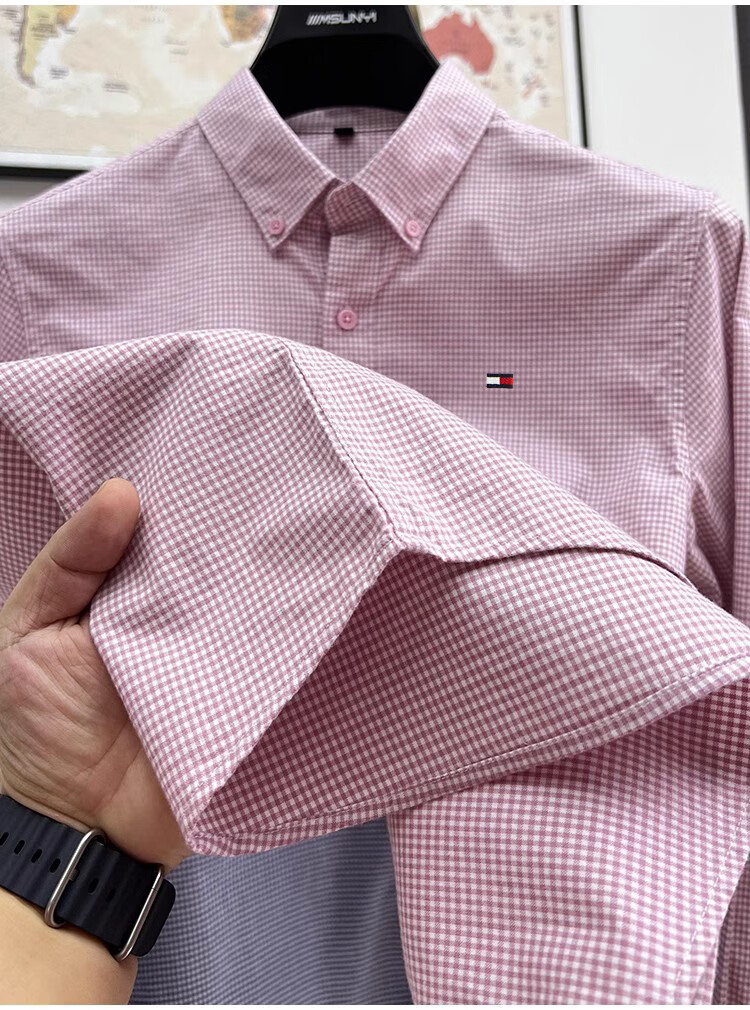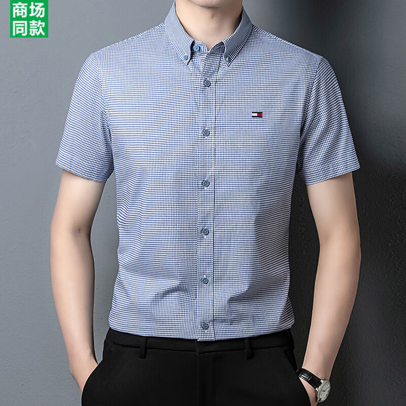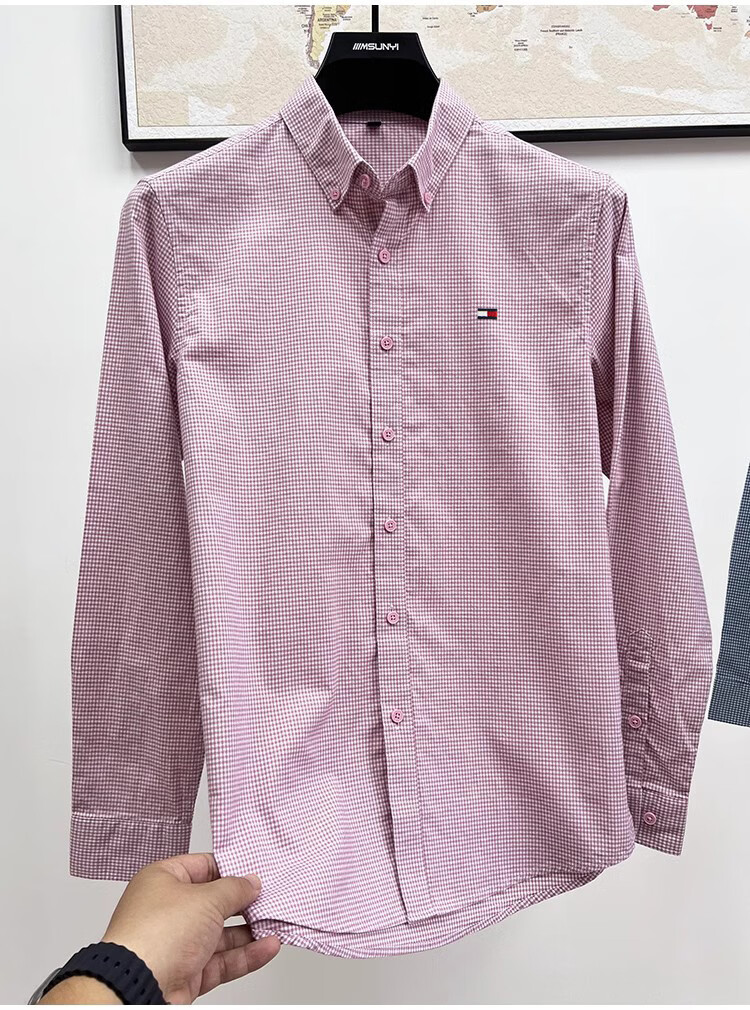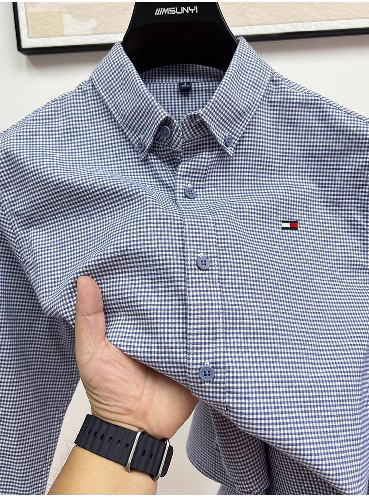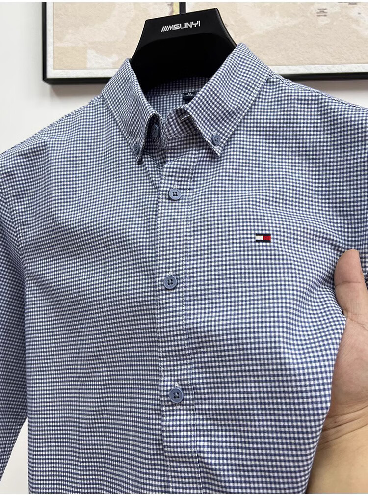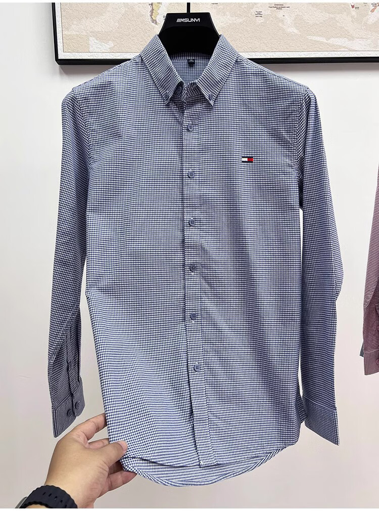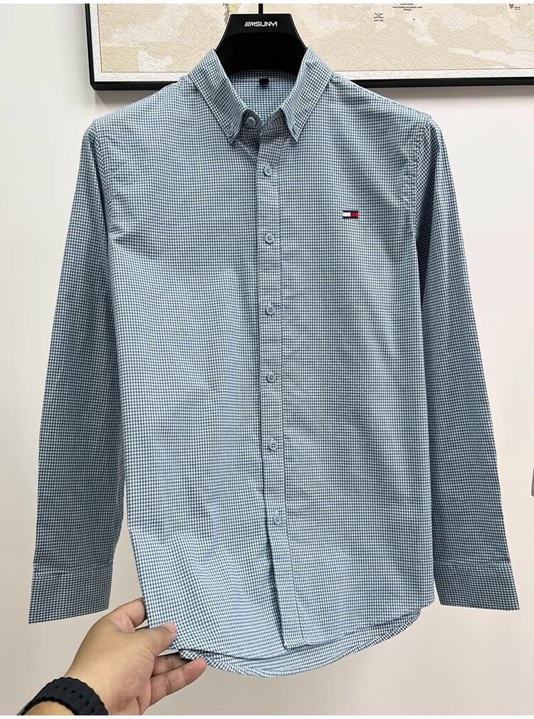 TOMMY JEANS genuine Tommy Tommy long-sleeved shirt men's spring new business casual pure cotton plaid non-iron shirt trendy long-sleeved blue plaid 100% cotton XL suitable for 140-155 Jin Jin equals 0.5 kg to wear