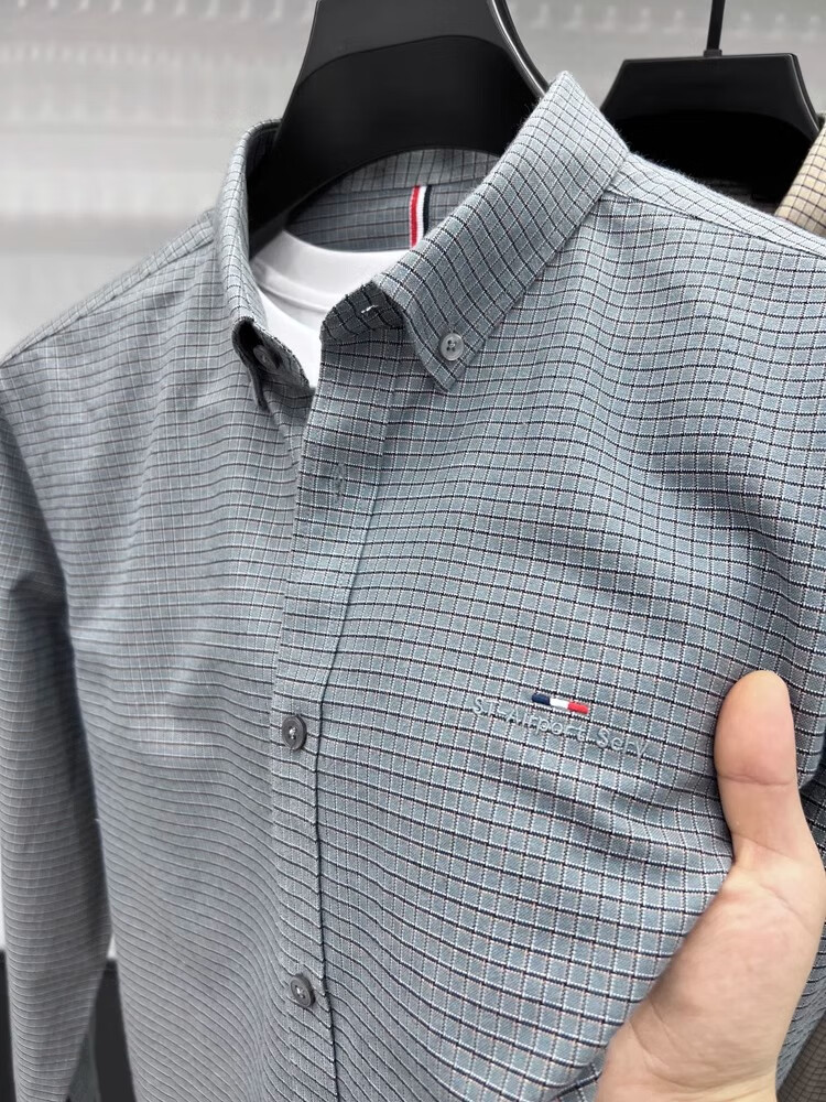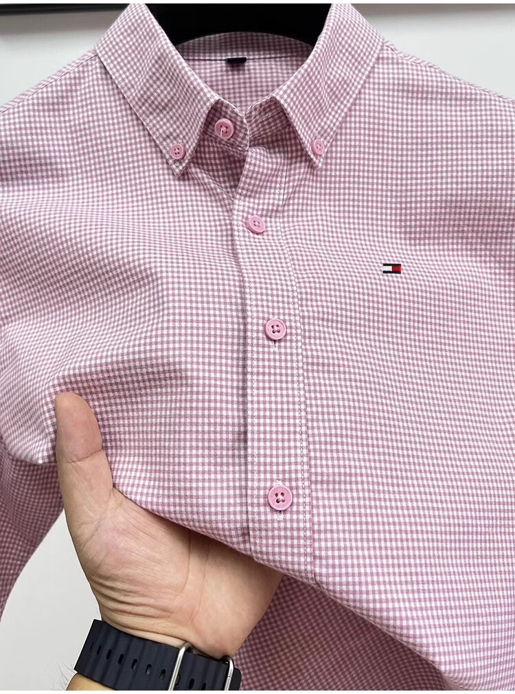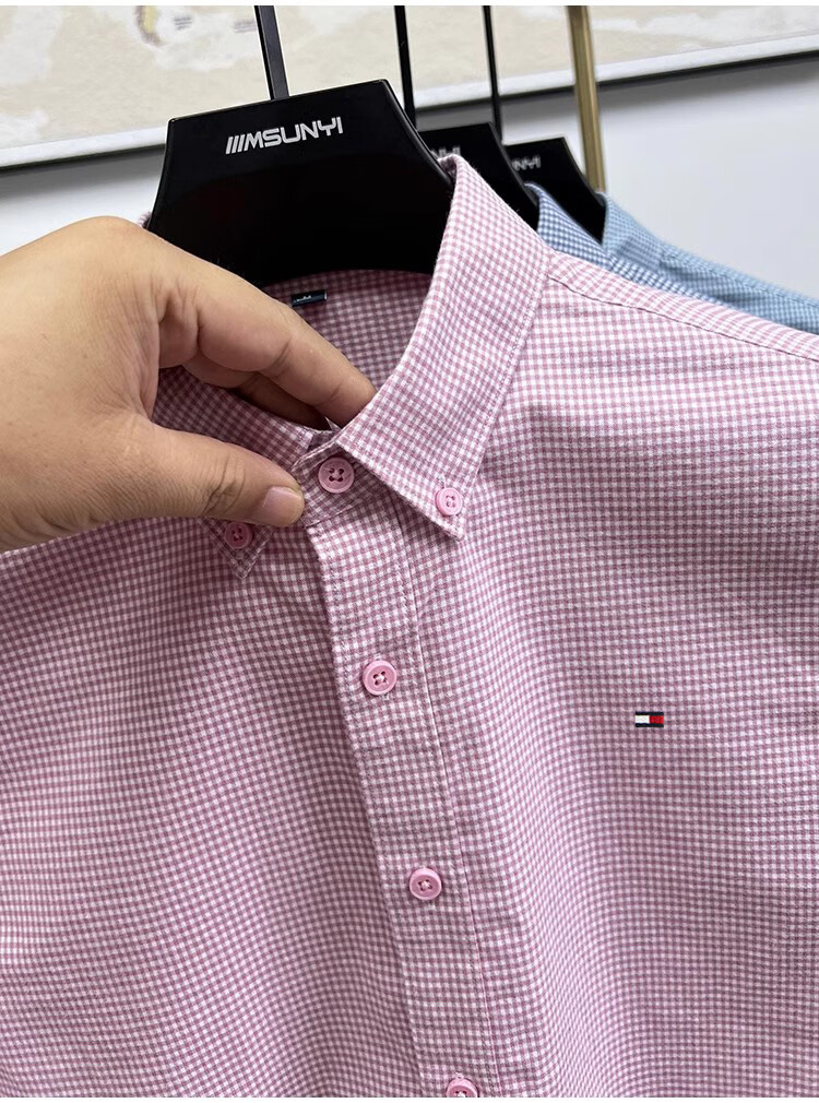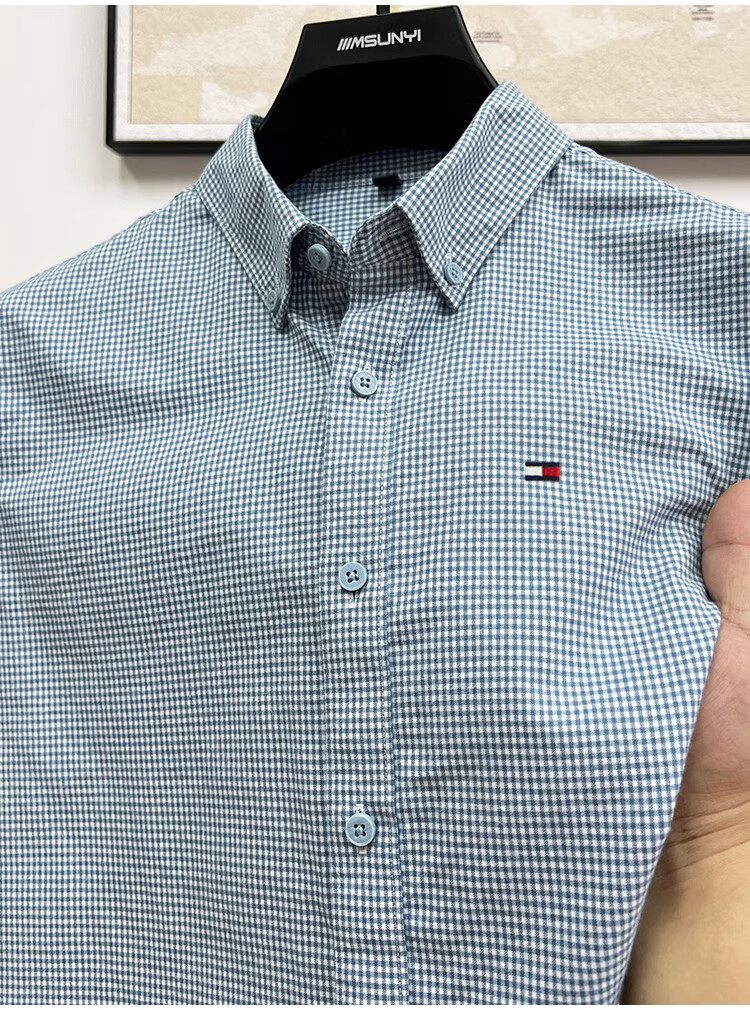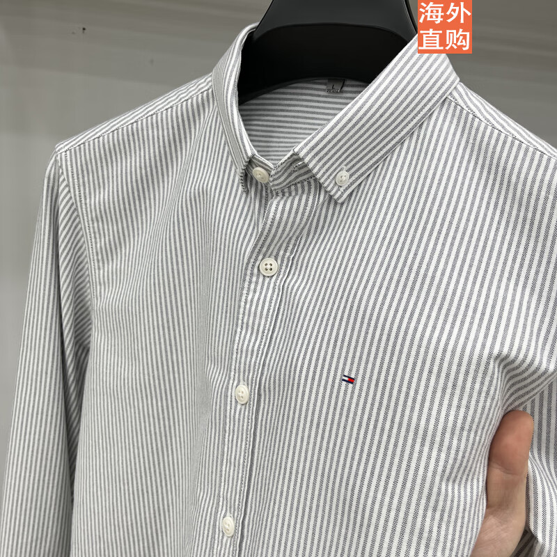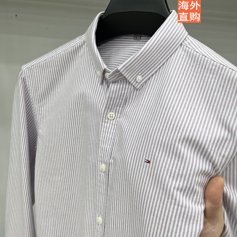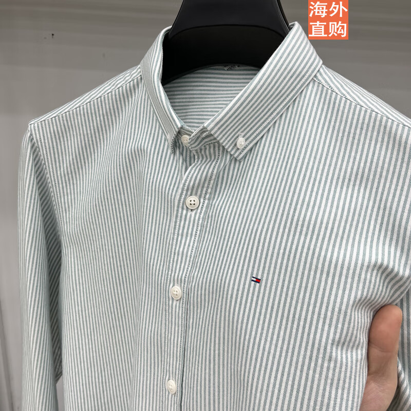 TOMMY JEANS genuine Tommy Tommy long-sleeved shirt men's spring new business casual pure cotton plaid non-iron shirt trendy long-sleeved blue plaid 100% cotton XL suitable for 140-155 Jin Jin equals 0.5 kg to wear