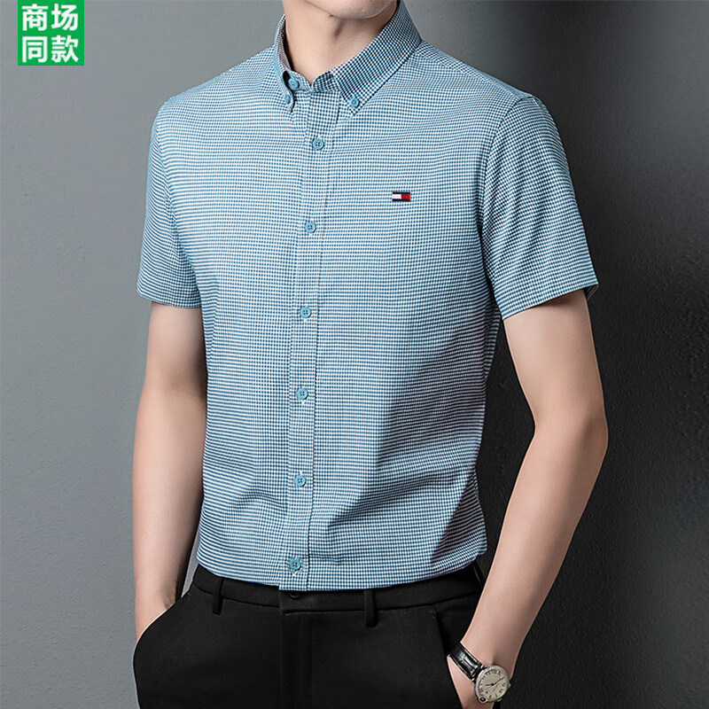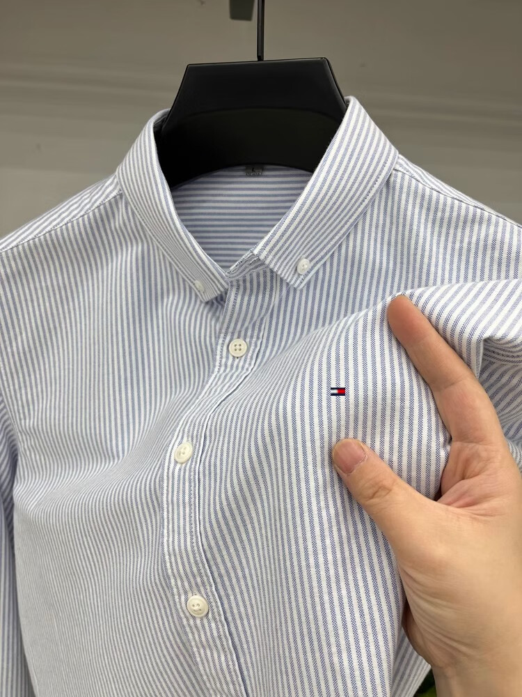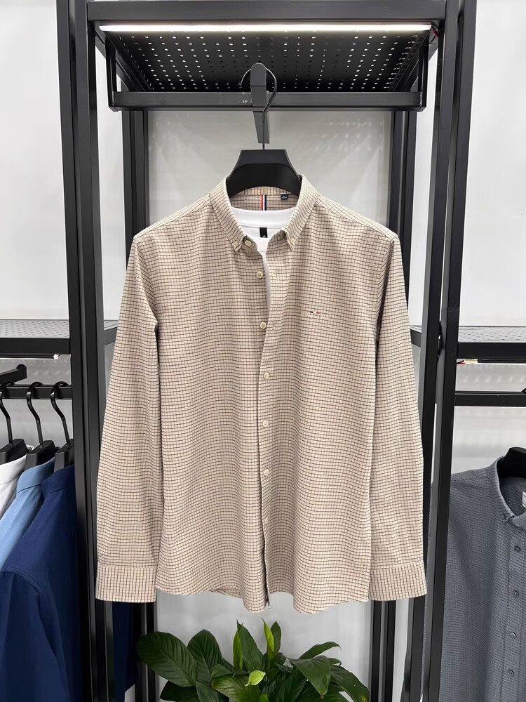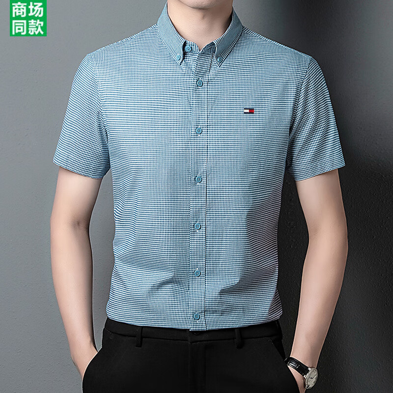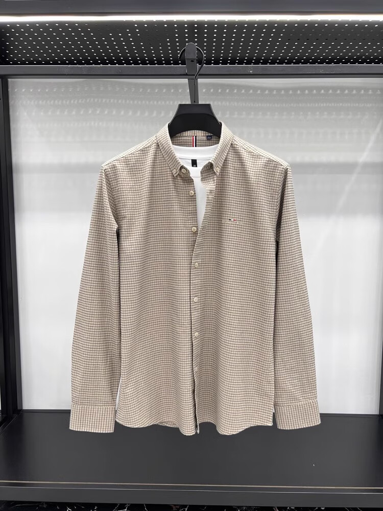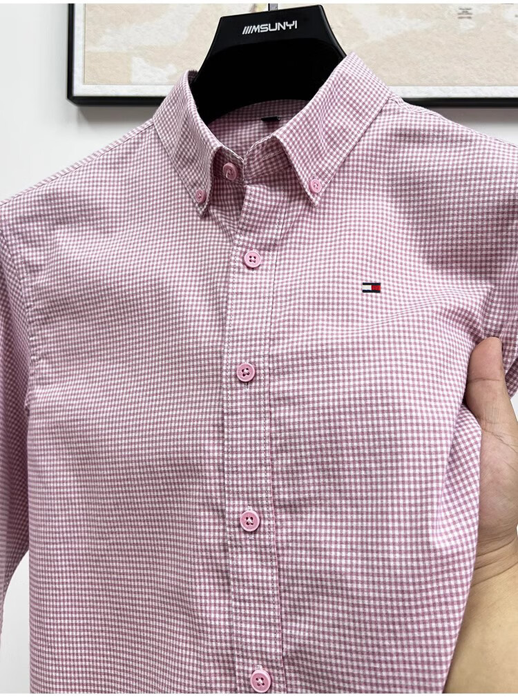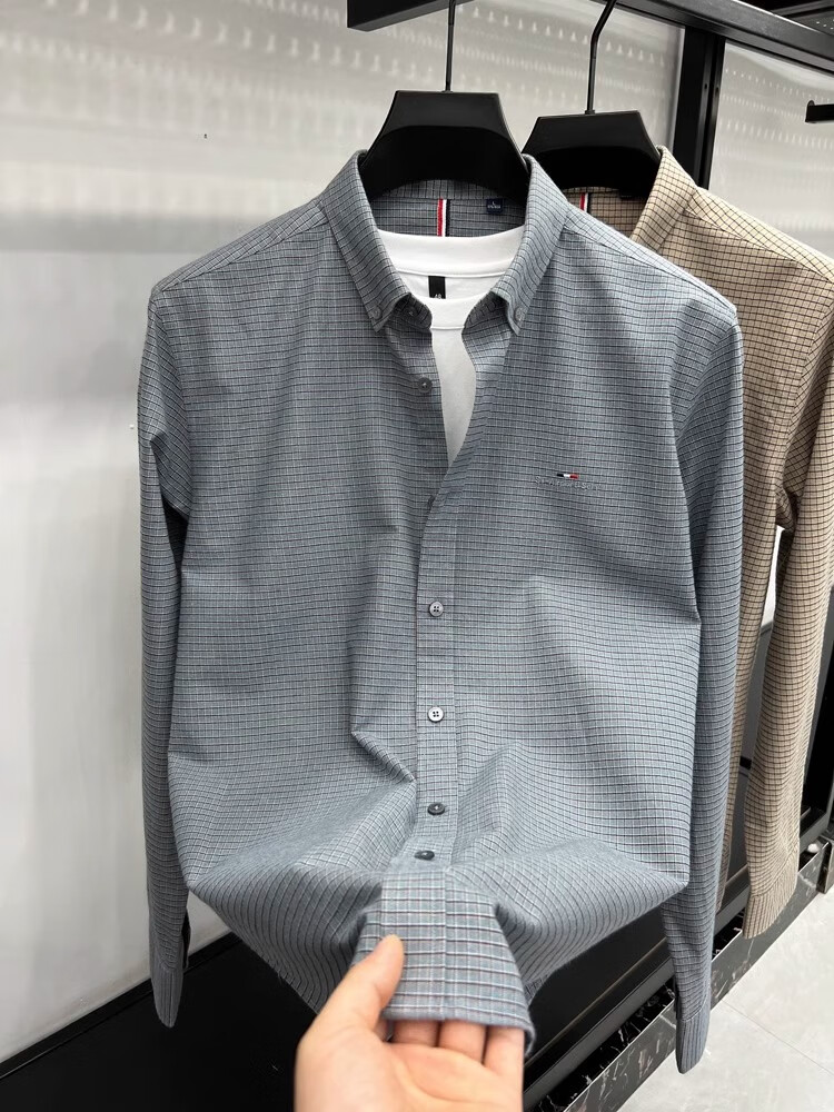TOMMY JEANS genuine Tommy Tommy long-sleeved shirt men's spring new business casual pure cotton plaid non-iron shirt trendy long-sleeved blue plaid 100% cotton XL suitable for 140-155 Jin Jin equals 0.5 kg to wear