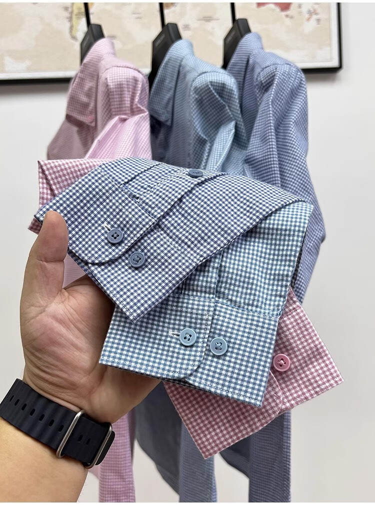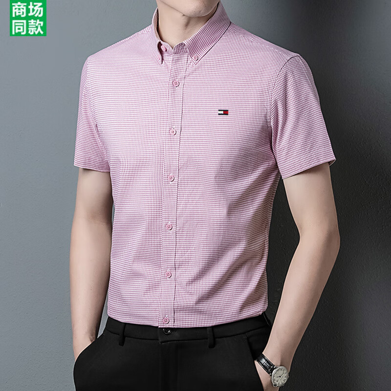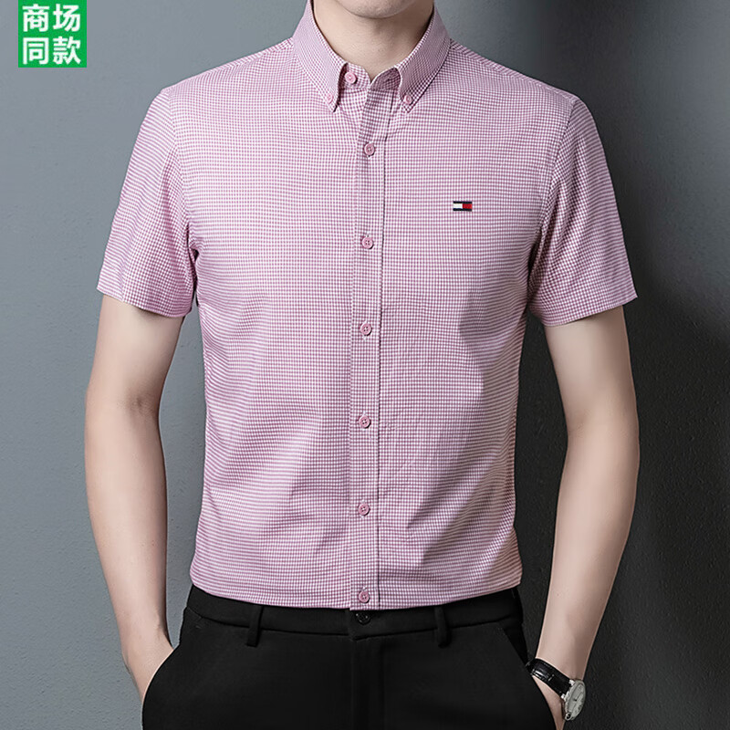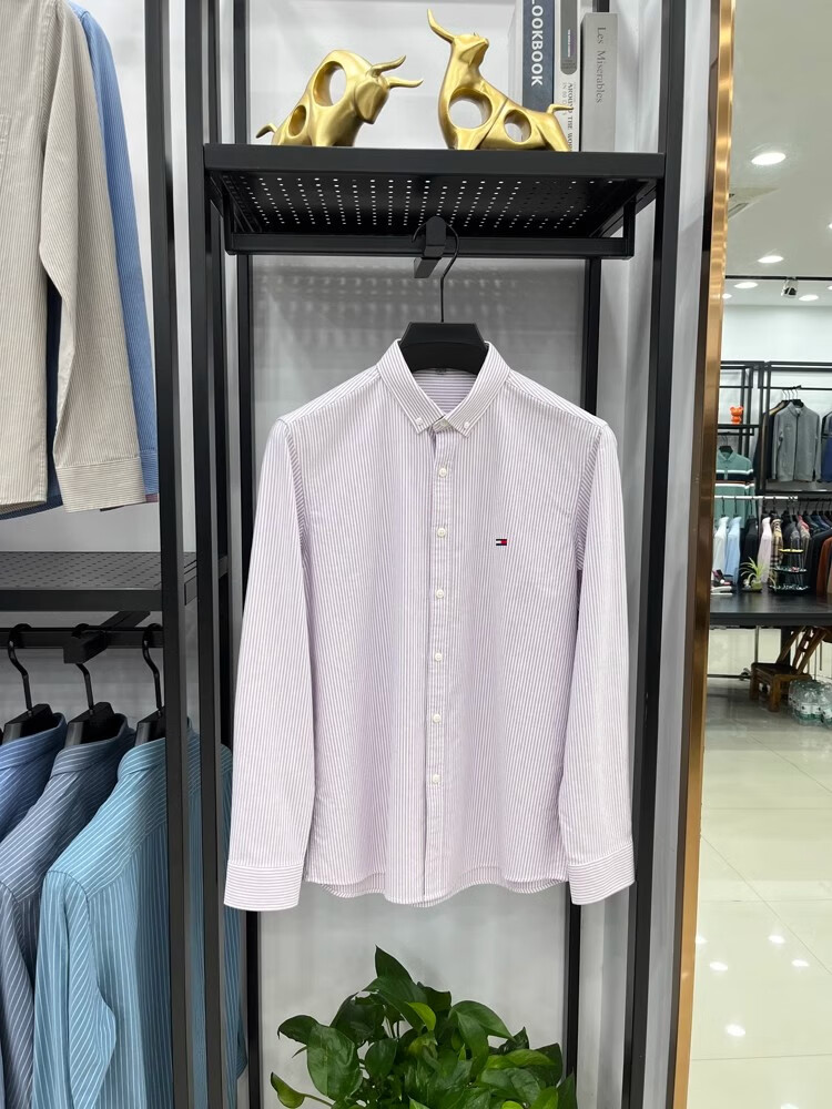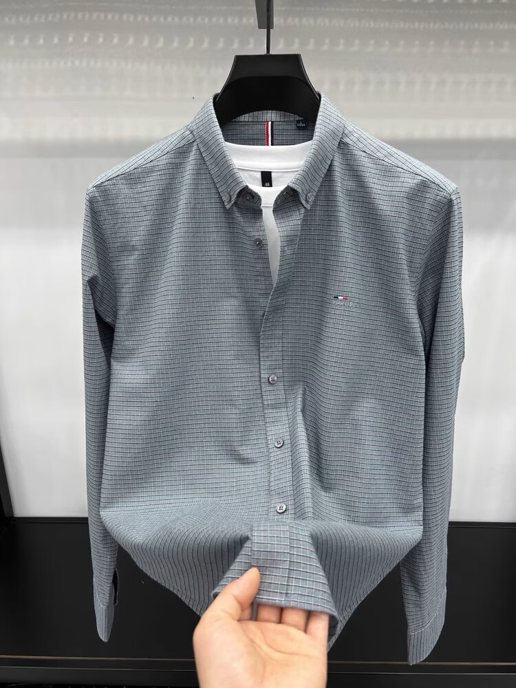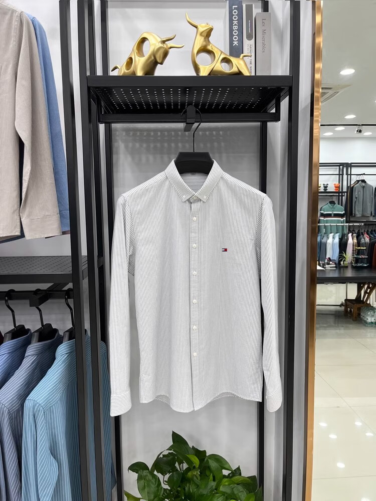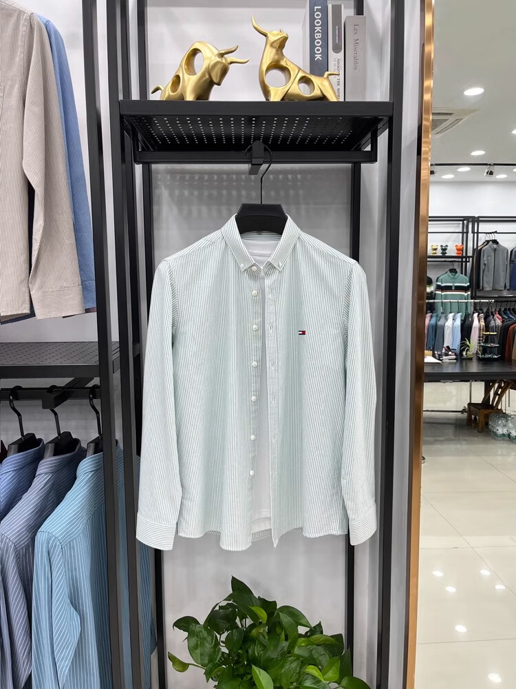 TOMMY JEANS genuine Tommy Tommy long-sleeved shirt men's spring new business casual pure cotton plaid non-iron shirt trendy long-sleeved blue plaid 100% cotton XL suitable for 140-155 Jin Jin equals 0.5 kg to wear