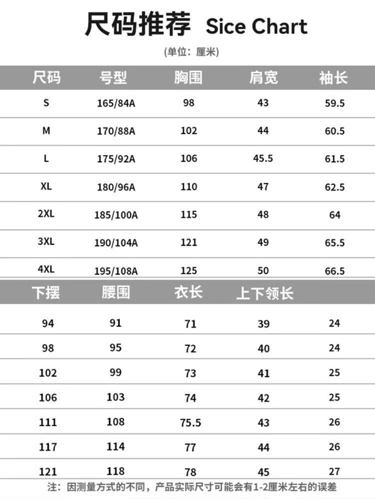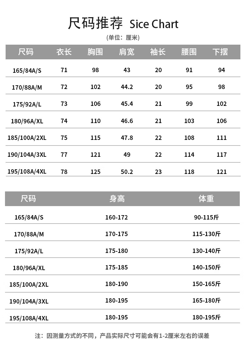 China (cm) 165 / 88-90 170 / 96-98 175 / 108-110 180 / 118-122 185 / 126-130