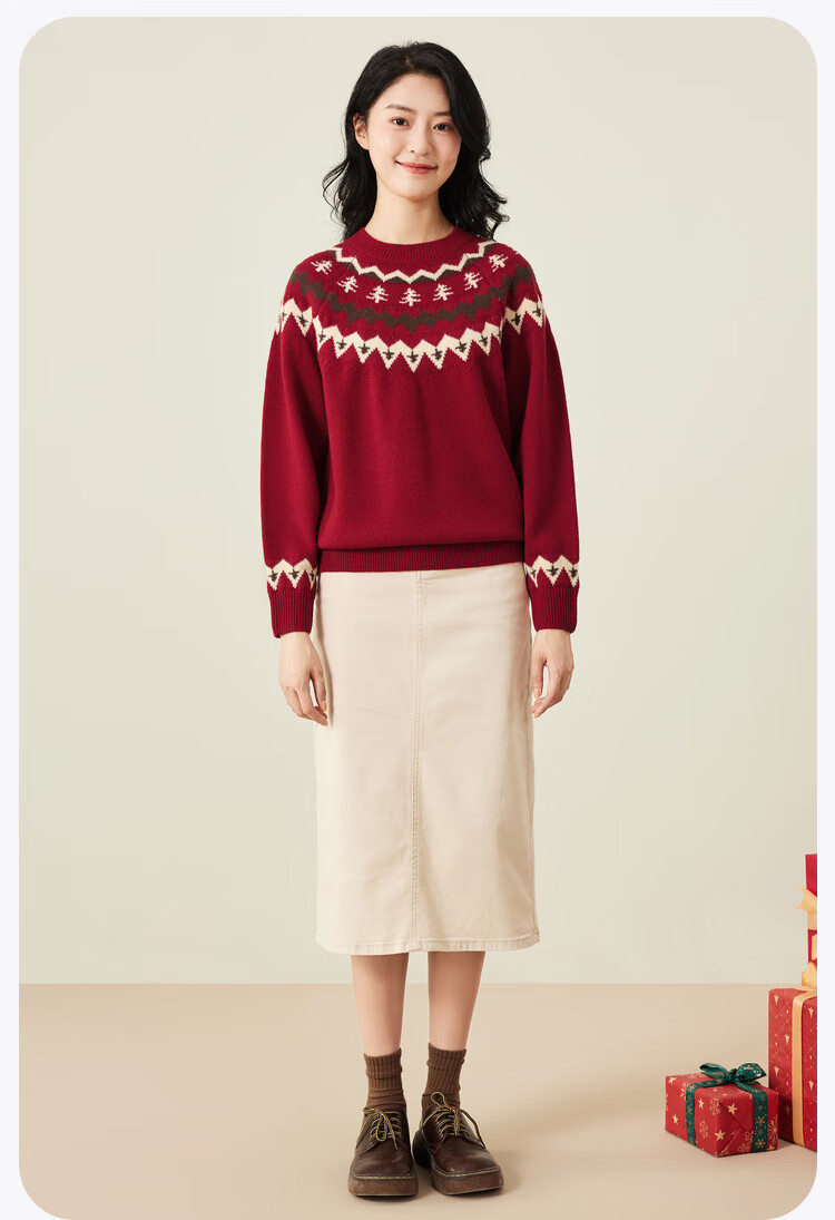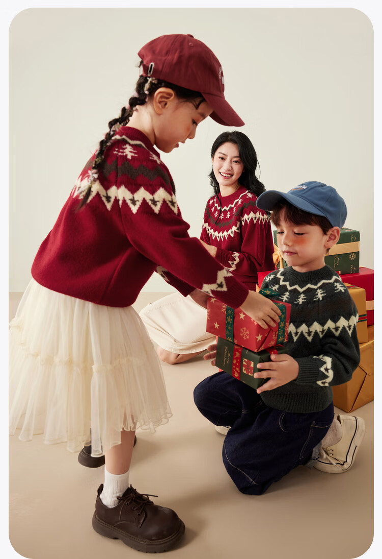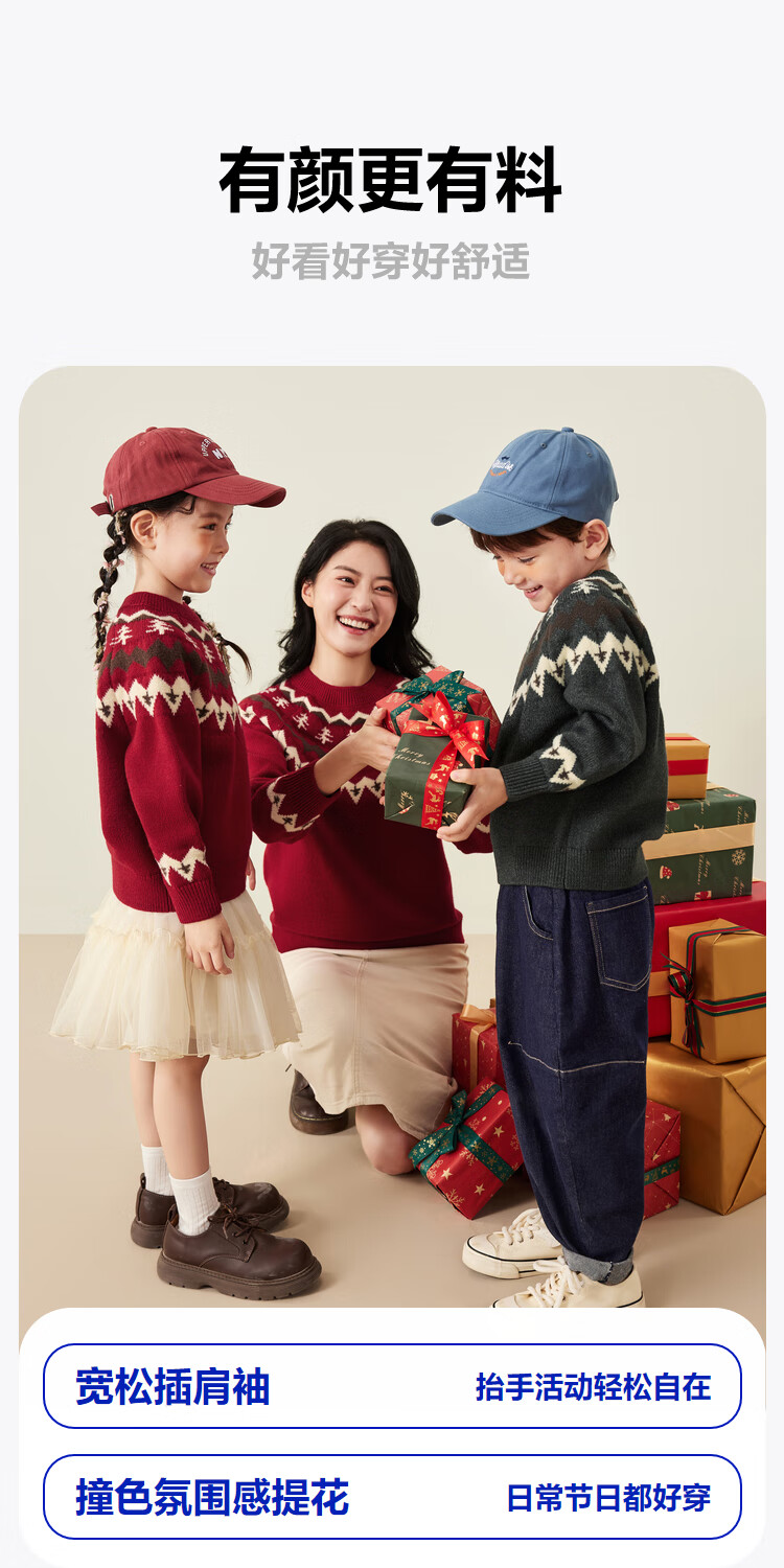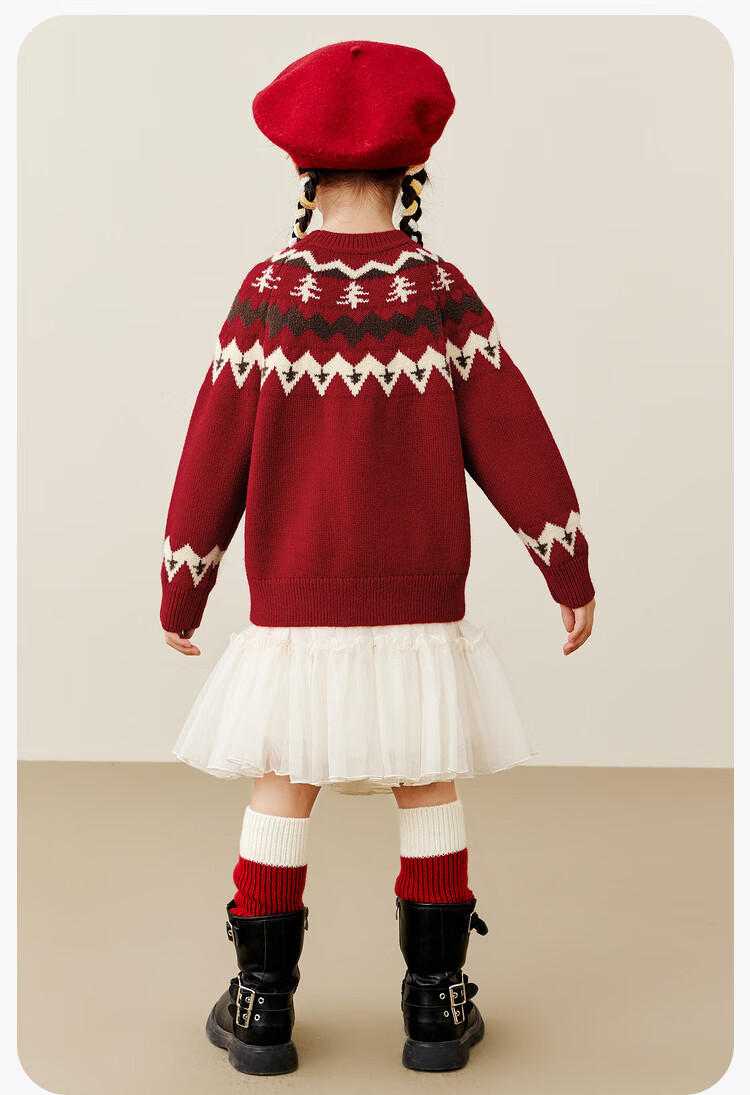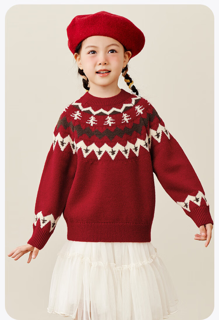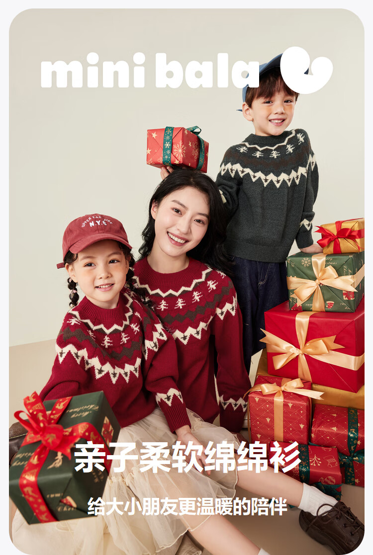 Mini Bala boys and girls parent-child warm sweater new autumn Christmas sweater cotton sweater Chinese red 60604 110