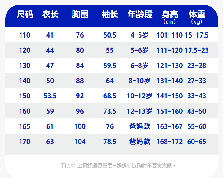 China (cm) 160-165/84-86 165-170 / 88-90 167-172 / 92-96 168-173 / 98-102 170-176 / 106-110