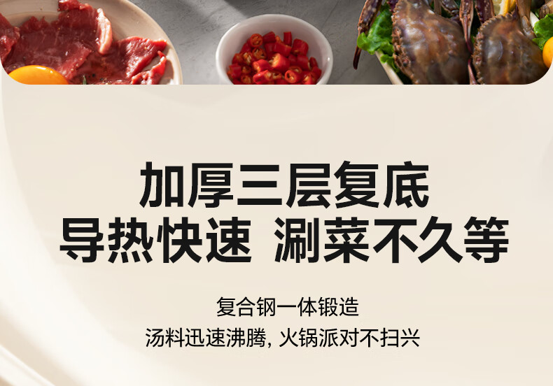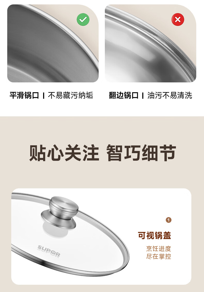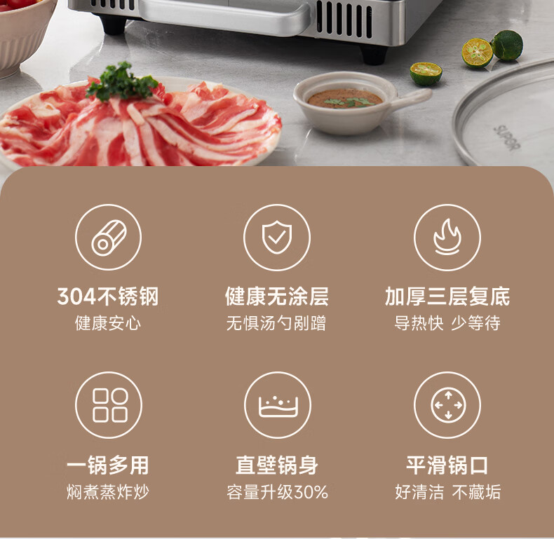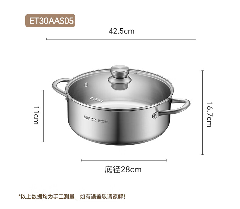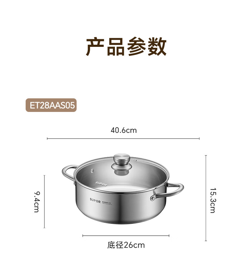 SUPOR hot pot Yuanyang hot pot 304 stainless steel household soup-shabu pot large capacity pot double bottom induction cooker gas universal Yuanyang hot pot 6.5L 30cm
