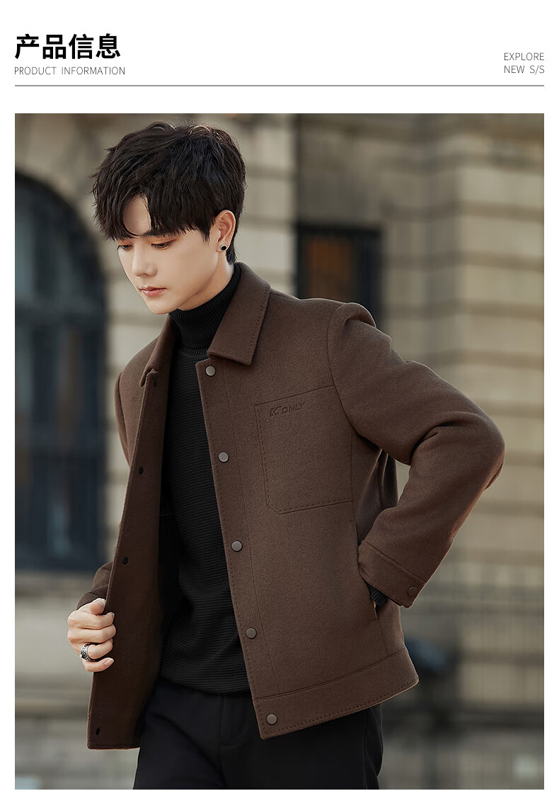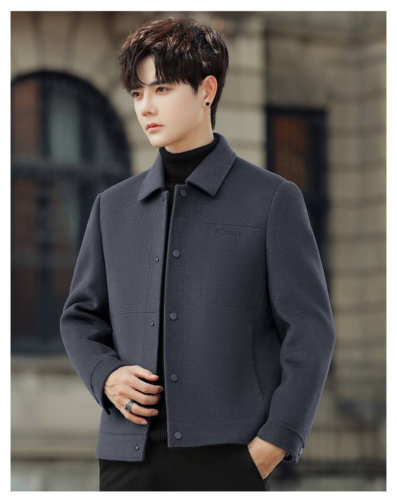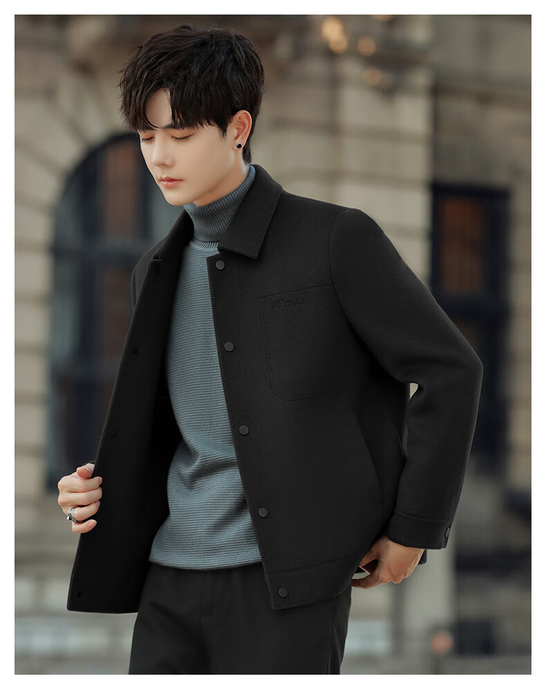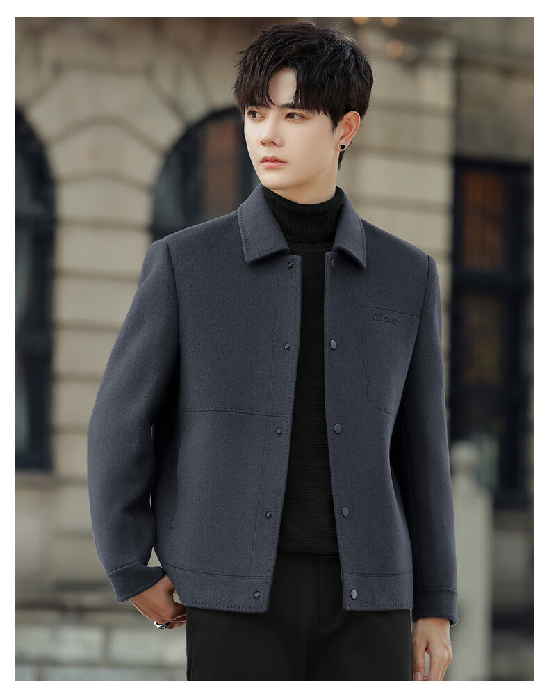 Romon Wool Wool Coat Men's Wool Coat Short Lapel Double-sided Wool Jacket Men's Autumn and Winter Thickened Top Caramel Color No Liner L