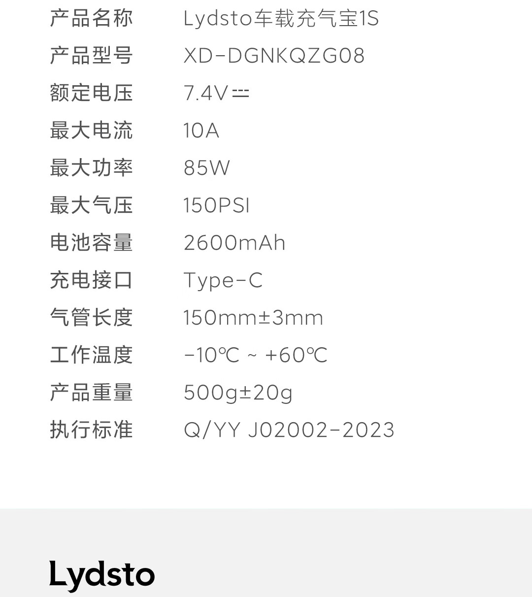 Lydsto car air pump wireless car electric air pump tire car inflatable portable automatic tire pressure measurement black 85W