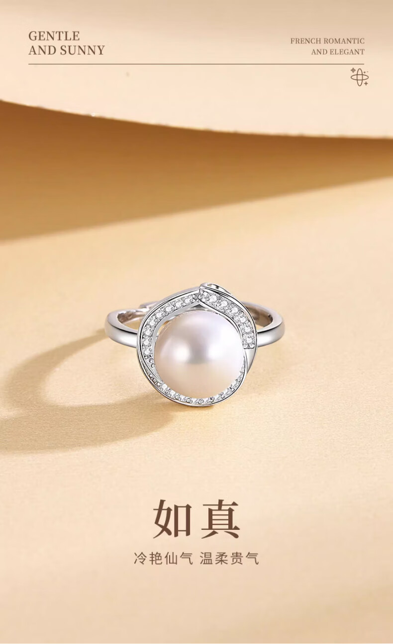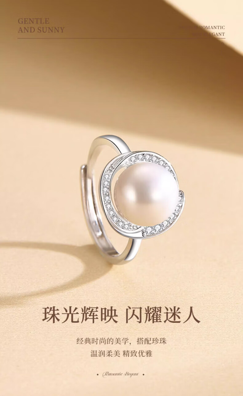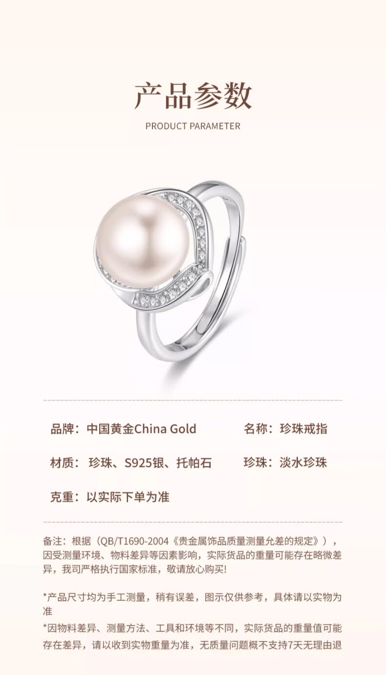 CHINA GOLD Freshwater Pearl Ring S Silver Niche Design Light Luxury High-end Valentine's Day Birthday Gift for Girlfriend and Wife Exquisite Gift Pearl Ring Brand Gift Box