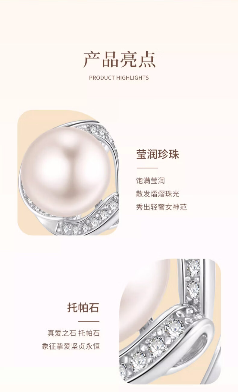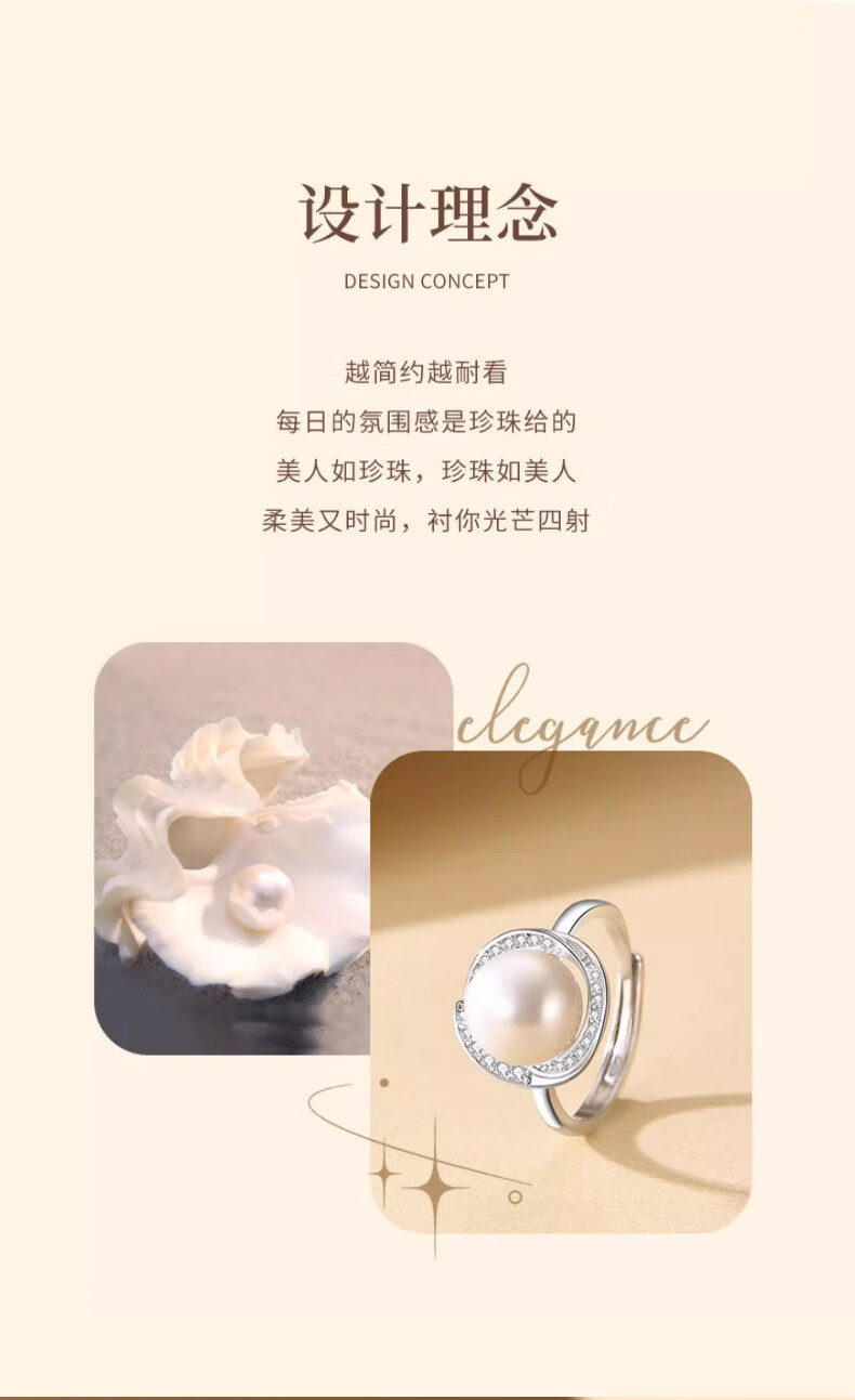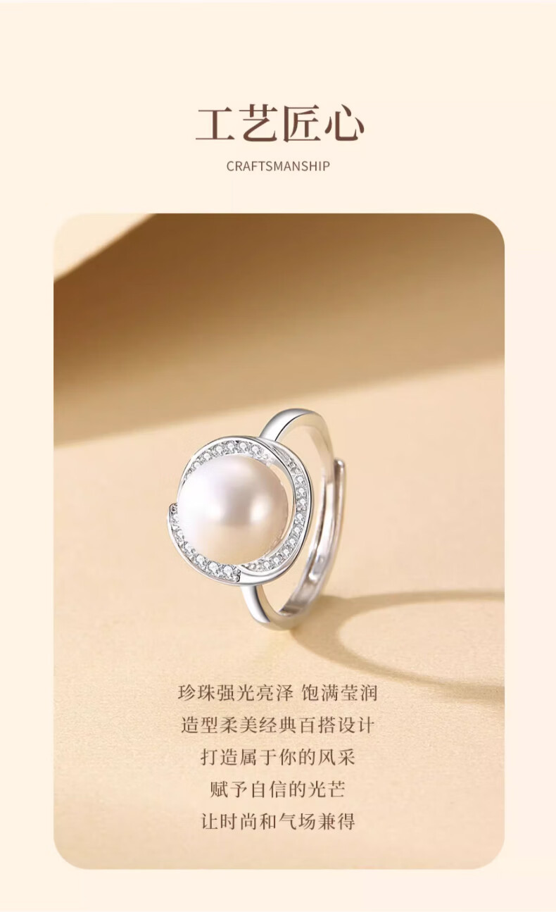CHINA GOLD Freshwater Pearl Ring S Silver Niche Design Light Luxury High-end Valentine's Day Birthday Gift for Girlfriend and Wife Exquisite Gift Pearl Ring Brand Gift Box