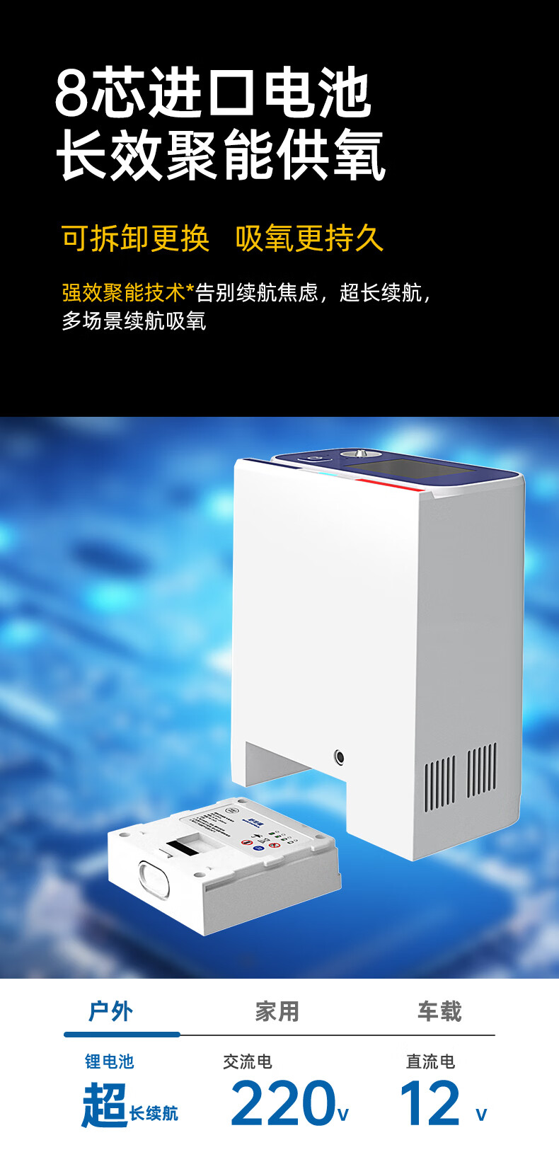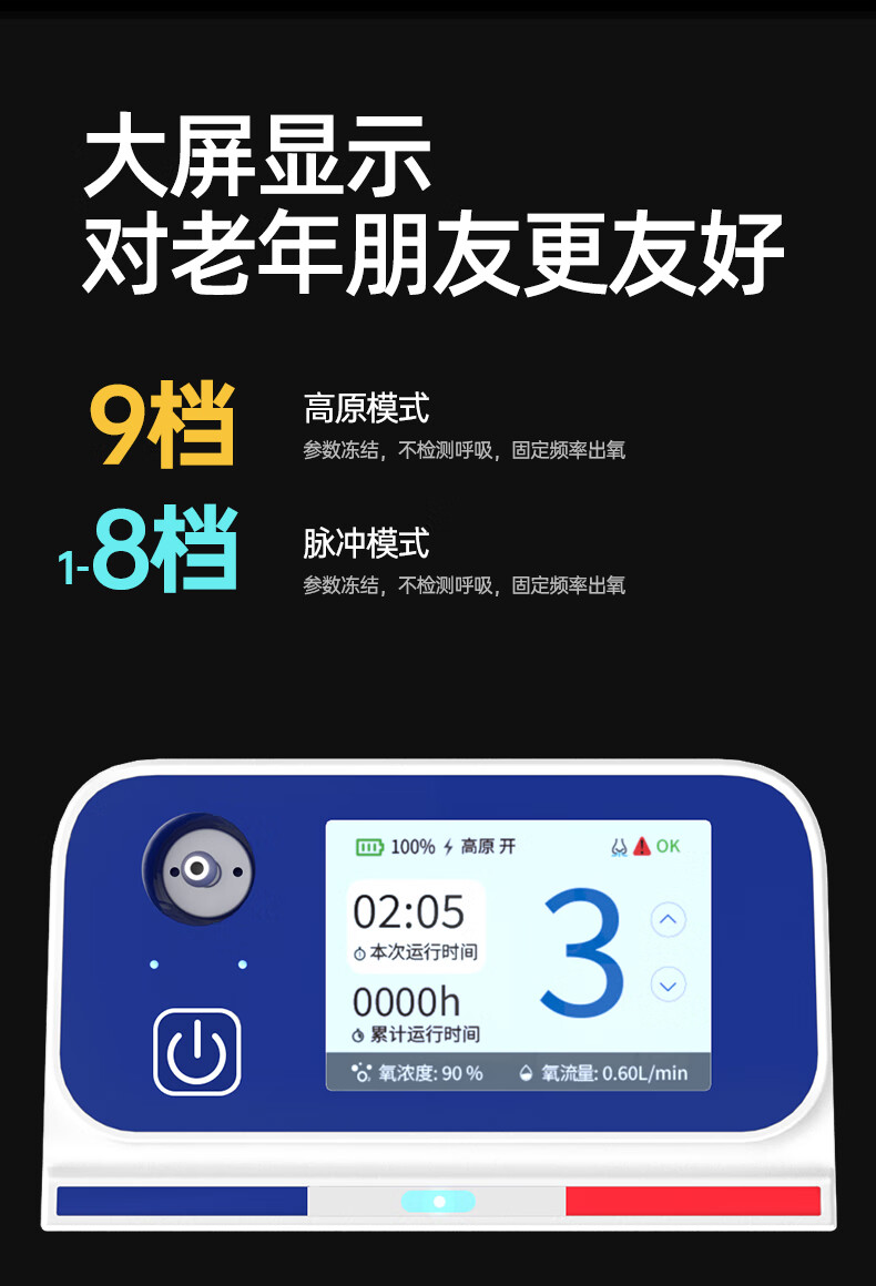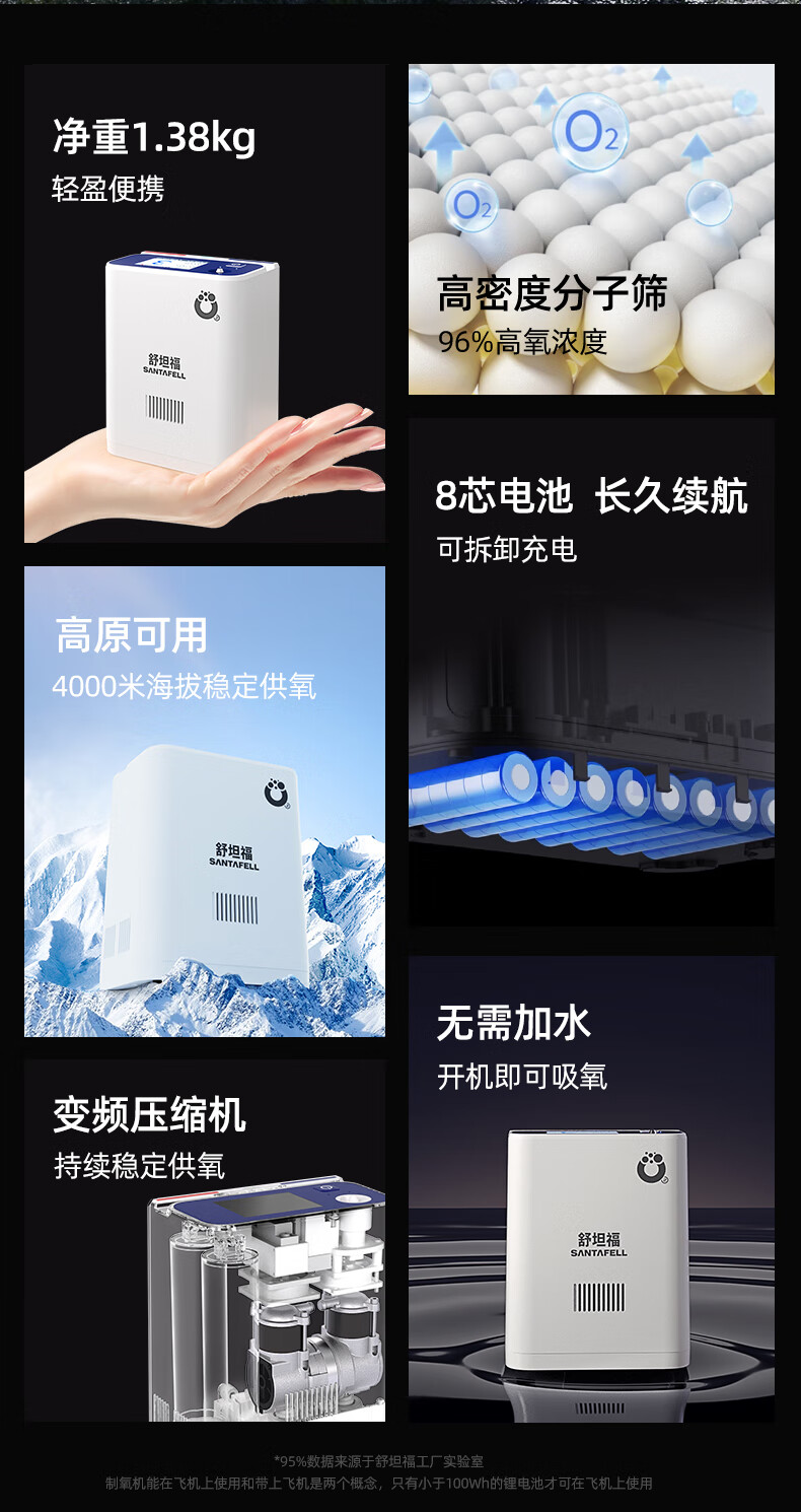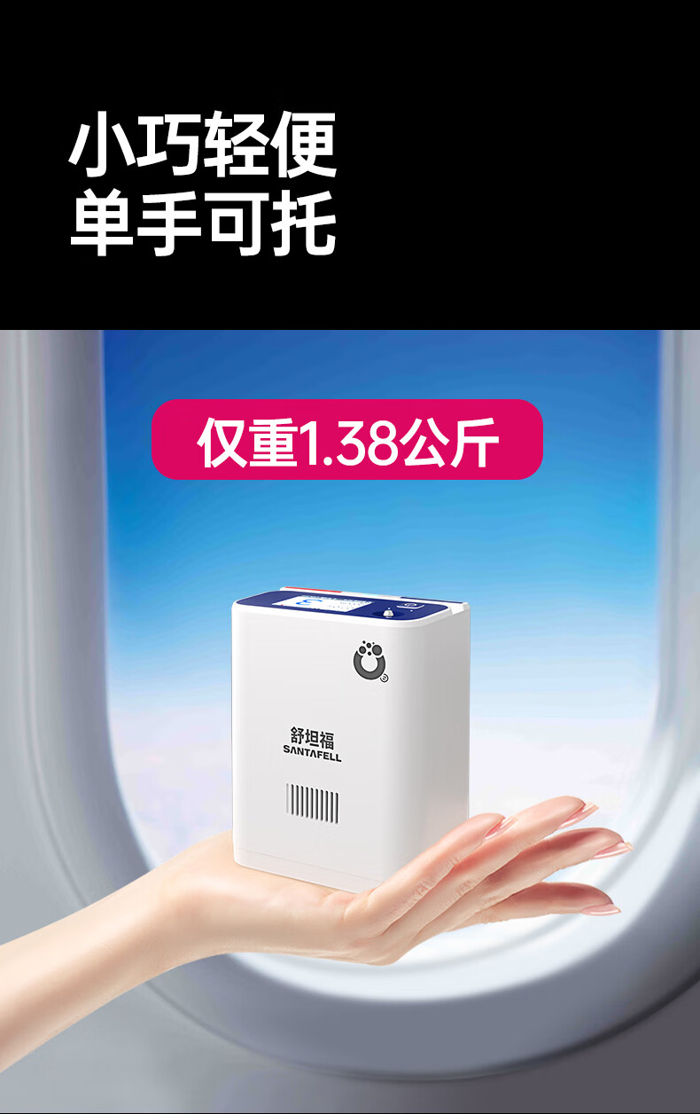 Shutanfu Brand Direct Portable Home Oxygen Concentrator Elderly Portable Charging Oxygen Machine Outing Oxygen Breathing Machine Plateau Super Long Battery Life 7 Adjustable Levels | 8-Cell Dual Batteries | Upgraded Battery Life | Hao Gift