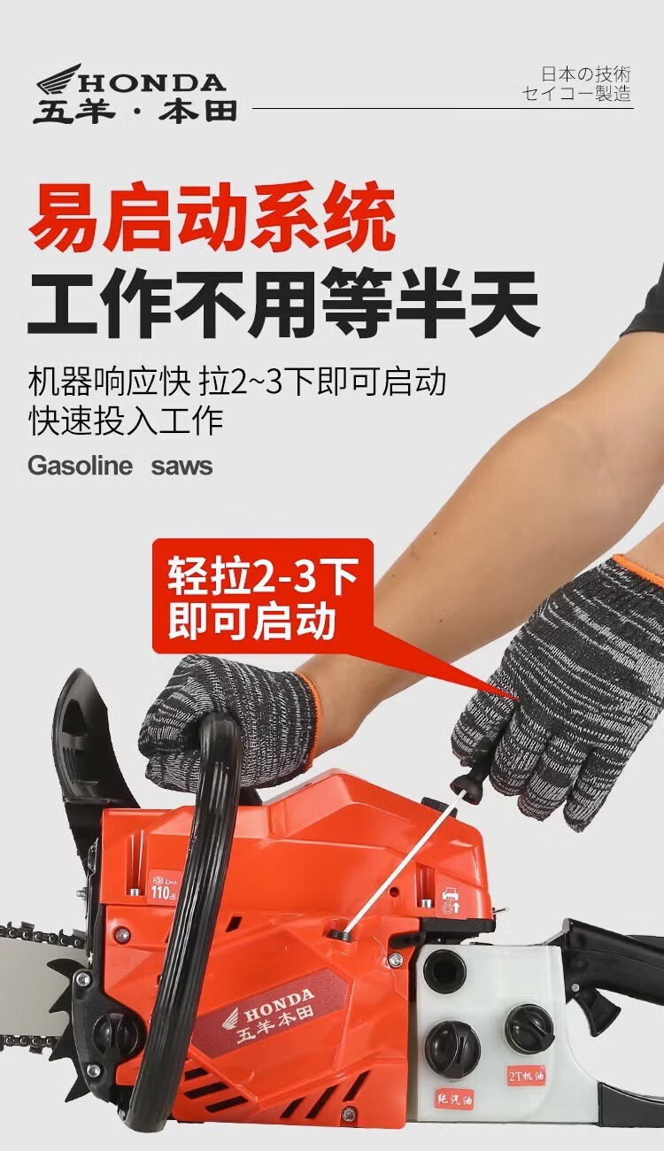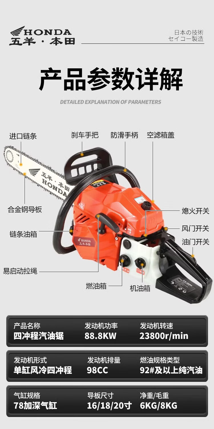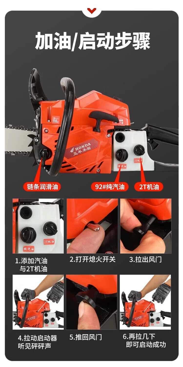 Wuyang Honda Wuyang Honda chain saw high-power gasoline saw logging saw household easy-start imported electric chain saw professional chain saw original guide plate