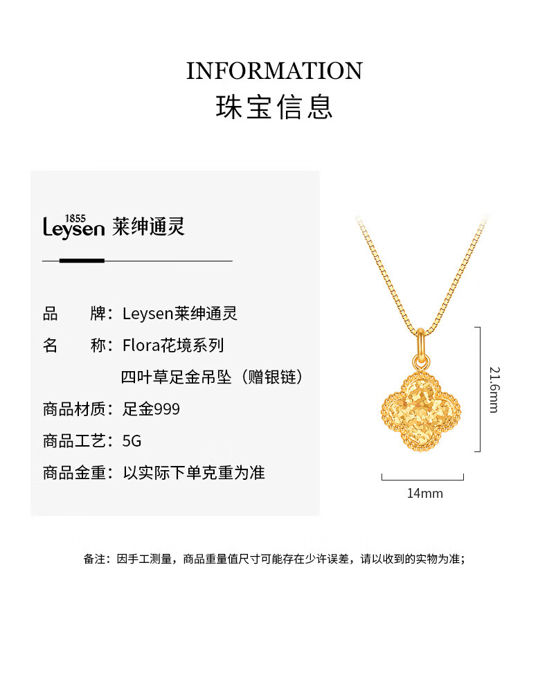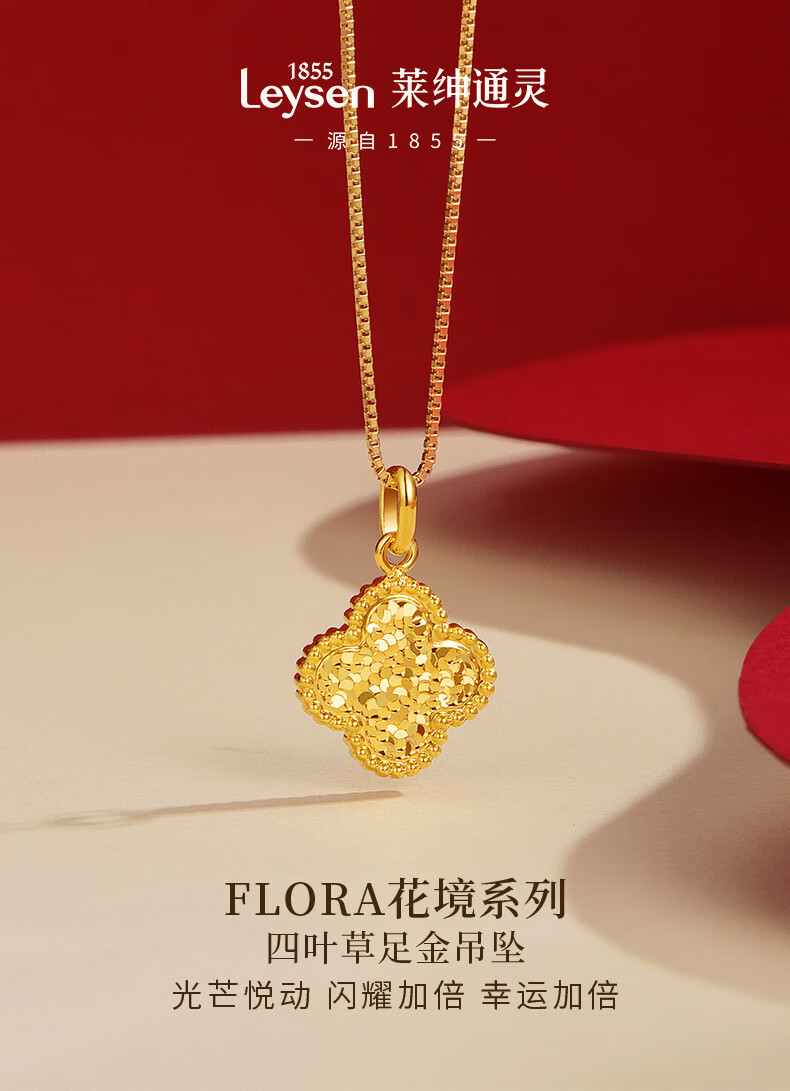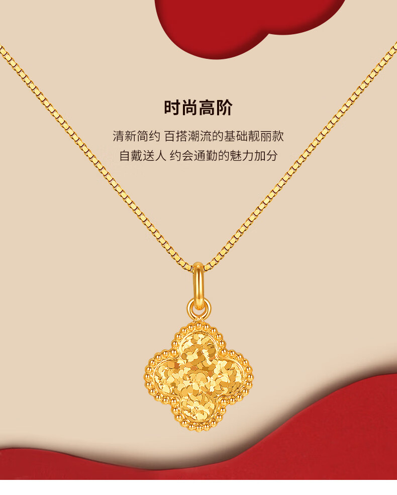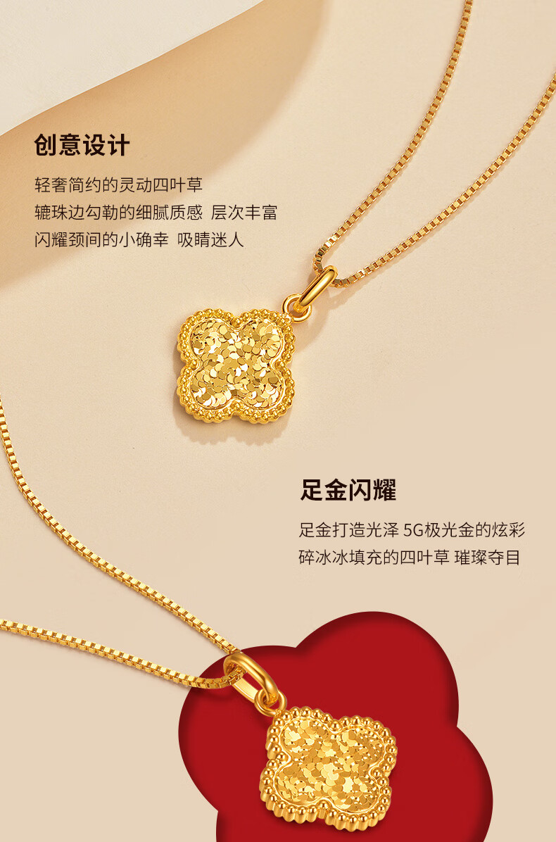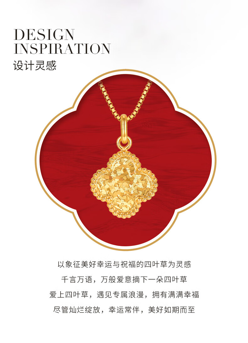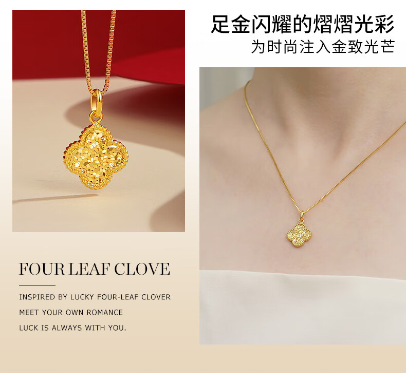 Lai Shen psychic four-leaf clover gold pendant necklace women's pure gold pendant as a birthday gift for girlfriend and wife, about 3.64g, more refund or less compensation