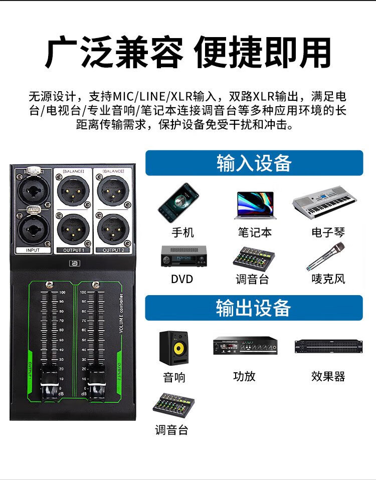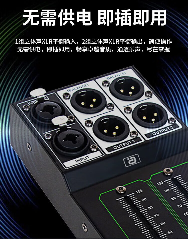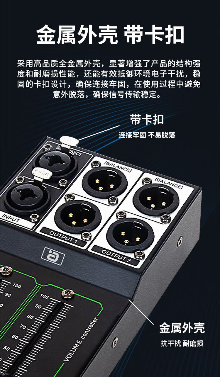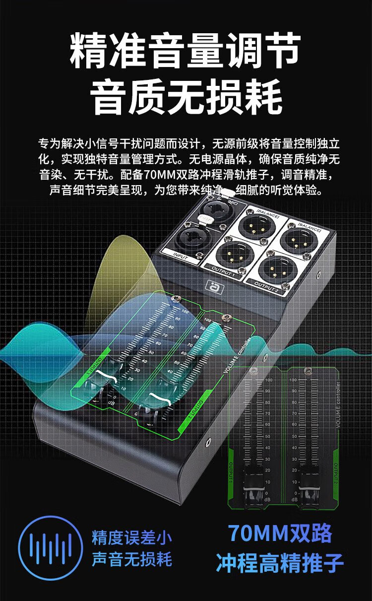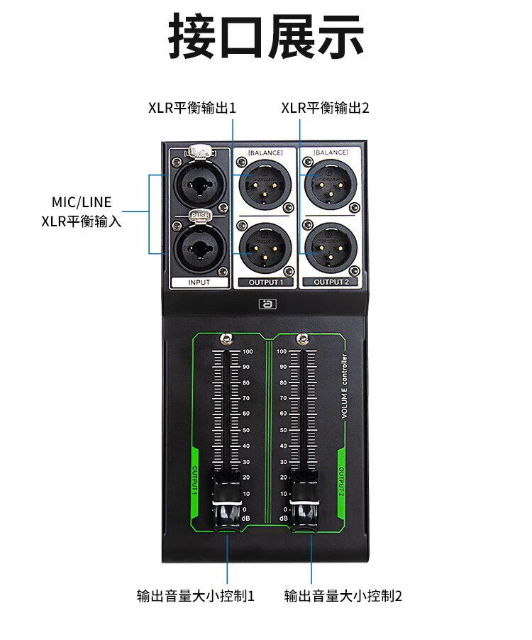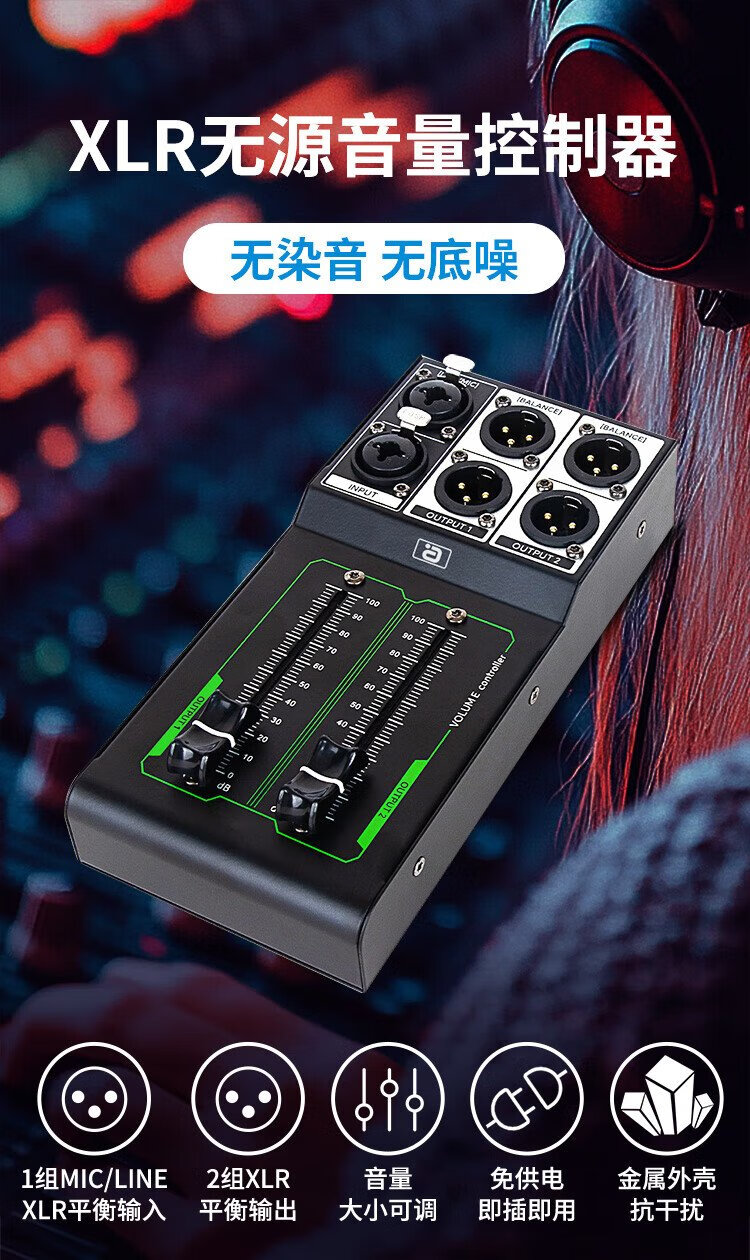 Ayin volume controller, one in and two out, passive preamp connection, mixer, MIC microphone, XLR balanced input and output, lossless sound quality, black MC400, official standard configuration