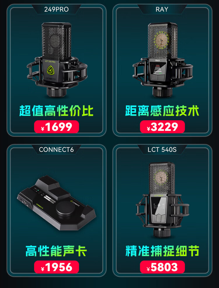 LEWITT RAY condenser microphone anchor live broadcast karaoke professional recording radio microphone sound card set equipment complete set LEWITT RAY + Aiken 2nanos set
