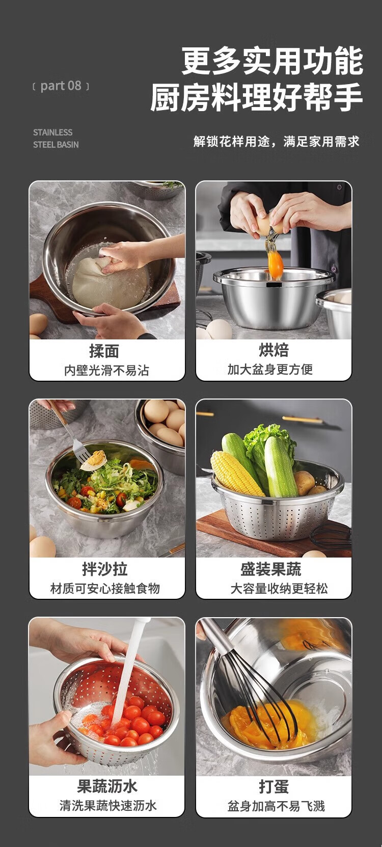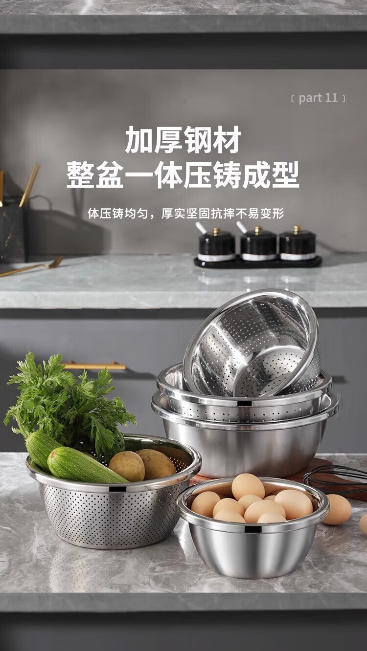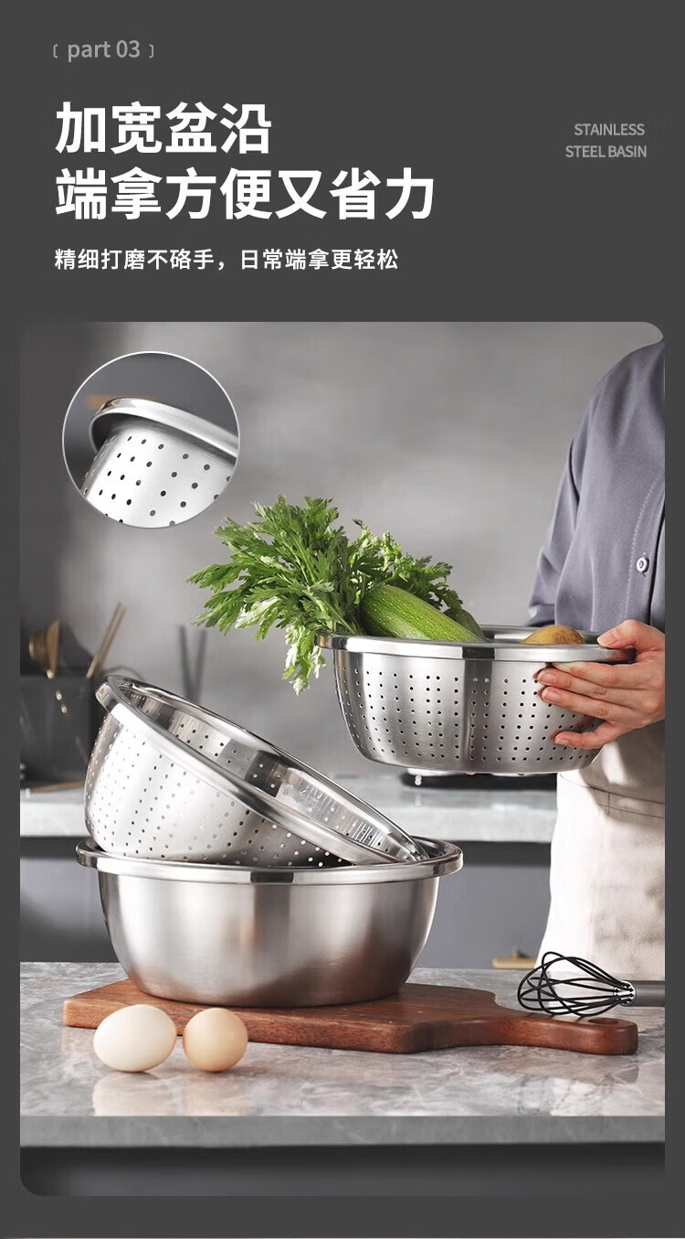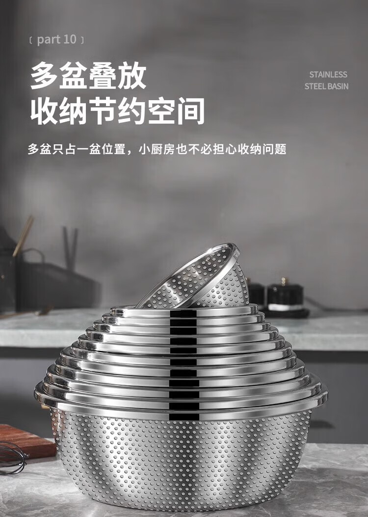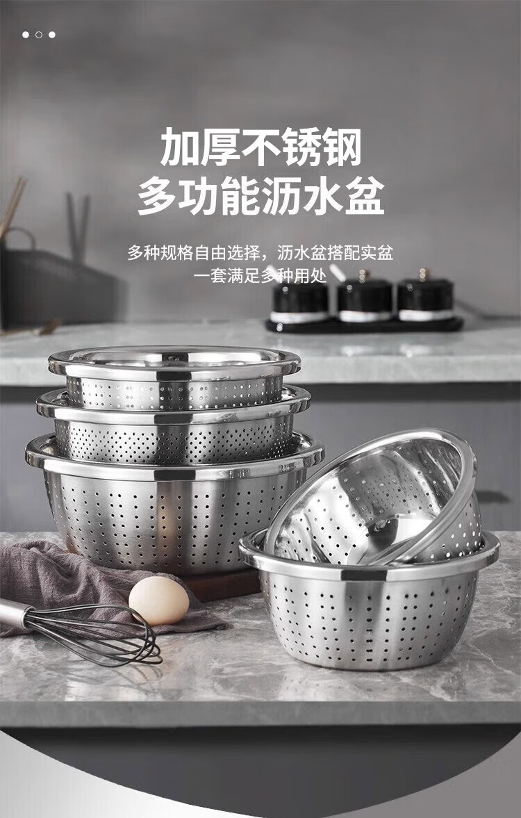 Cheap and practical stainless steel egg-beating basin and wash basin, vegetable basin, seasoning basin, lard basin, 24cm solid basin, one set