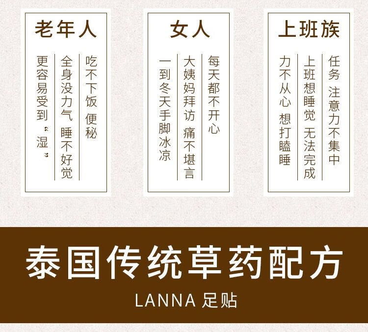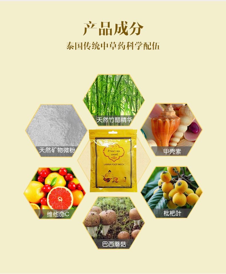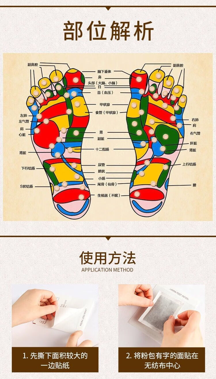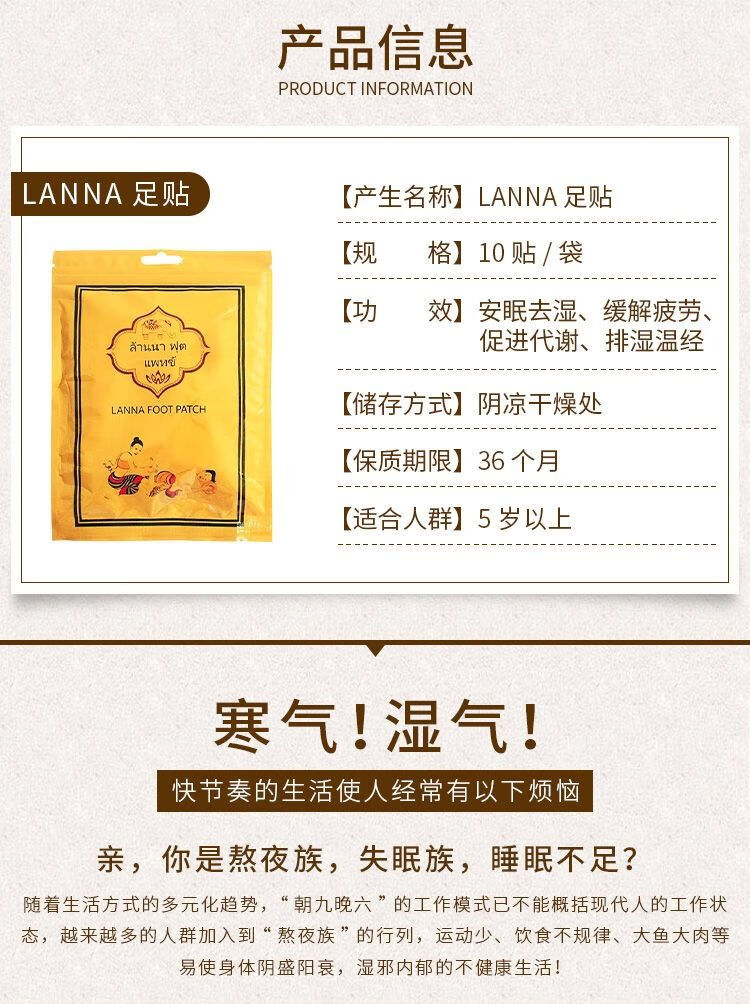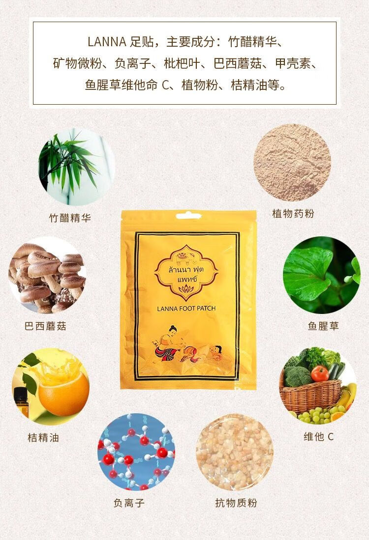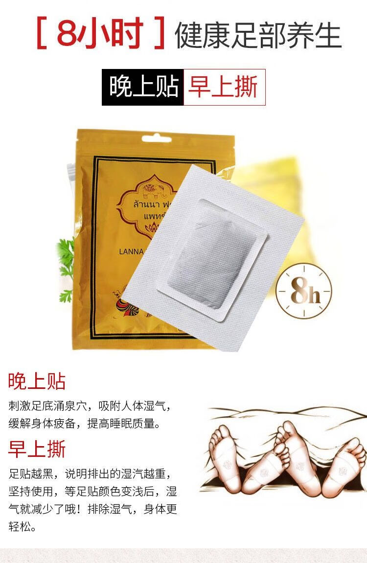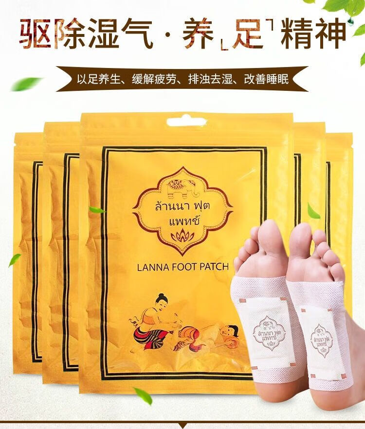 Lanna foot patch detoxifies and removes moisture, moxa leaf helps sleep and maintains health, dehumidifies sole patch, take 1 shot, 10 packs (100 patches), effective that night