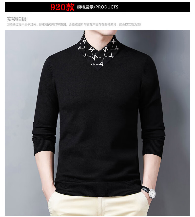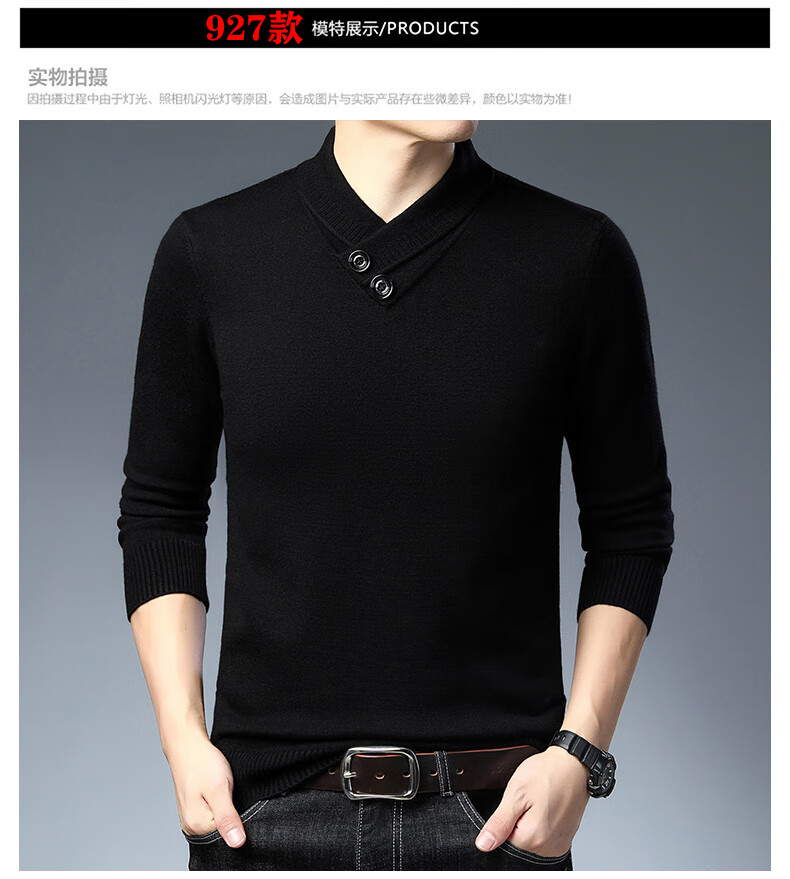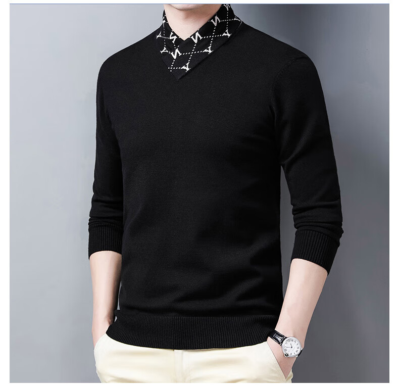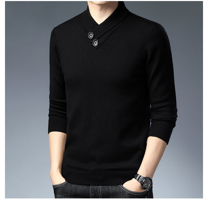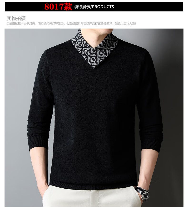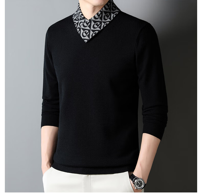 皮尔卡丹高端男士羊毛衫100%羊毛2025新款V领毛衣秋冬时尚纯羊毛打底衫男 927款【纯黑】 XL 175【建议体重135-155斤】