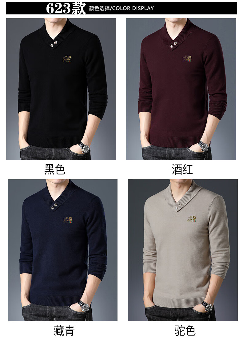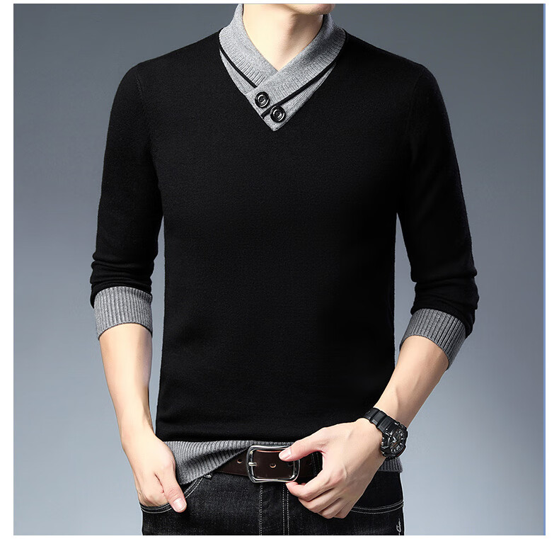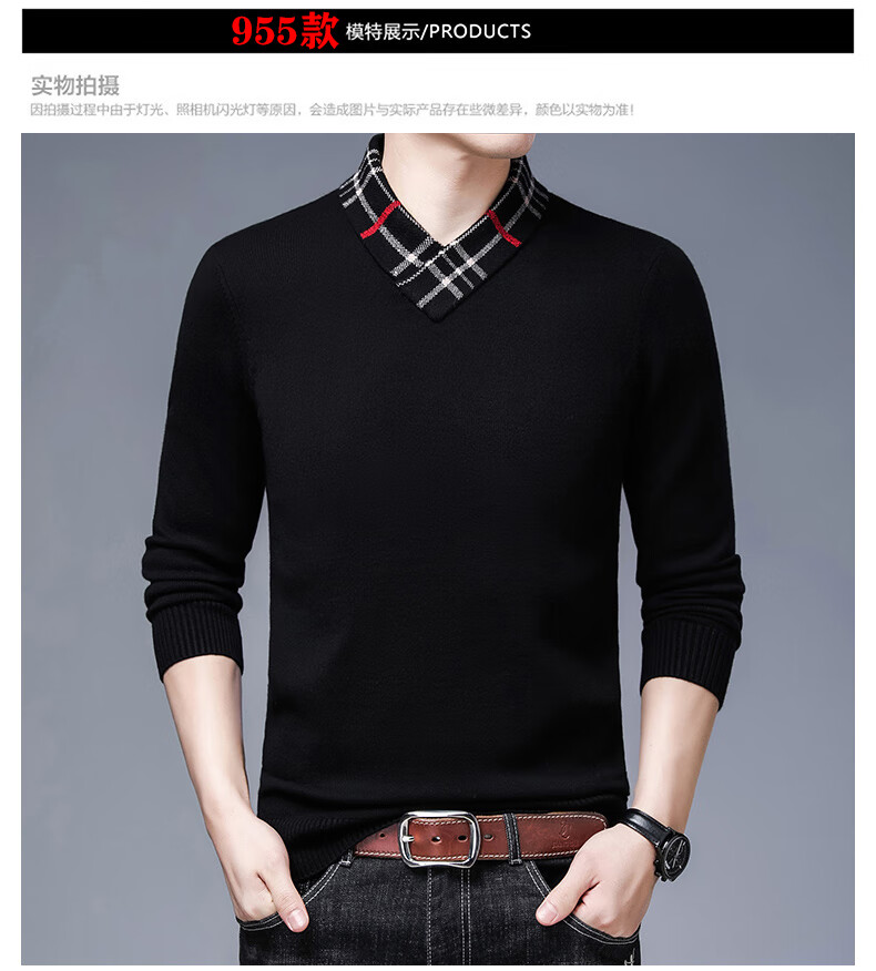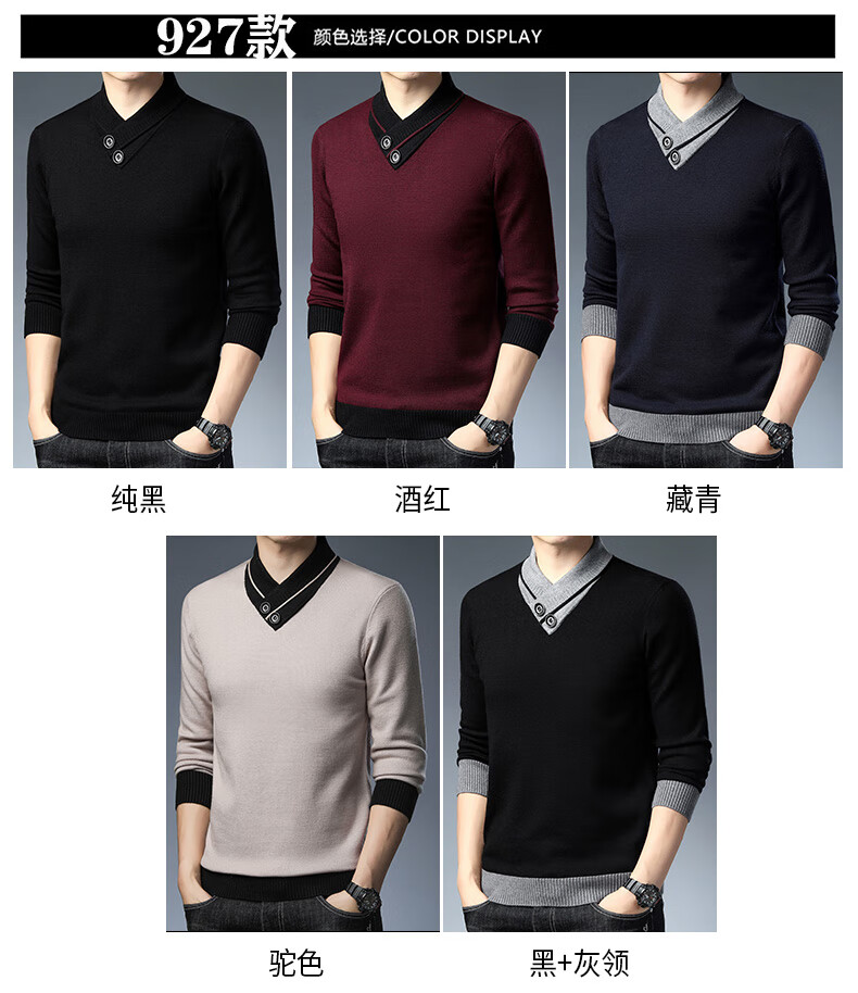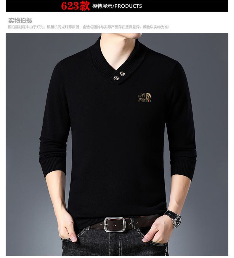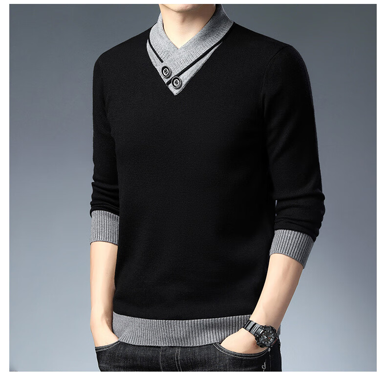 皮尔卡丹高端男士羊毛衫100%羊毛2025新款V领毛衣秋冬时尚纯羊毛打底衫男 927款【纯黑】 XL 175【建议体重135-155斤】