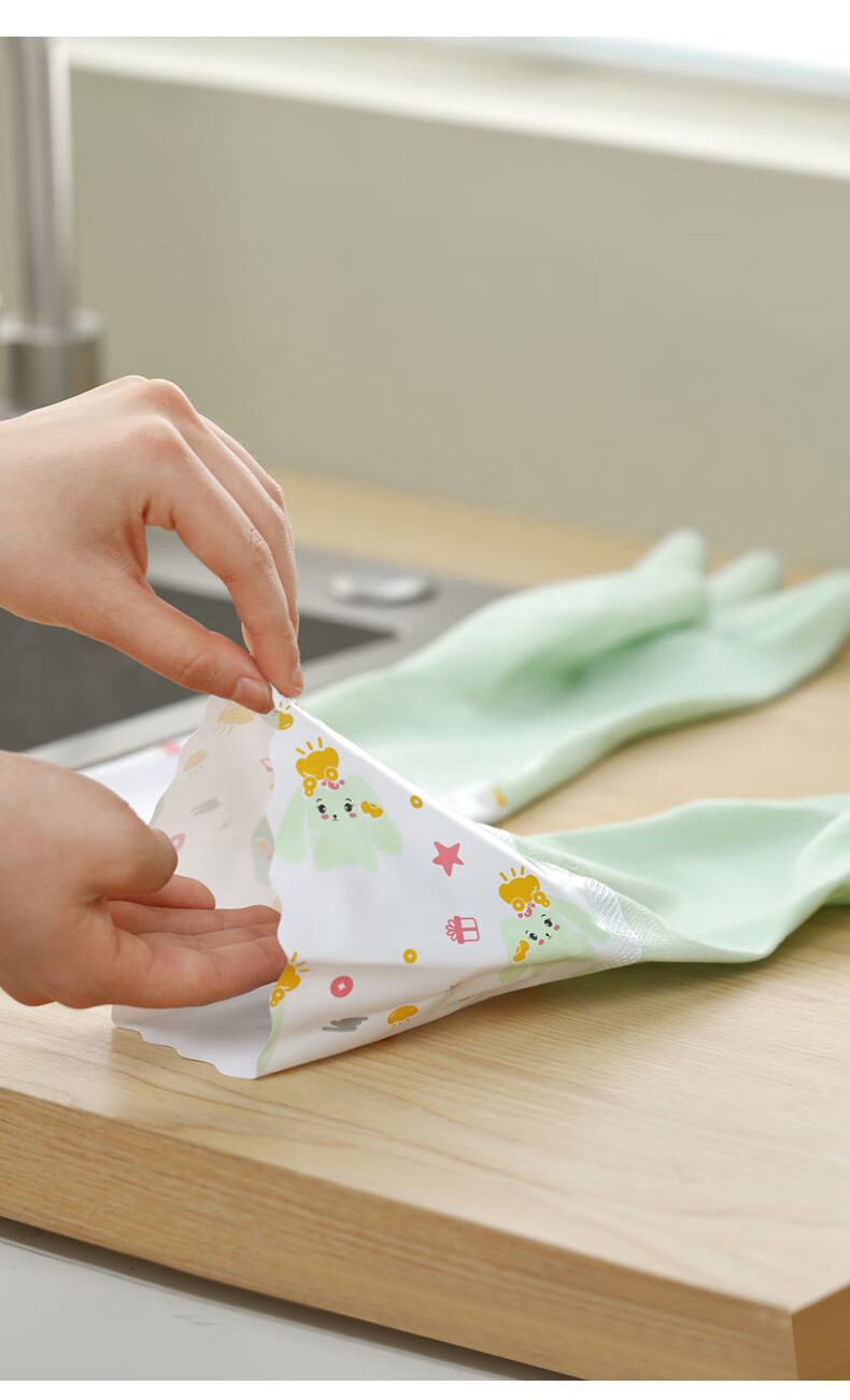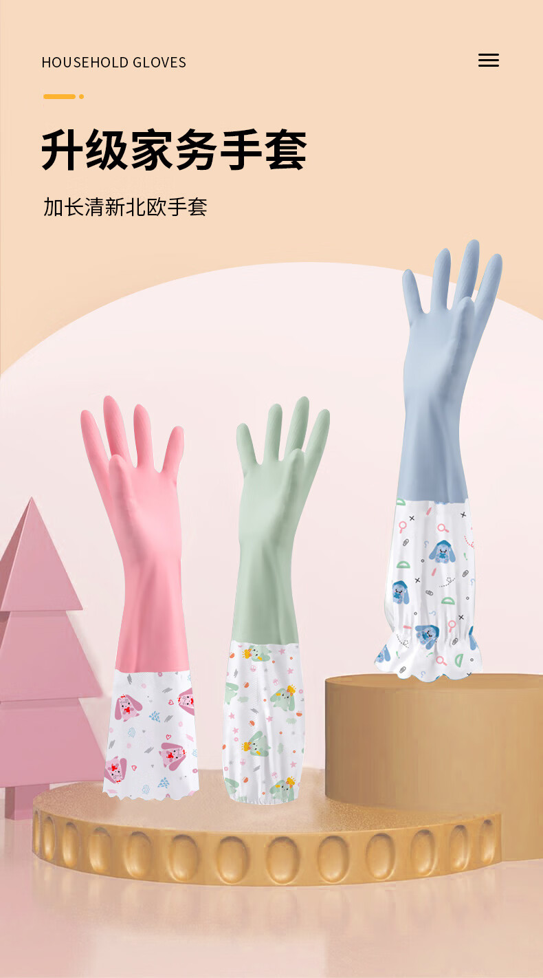 Household gloves long pink thickened elastic mouth long mixed color elastic mouth 1 pair