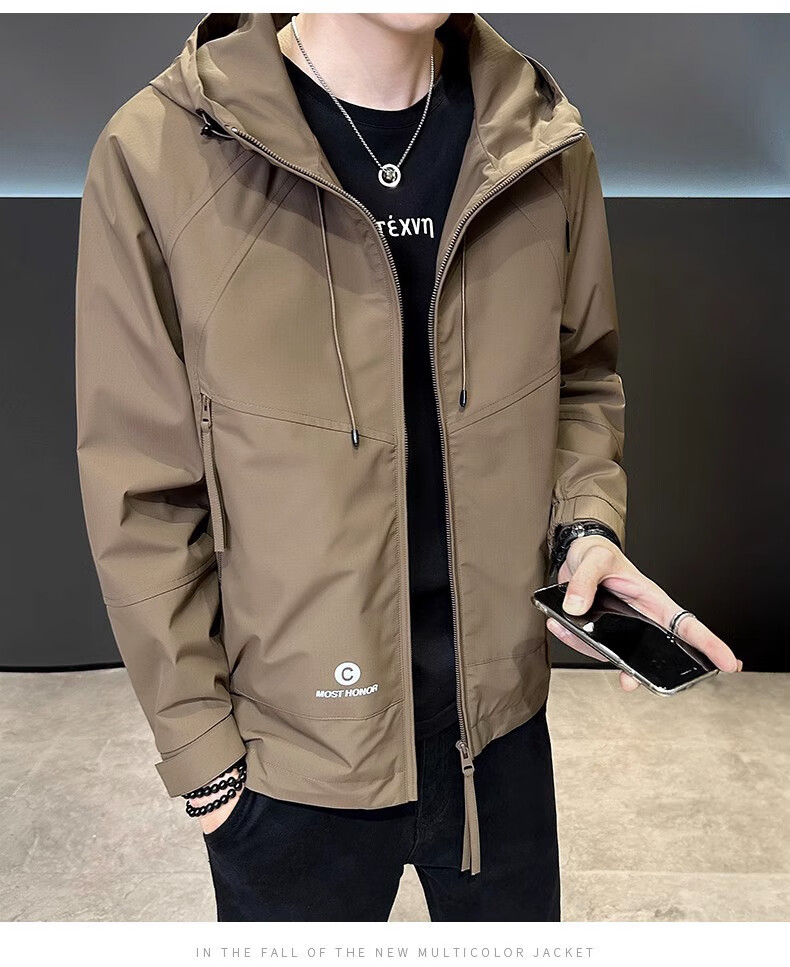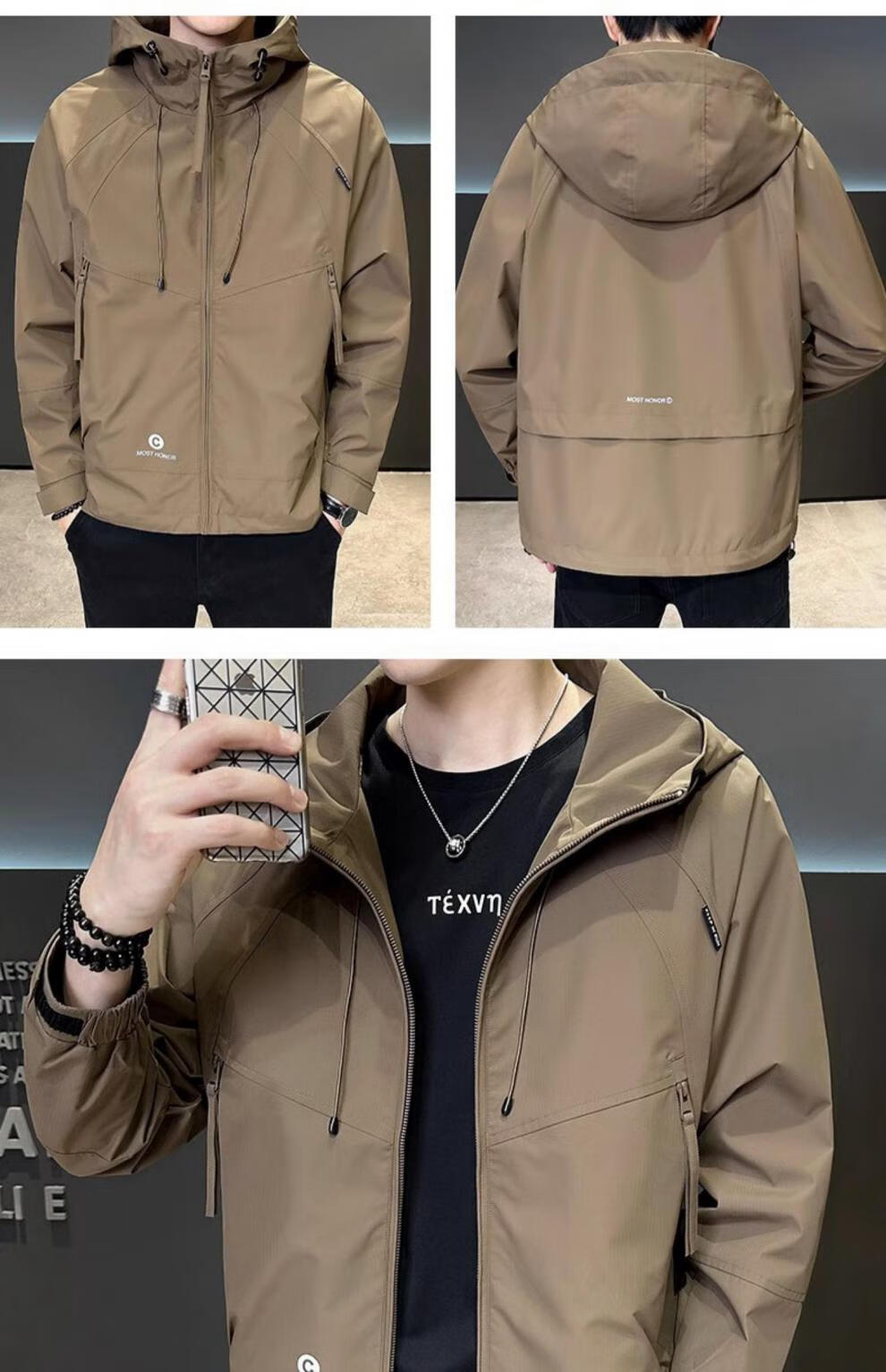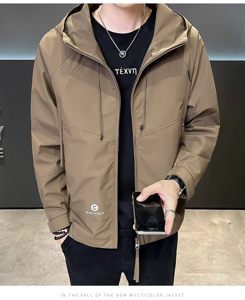 Pierre Cardin (pierre cardin) high-end three-proof assault. Jacket men's spring and autumn 2025 new hooded jacket men's winter cotton brown second cotton thickened cotton XL 120-140Jin Jin equals 0.5 kg