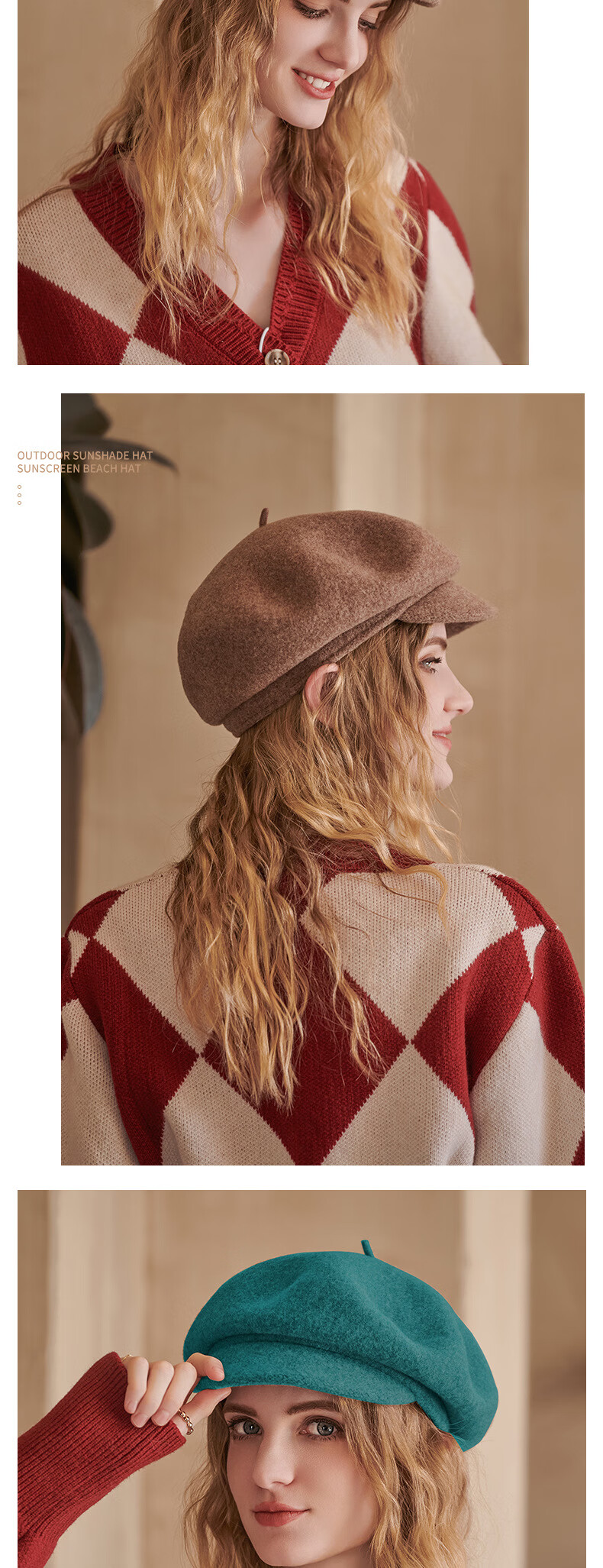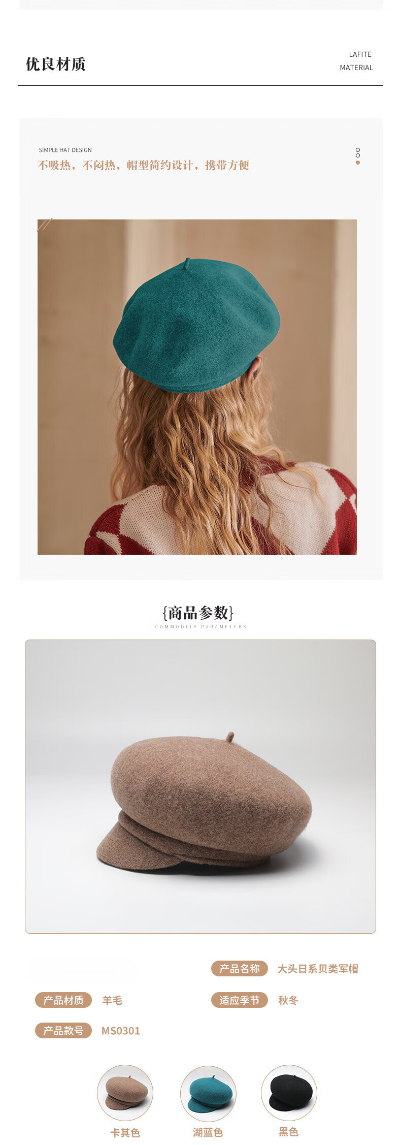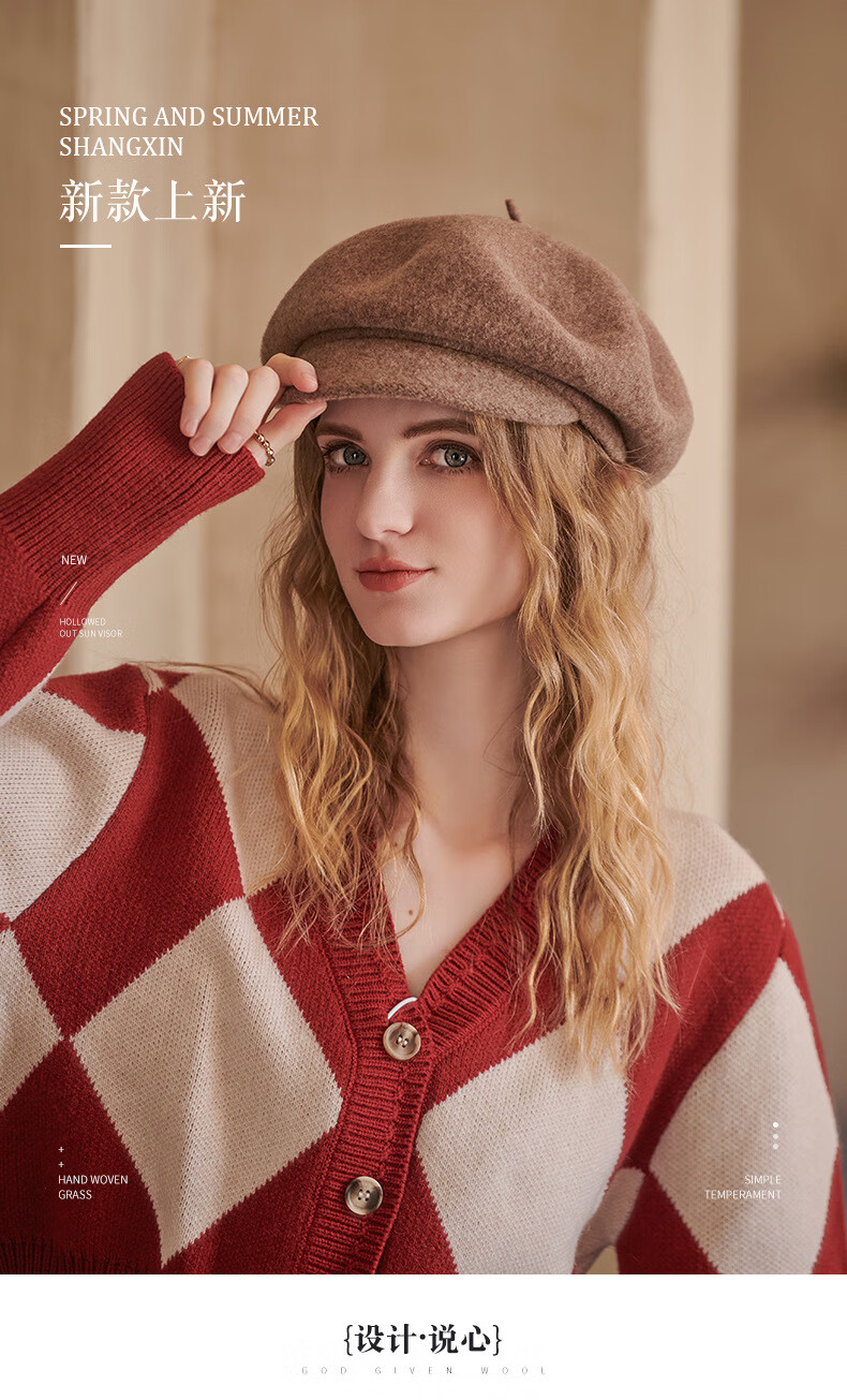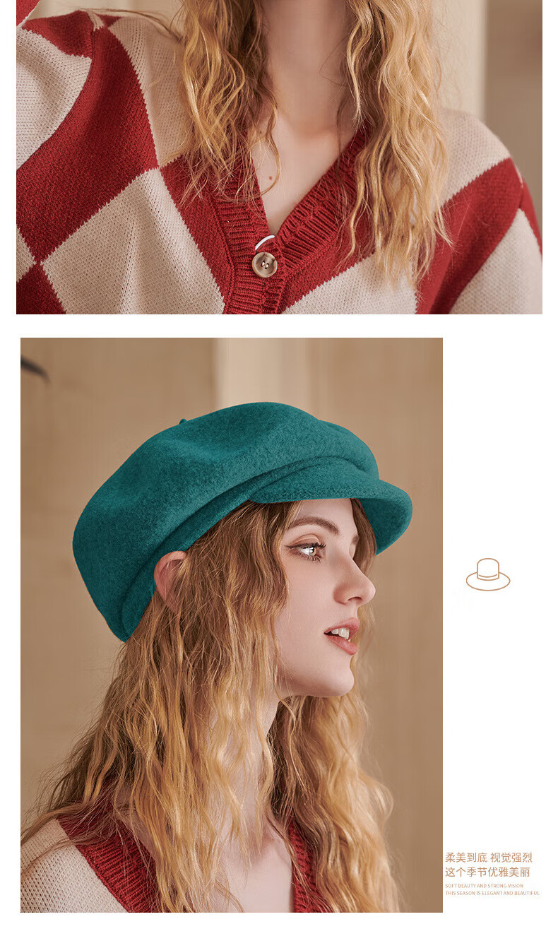Woodpecker Warm Beret Japanese Versatile Color Wool Beret Literary Retro Newsboy Hat Women Black Adjustable