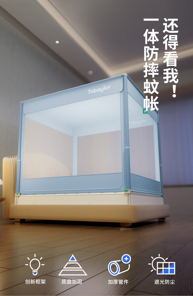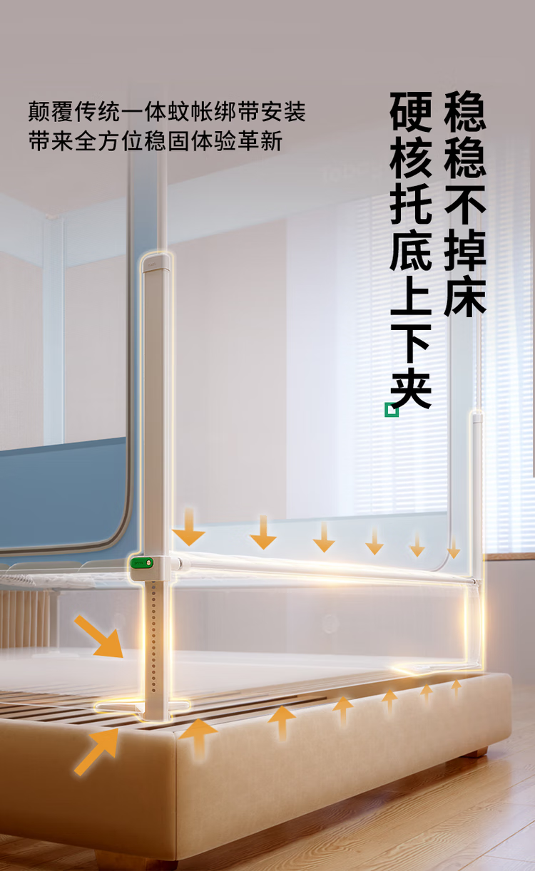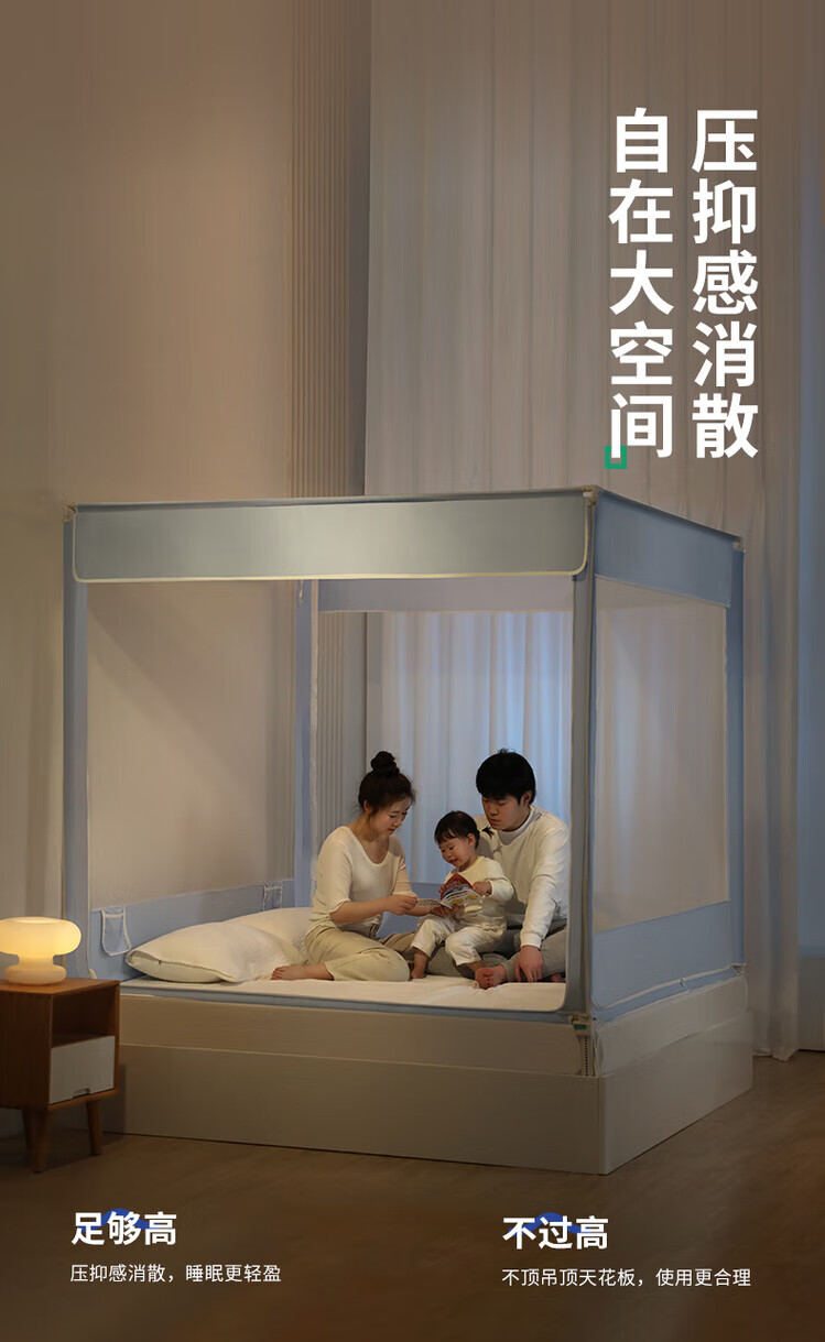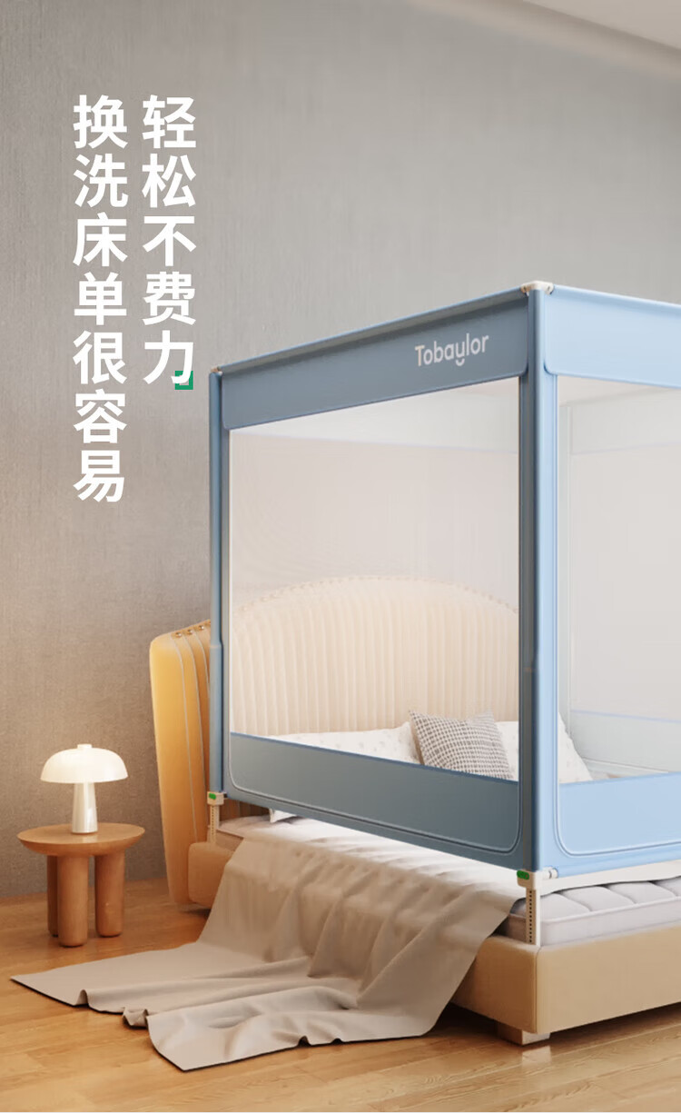 Tubaile 2024 lifting anti-fall mosquito net bed fence baby home bedroom children's zipper integrated T56 lifting anti-fall mosquito net milky white 2024 innovative bottom 1.5m*1.9m5 feet mattress