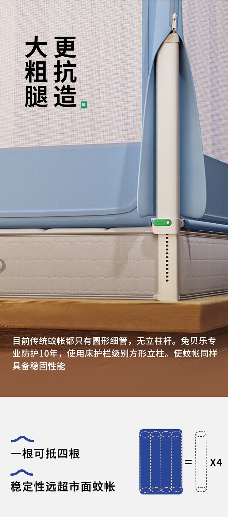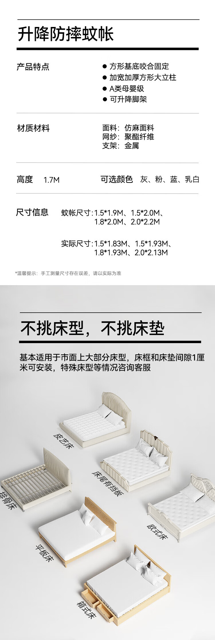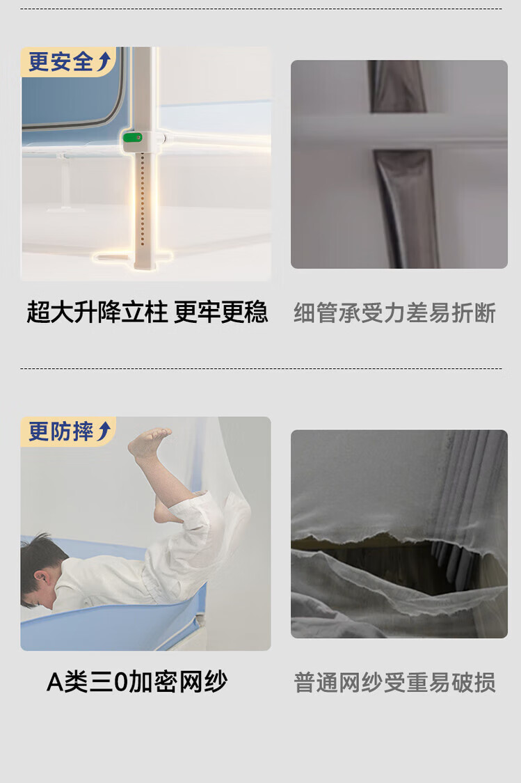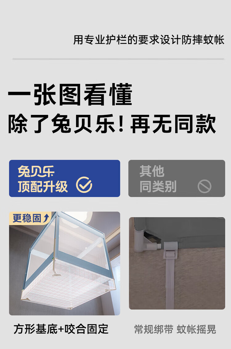 Tubaile 2024 lifting anti-fall mosquito net bed fence baby home bedroom children's zipper integrated T56 lifting anti-fall mosquito net milky white 2024 innovative bottom 1.5m*1.9m5 feet mattress