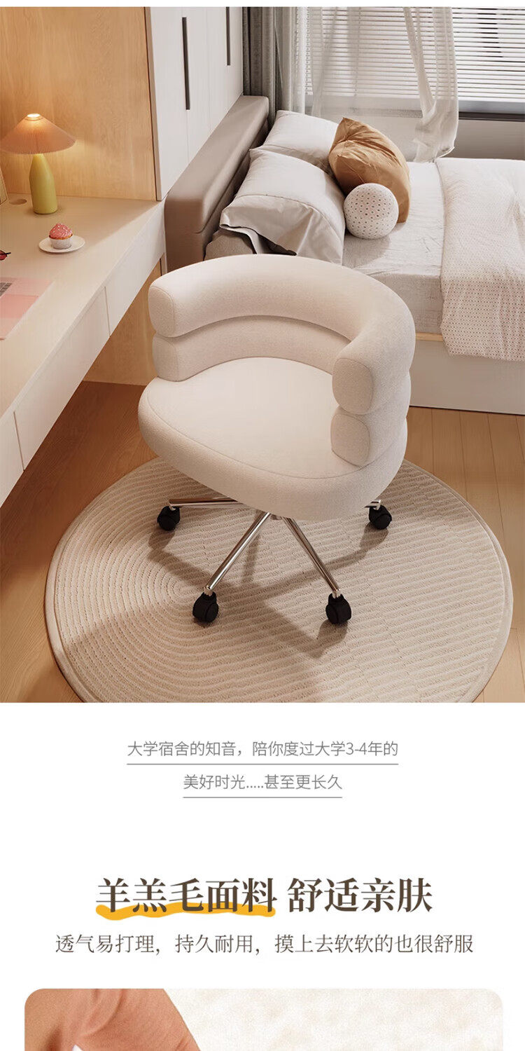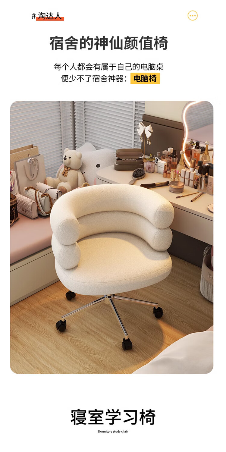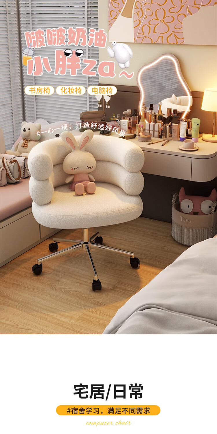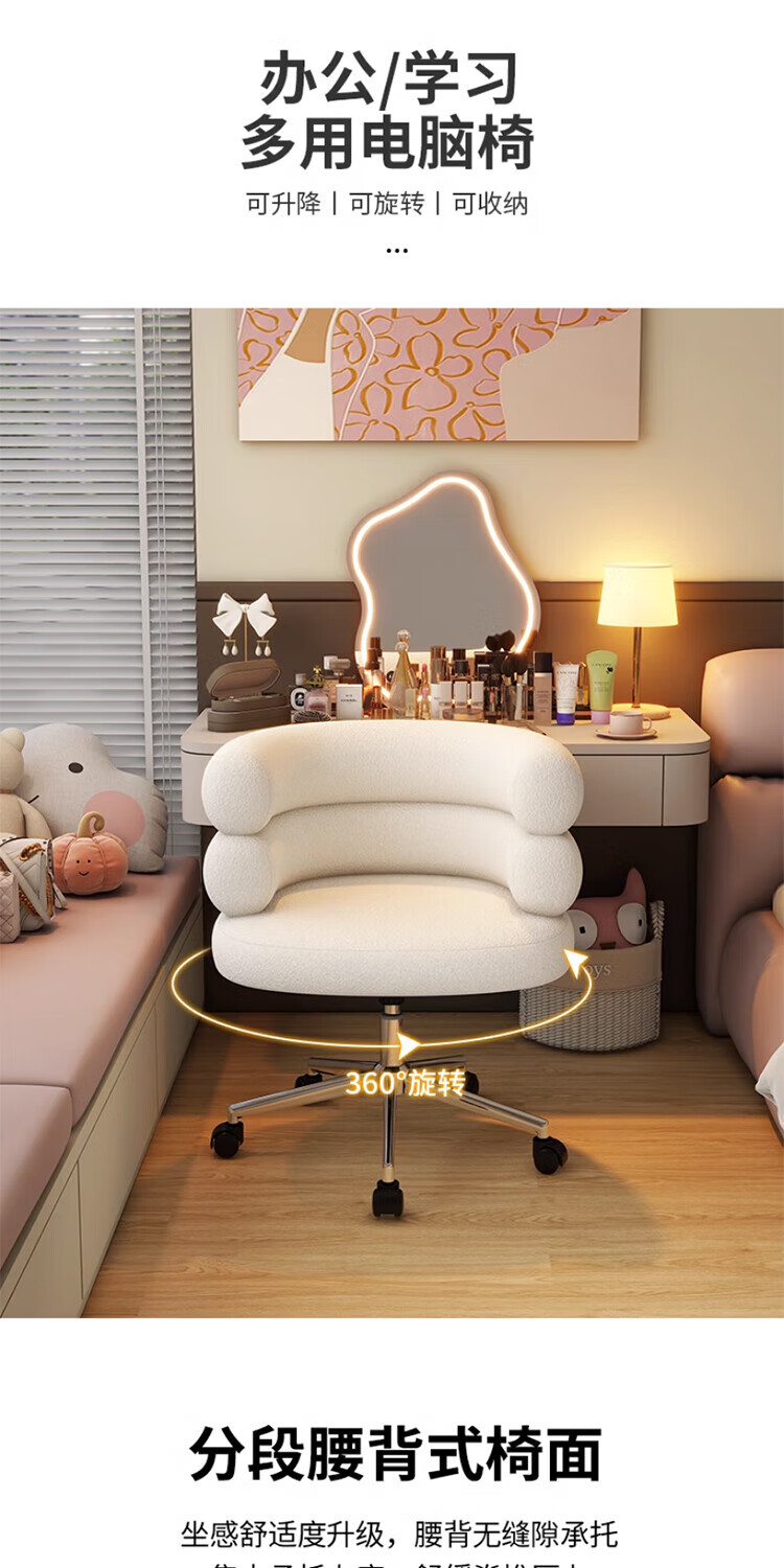 OUJI Internet celebrity BOBO bedroom computer chair home dressing table stool girls cute backrest lifting makeup chair leisure chair off-white roller model spray-coated steel feet steel feet fixed armrests