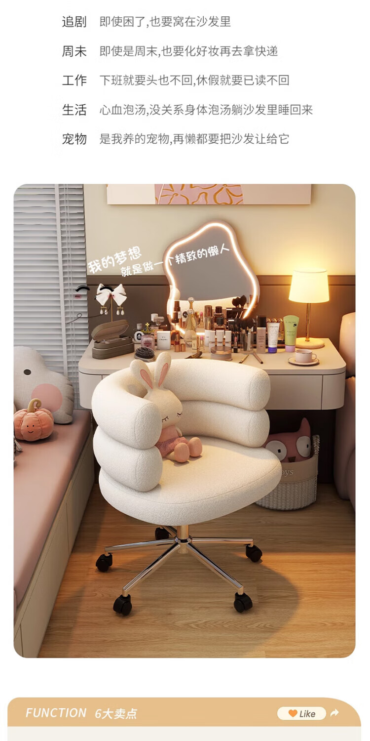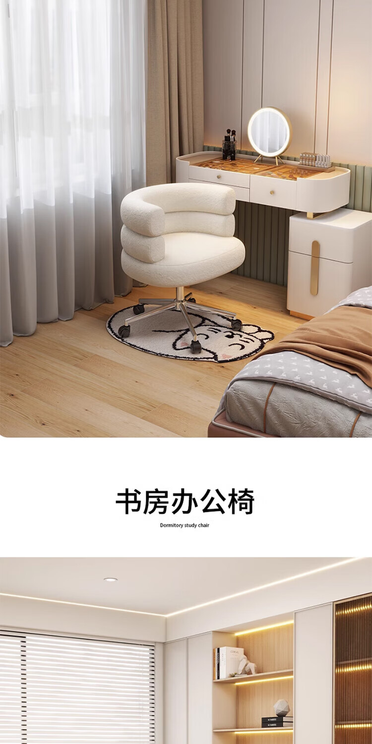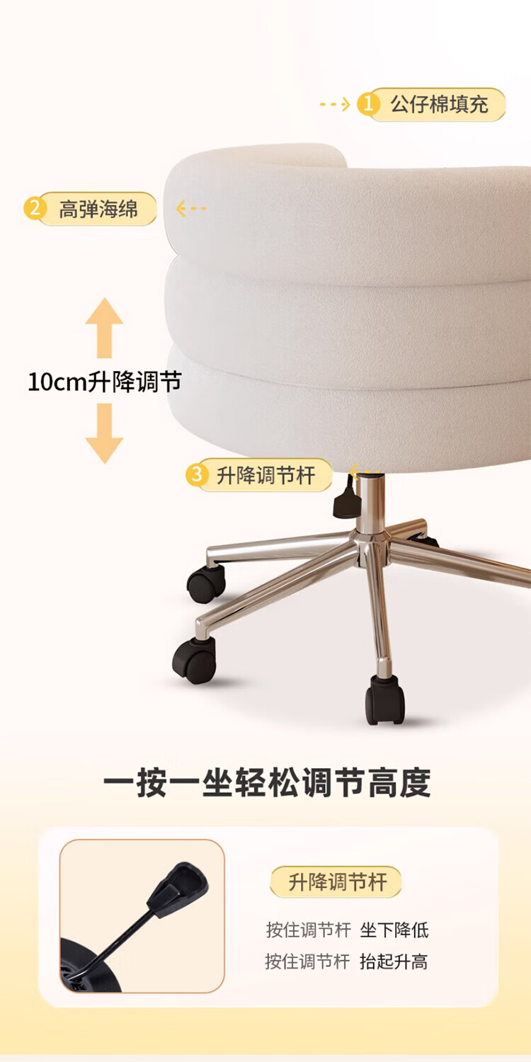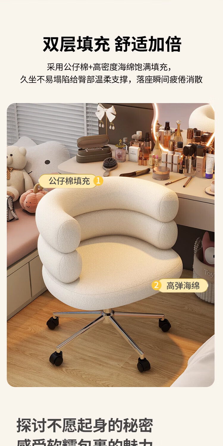 OUJI Internet celebrity BOBO bedroom computer chair home dressing table stool girls cute backrest lifting makeup chair leisure chair off-white roller model spray-coated steel feet steel feet fixed armrests