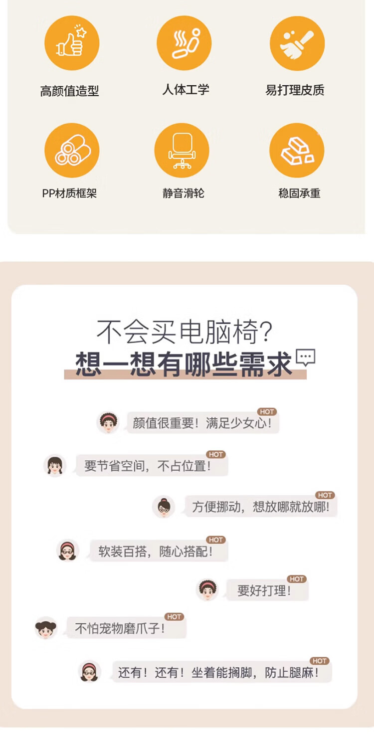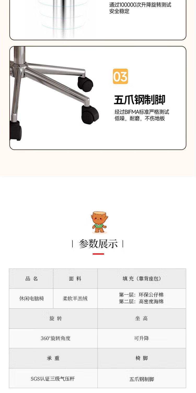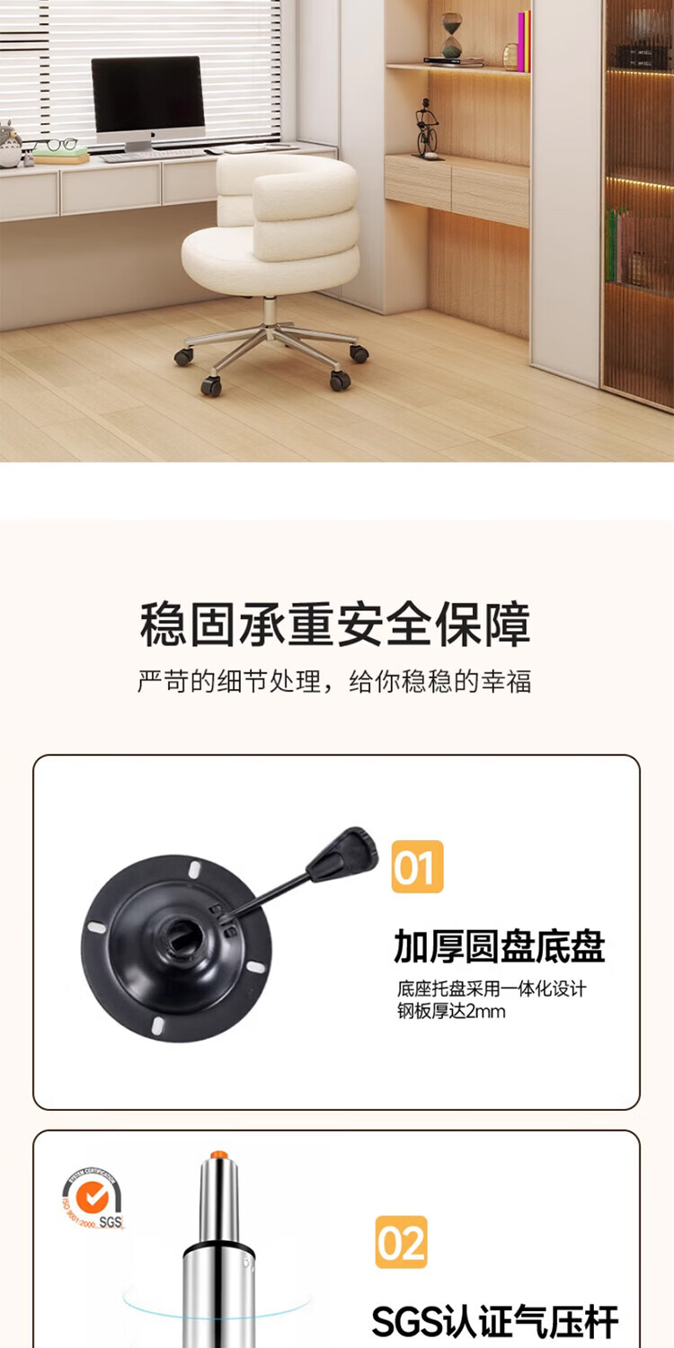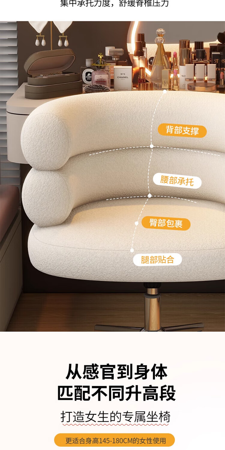 OUJI Internet celebrity BOBO bedroom computer chair home dressing table stool girls cute backrest lifting makeup chair leisure chair off-white roller model spray-coated steel feet steel feet fixed armrests