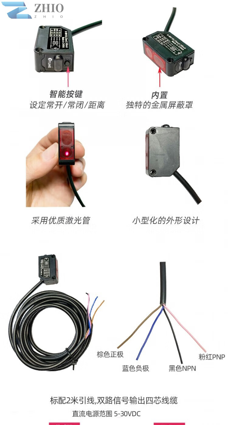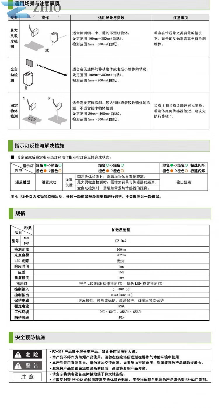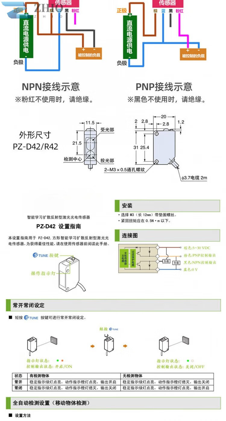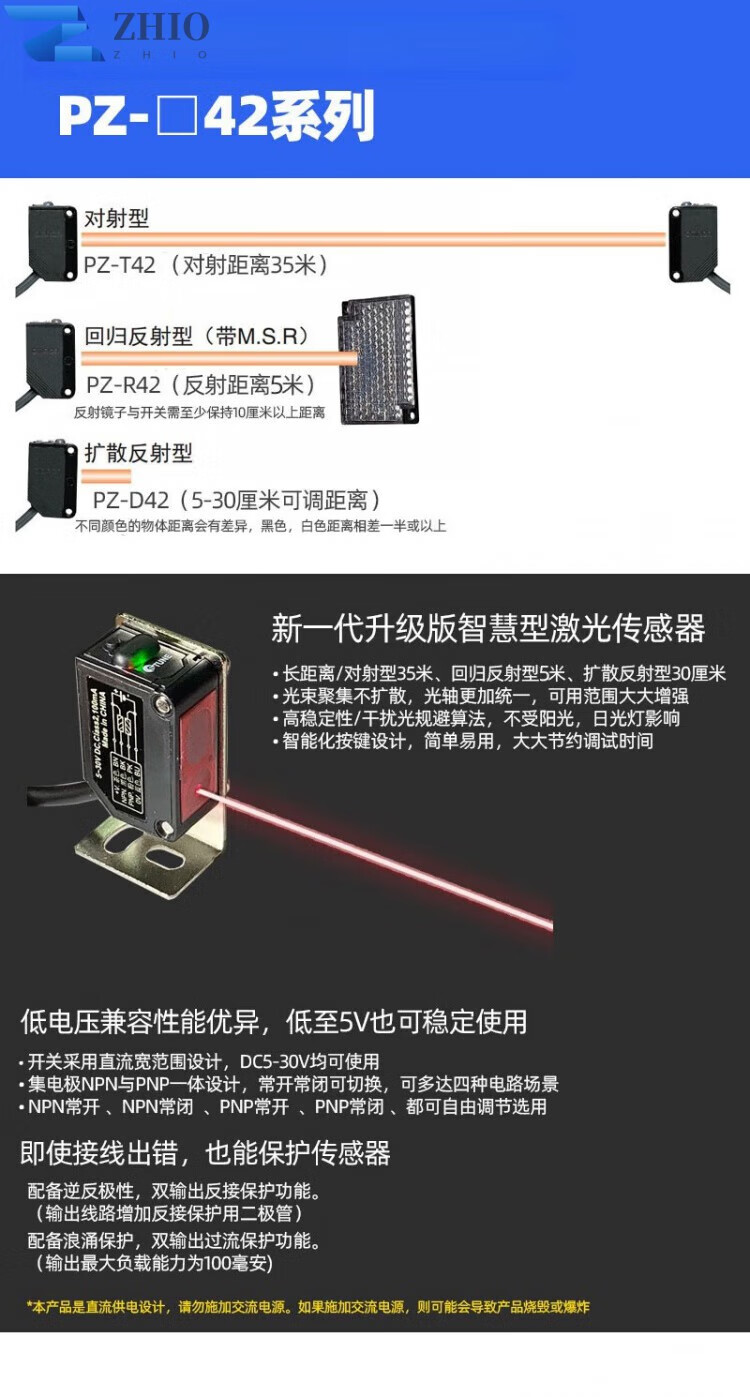 Small laser diffuse reflection photoelectric switch PZ-D42 small size square retroreflective sensor 5V12V24V PZ-D42 diffuse reflection within 30 cm/small laser button adjustment