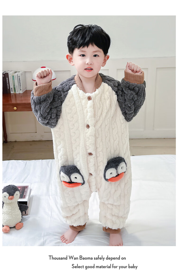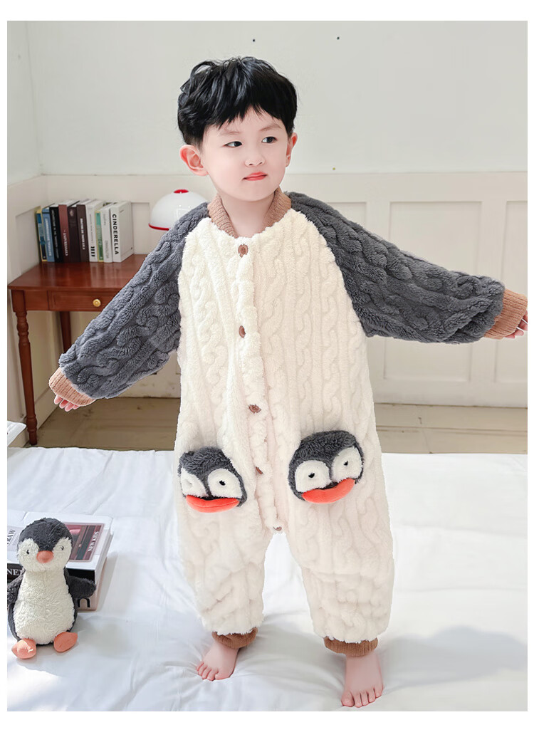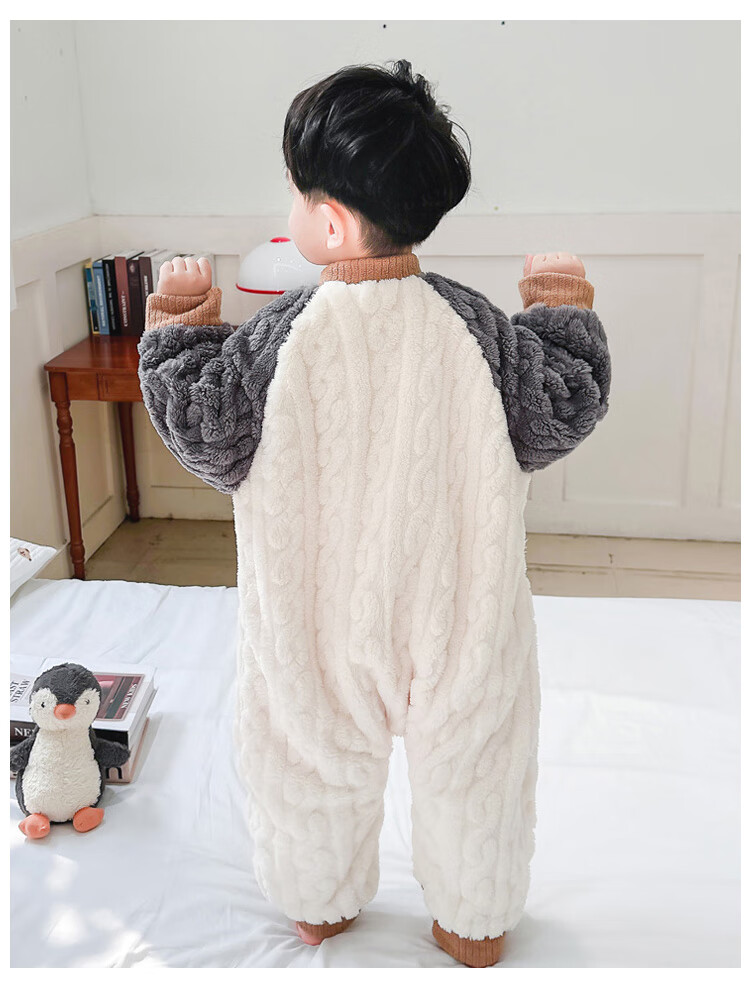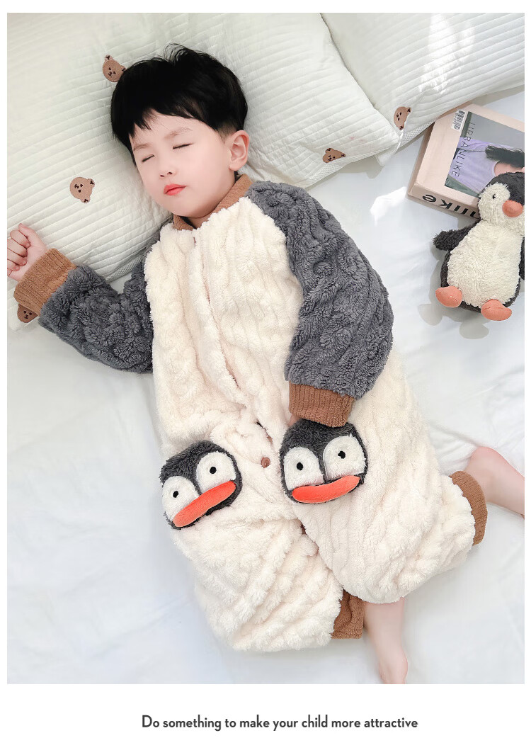 Papi Monkey Boys Sleeping Bag Coral Fleece Winter Thickened Baby Anti-Kick Quilt Autumn and Winter Flannel Children's Pajamas Winter Gray Double Layer Thickened Size 110 Recommended for 3-4 years old (height around 100)