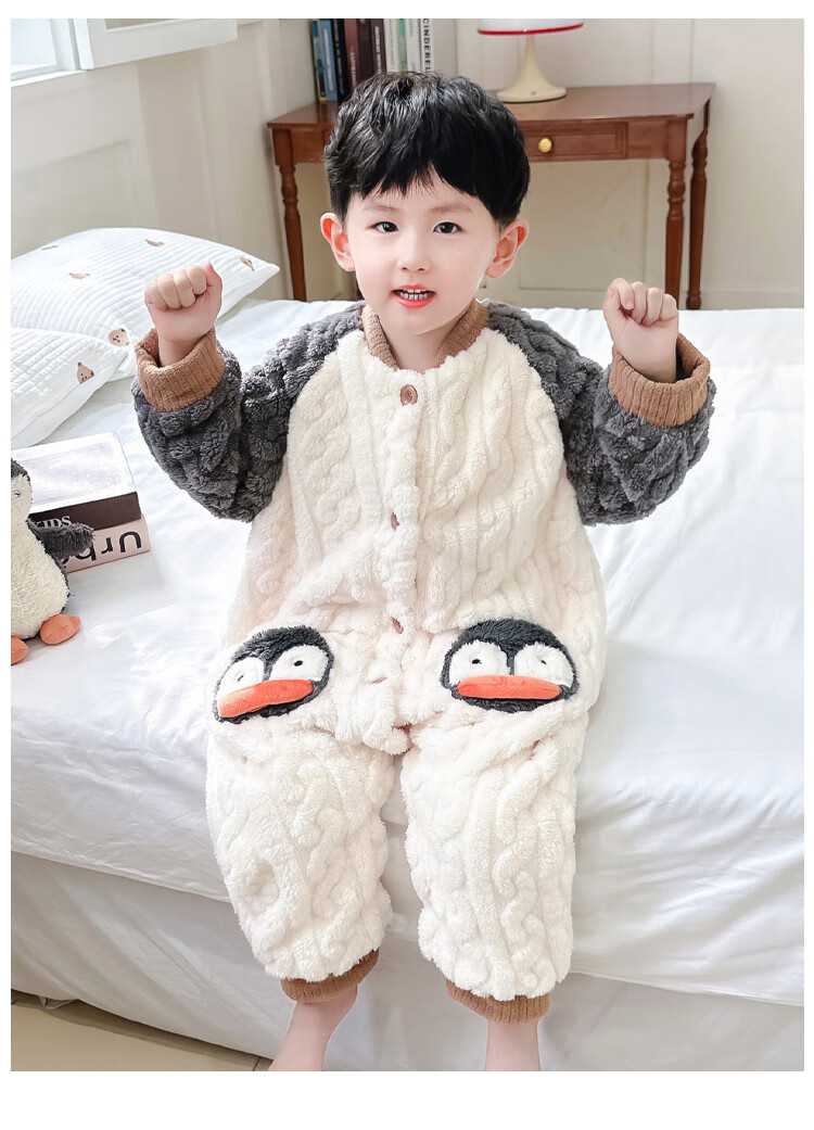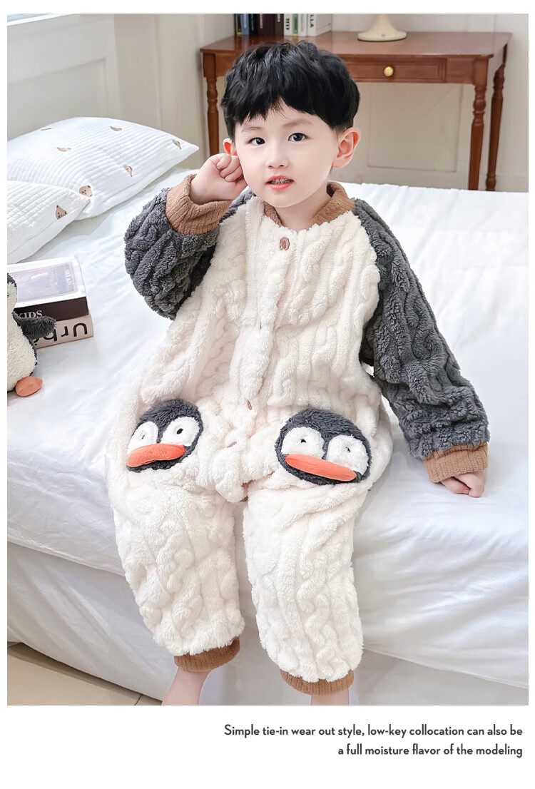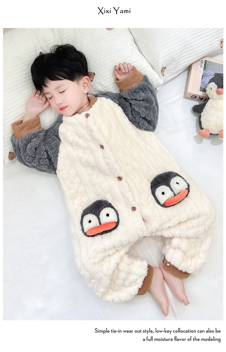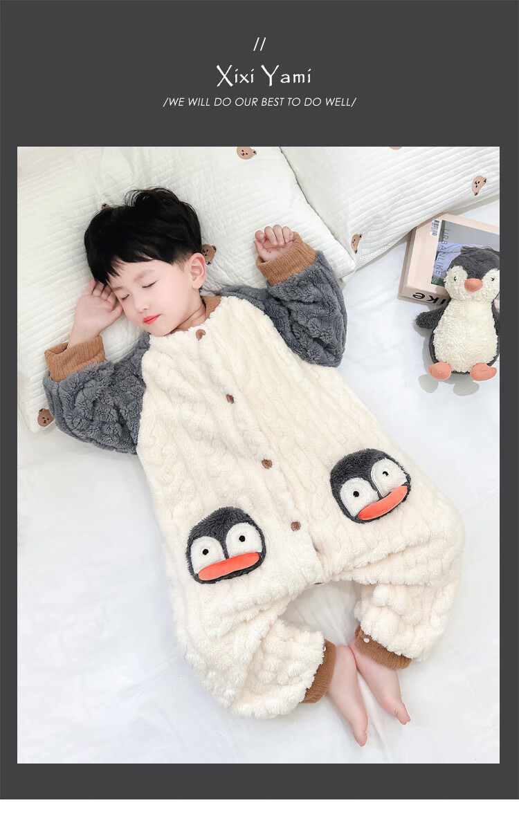Papi Monkey Boys Sleeping Bag Coral Fleece Winter Thickened Baby Anti-Kick Quilt Autumn and Winter Flannel Children's Pajamas Winter Gray Double Layer Thickened Size 110 Recommended for 3-4 years old (height around 100)