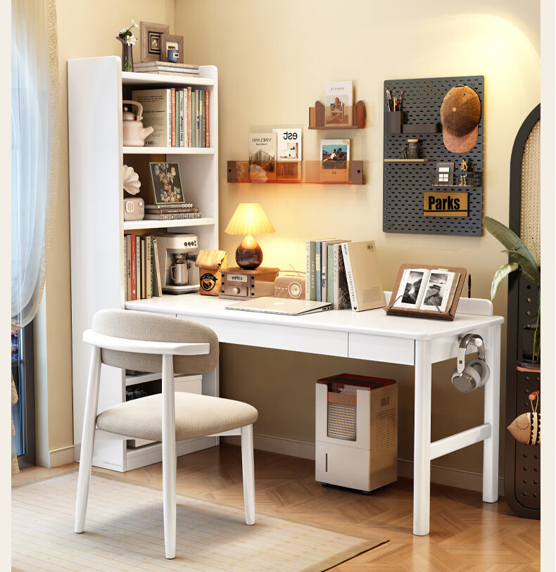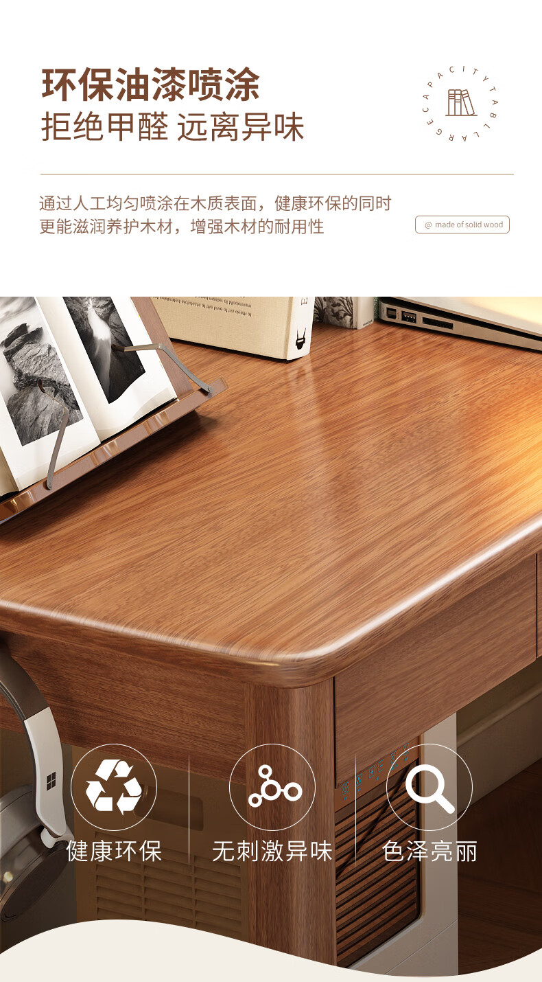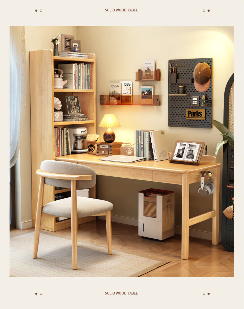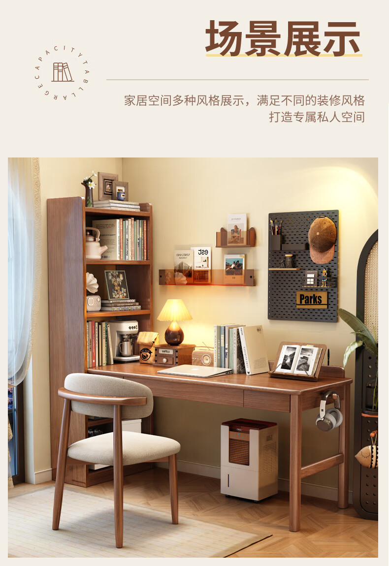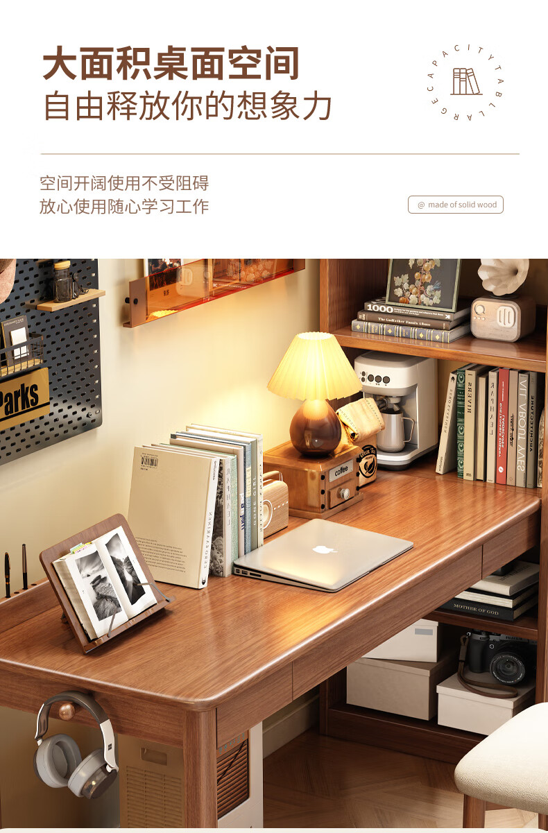 Ningzao solid wood corner desk bookshelf combination desktop computer desk simple home student writing desk study table walnut color # desk with side bookshelf 144cm*60cm*75cm desktop length 120cm