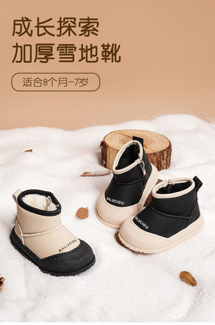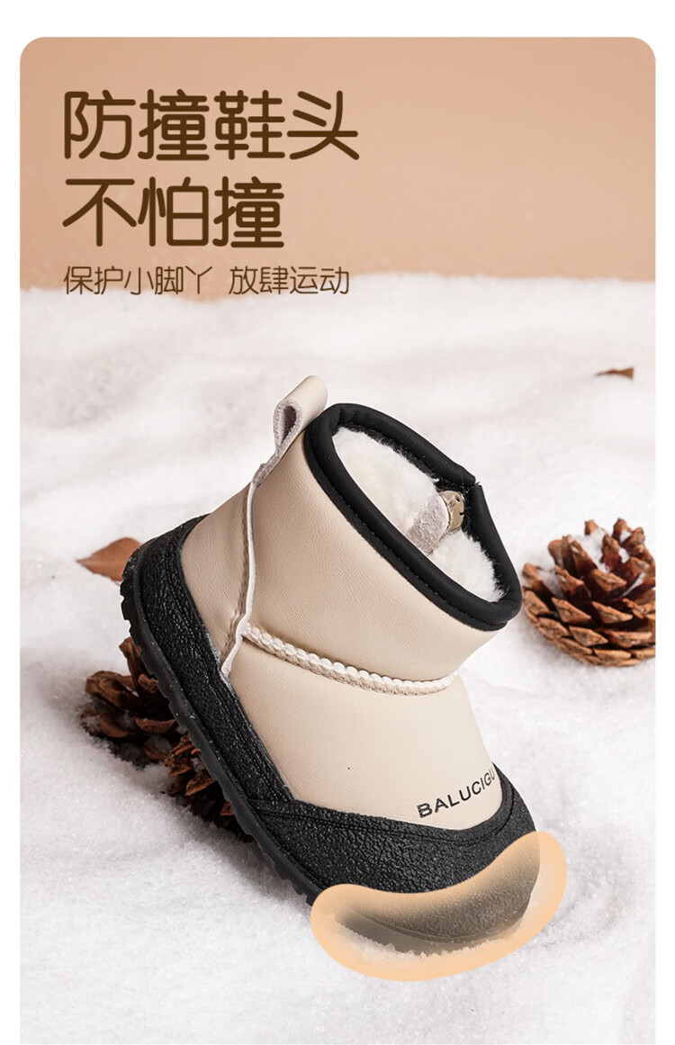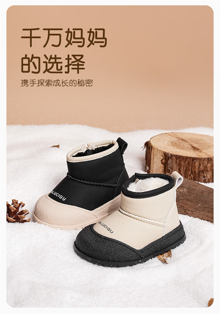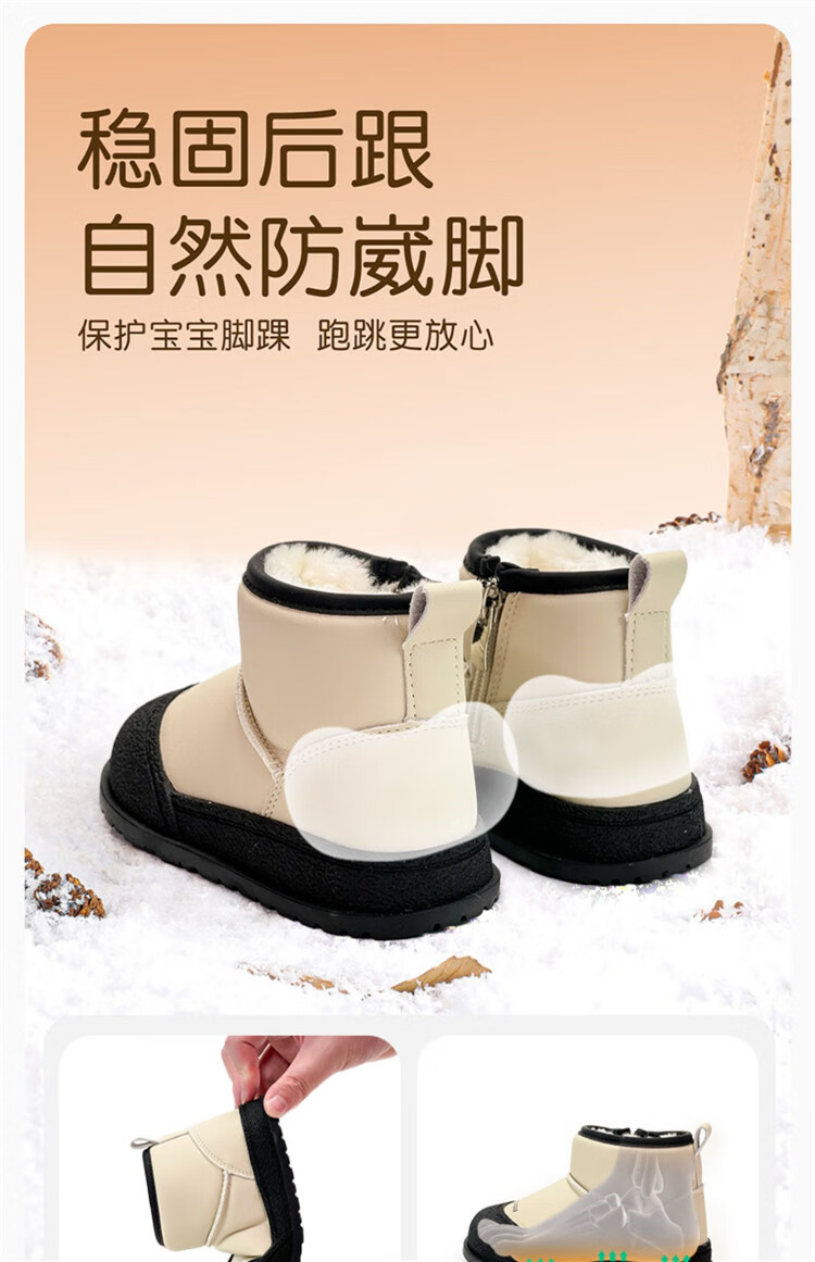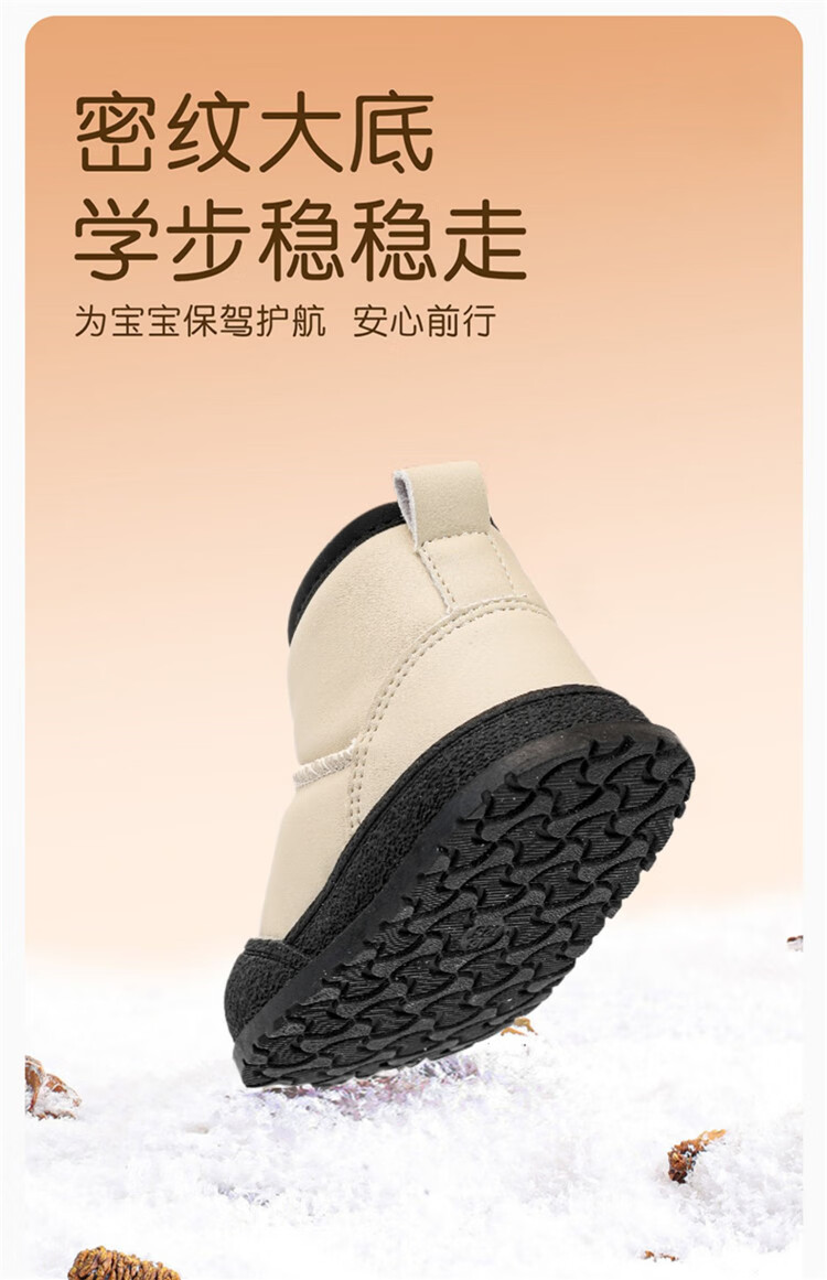Chino Mouse Official Genuine Children's Snow Boots Winter Plush 1-3 Years Old Toddler Shoes Baby Cotton Shoes Boys and Girls Warm Khaki Size 23 (Suitable for Feet Length 14.2-14.7cm)