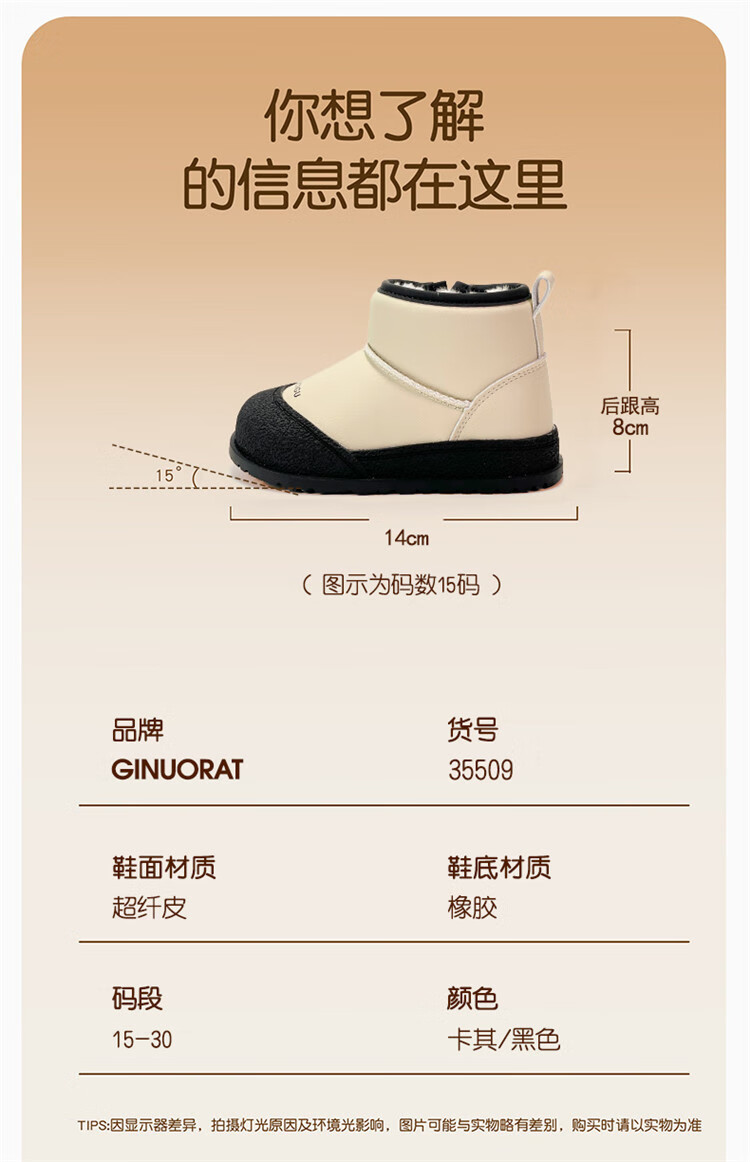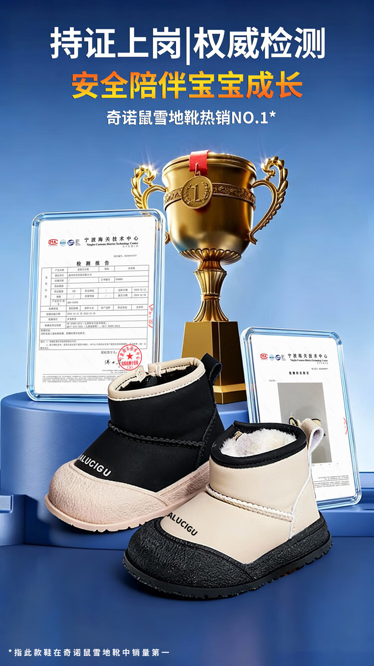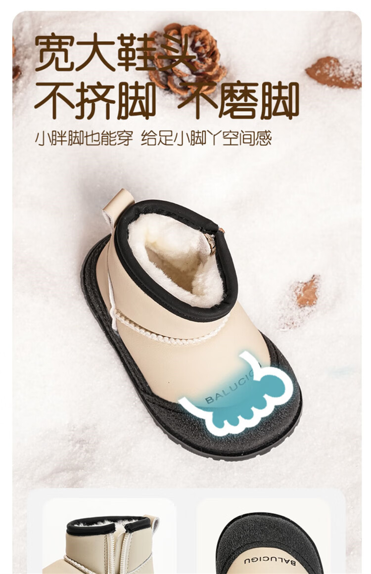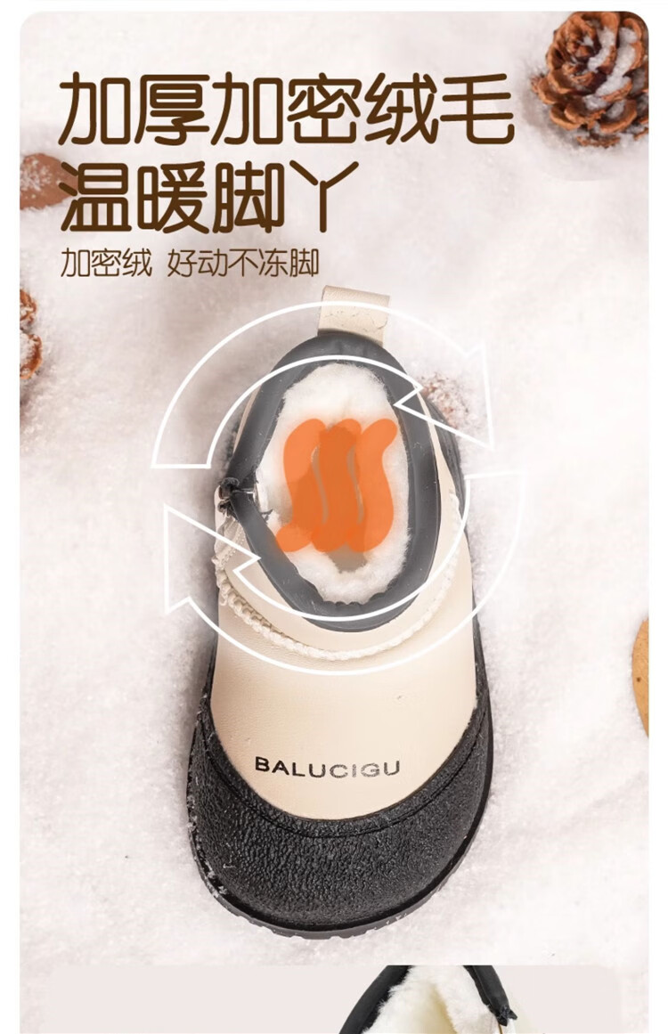 Chino Mouse Official Genuine Children's Snow Boots Winter Plush 1-3 Years Old Toddler Shoes Baby Cotton Shoes Boys and Girls Warm Khaki Size 23 (Suitable for Feet Length 14.2-14.7cm)