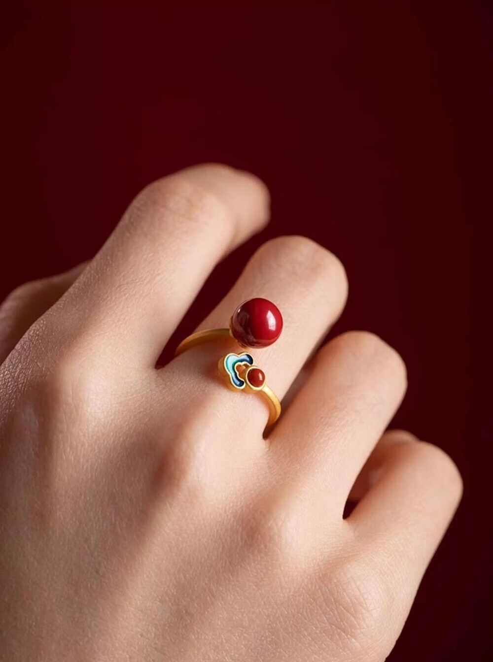 Orange country style lucky cloud cinnabar ring girls niche transfer ring female birth year amulet mother's day gift auspicious cloud cinnabar ring N056