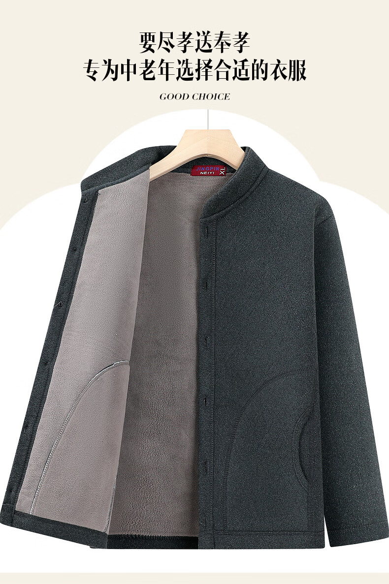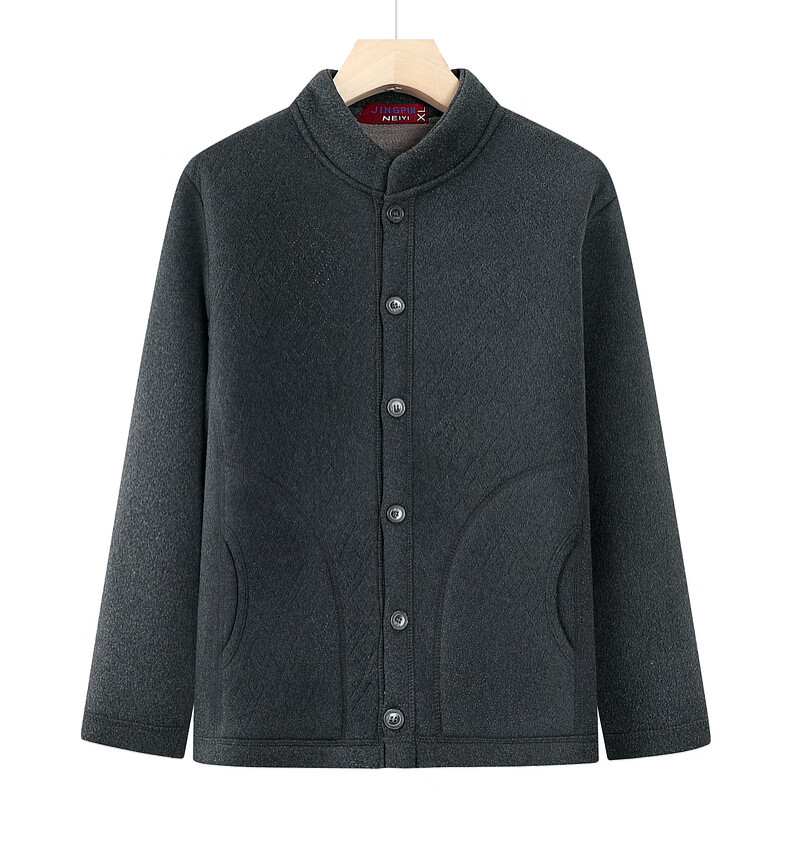 Fengxiao middle-aged and elderly men's velvet thickened knitted cardigan sweater dad warm clothes autumn and winter elderly grandfather winter coat dark gray 3XL (recommended 115-130 Jin Jin equals 0.5 kg)