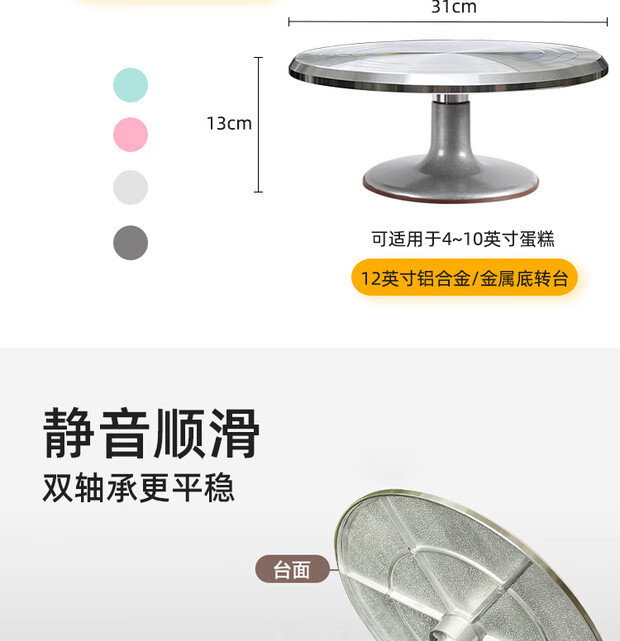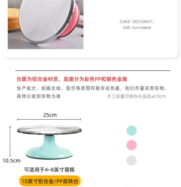 Chino Cake Turntable Decorating Table Baking Tool Set Aluminum Alloy Tray Rotating Plaster Household Commercial Decorating Turntable 10 inches 25cm (metal) for making 8-inch cakes