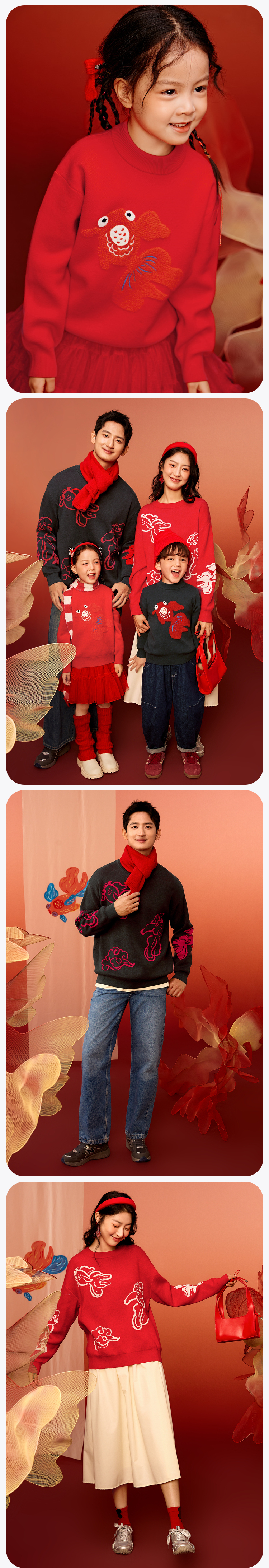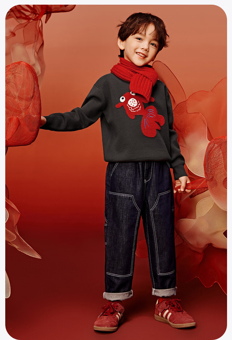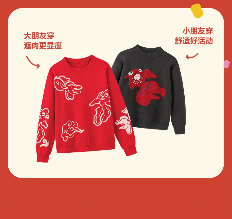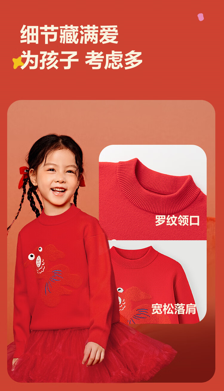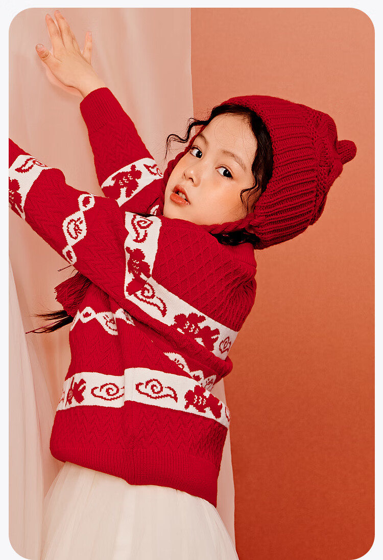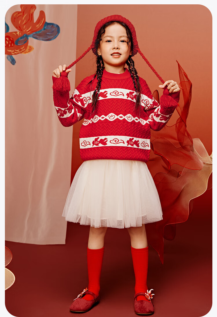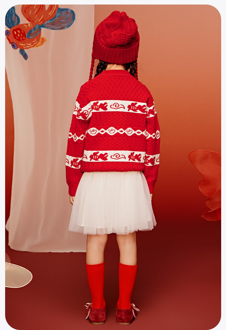 Mini Bala Bala joint mini Bala Bala New Year sweater for boys and girls parent-child red knitted bottoming shirt Chinese style sweater Chinese red 60611-232125103201 170