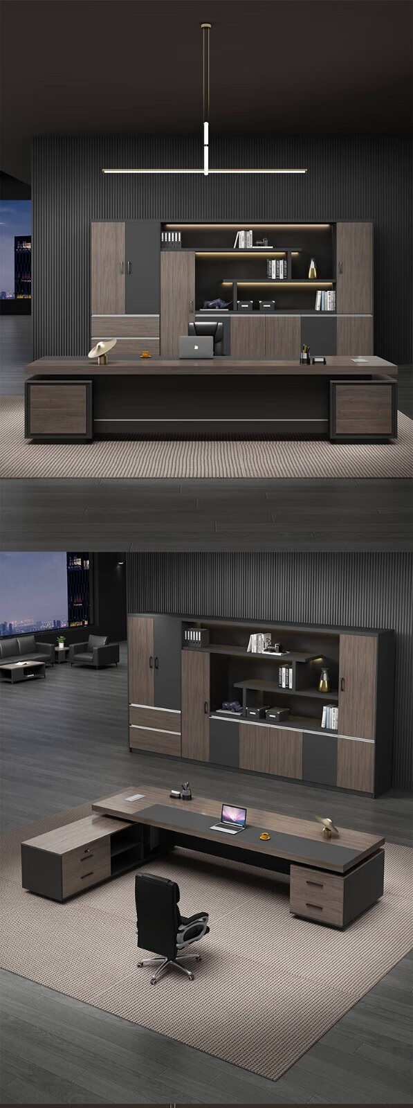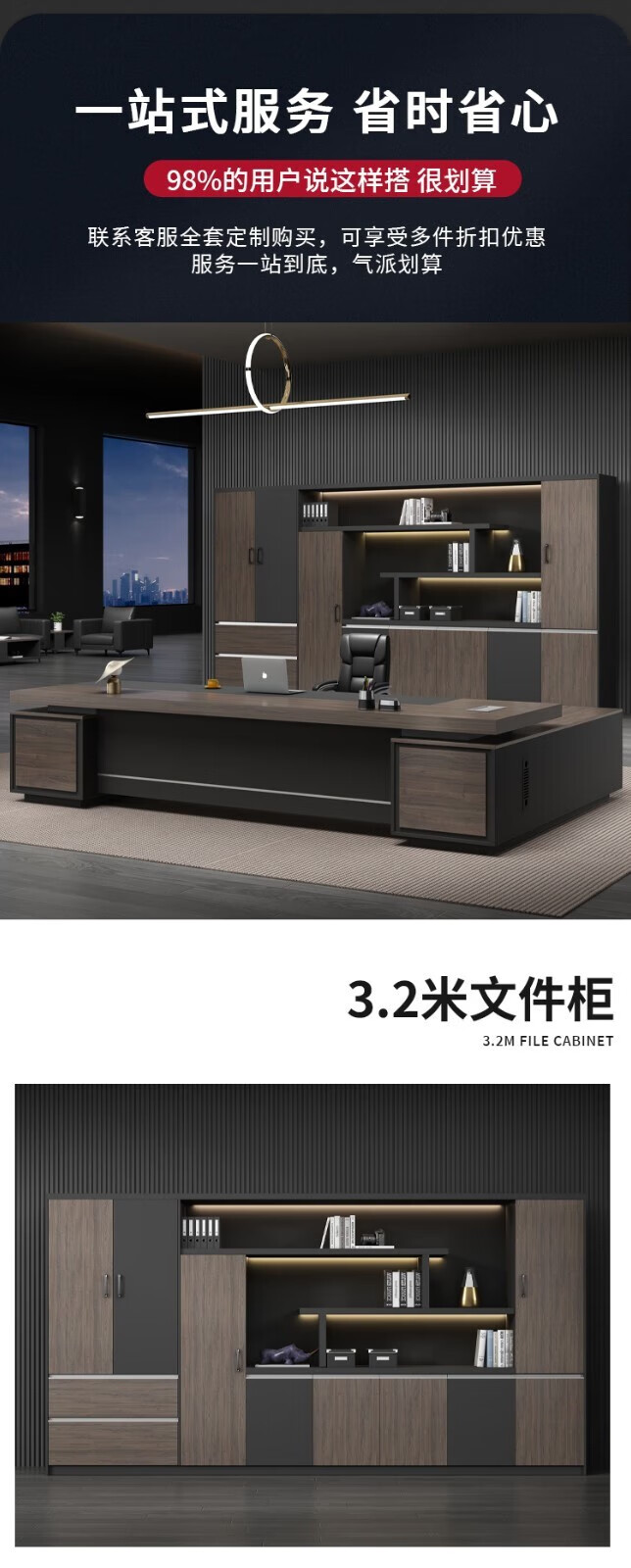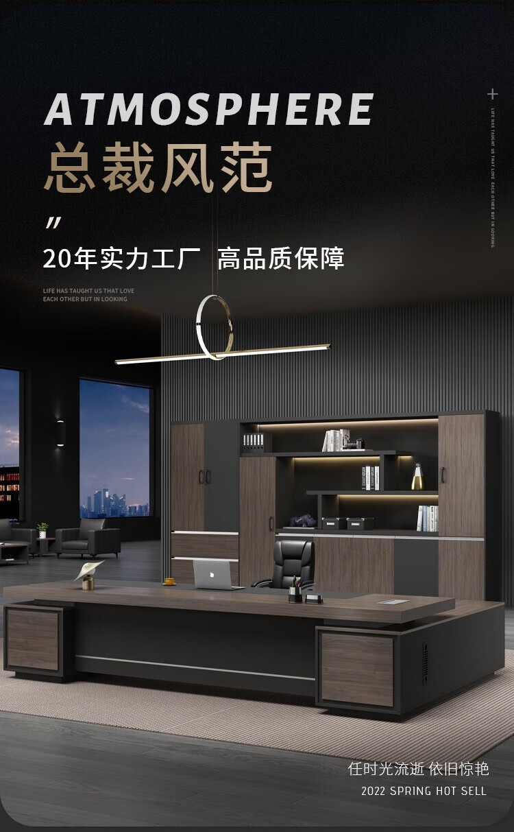 Boss desk work single desk and chair office combination executive desk simple modern president executive manager desk 2.0 meters with single side cabinet + boss chair + 5 doors